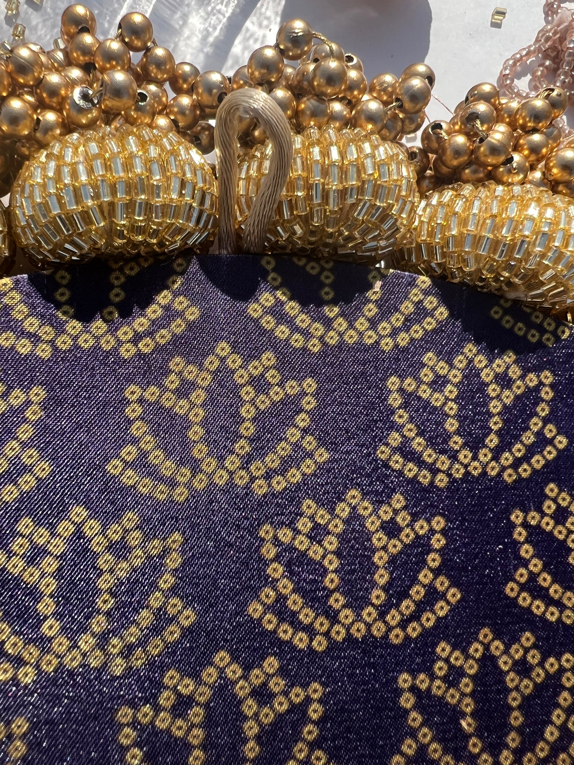 ABOUT THE PRINTS: Our rangoli has no backside, only an otherside- which is equally beautiful! The rangoli has a super dark violet base fabric, which might appear black sometimes, but be assured it is not. It has a geometric ornamentation of lotus print digitally printed using a single hue- honey mustard color. Each lotus is made using 56 bandhani dots. Non-gujjus and gujjus mistakenly address Patola as Bandhani, which pushed us to print our Bandhej collection! Bandhej by IBHI is here to vocalise this gujju tie-dye textile decorated by plucking the cloth with the fingernails into many tiny bindings that form a figurative design.