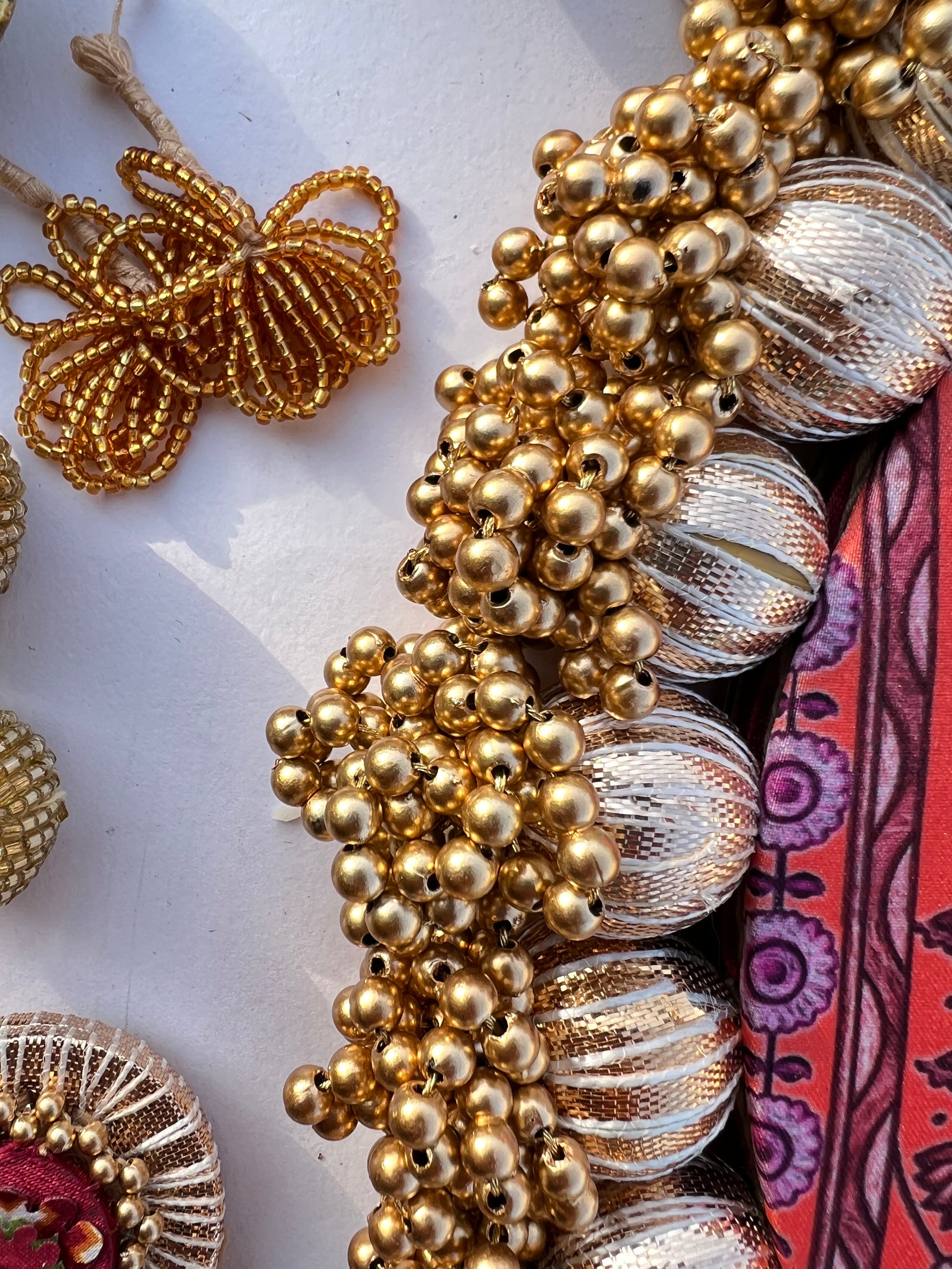 All IBHI products are meticulously handmade, involving various stages of different craftsmanship. Our creations are a blend of layers of high-quality fabric, Medium Density Fibre (MDF) for structure, and intricate beads and embellishments. The beads are meticulously connected using rolls of threads and hand stitches, adding to the uniqueness and charm of our products.