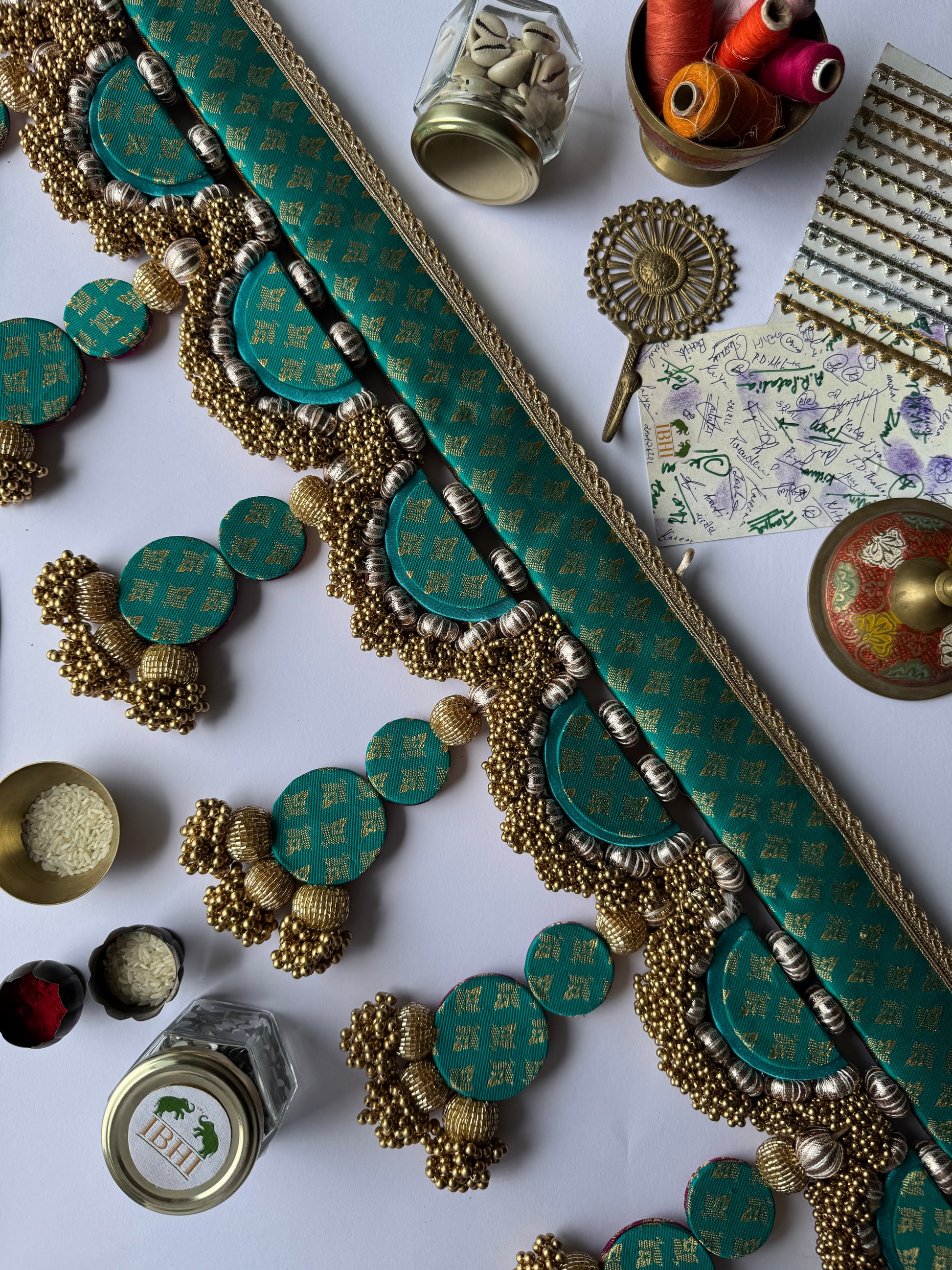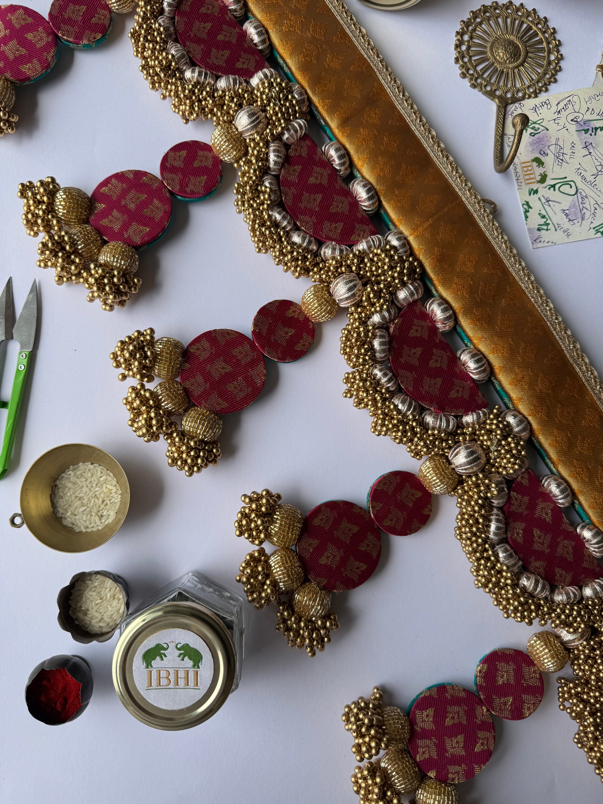 A true heart-stealer, RoopDwaya brings together two beautiful moods in one toran. Crafted using Banarasi look-alike fabric, each side of this dual-toned toran reveals a striking identity — elegant, festive, and unforgettable.