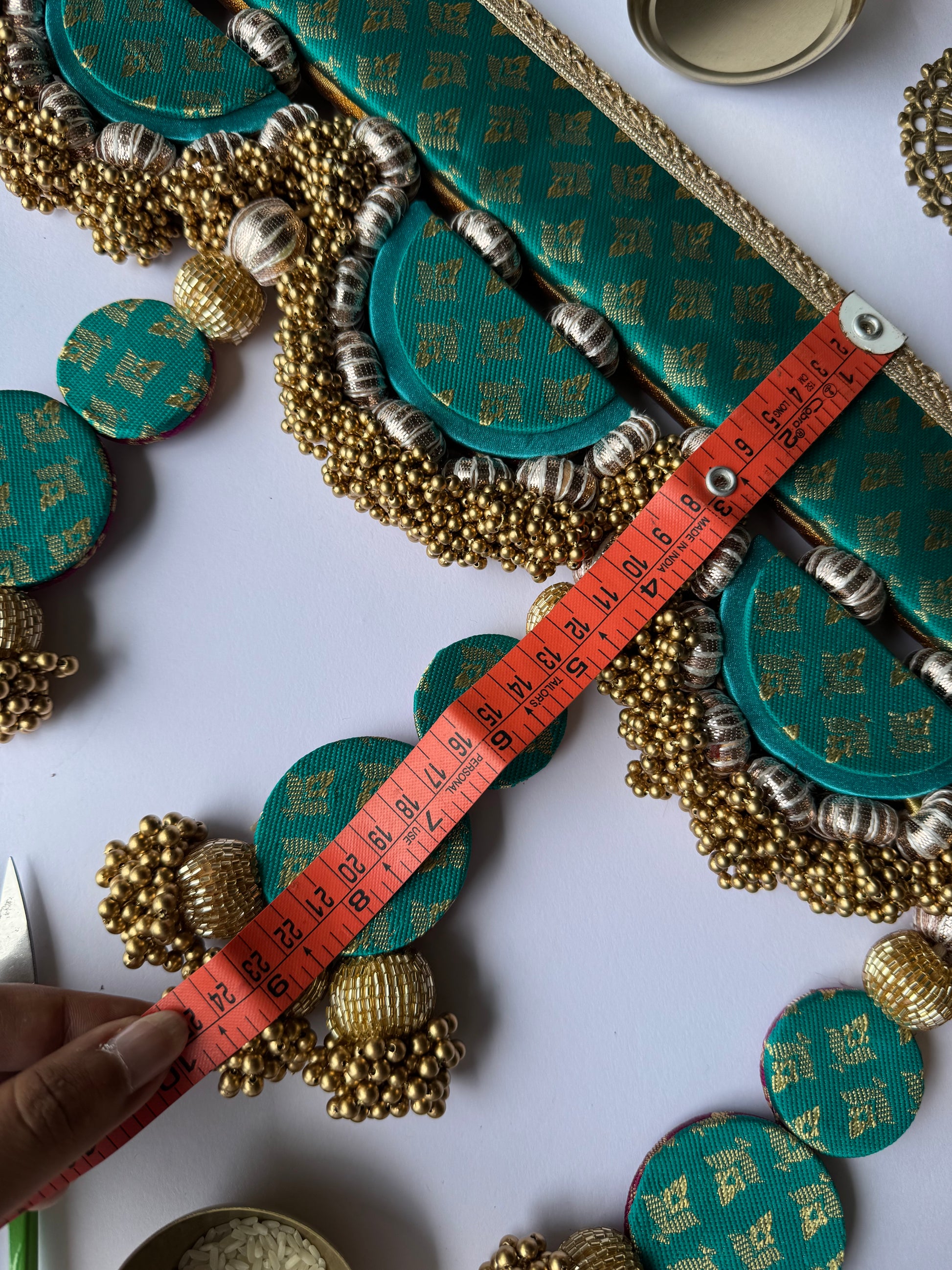 We’ve listed 7 standard sizes for torans here. If your door size doesn’t match, we’re happy to create a custom version. Just take a screenshot of this design and WhatsApp us with your required measurements: