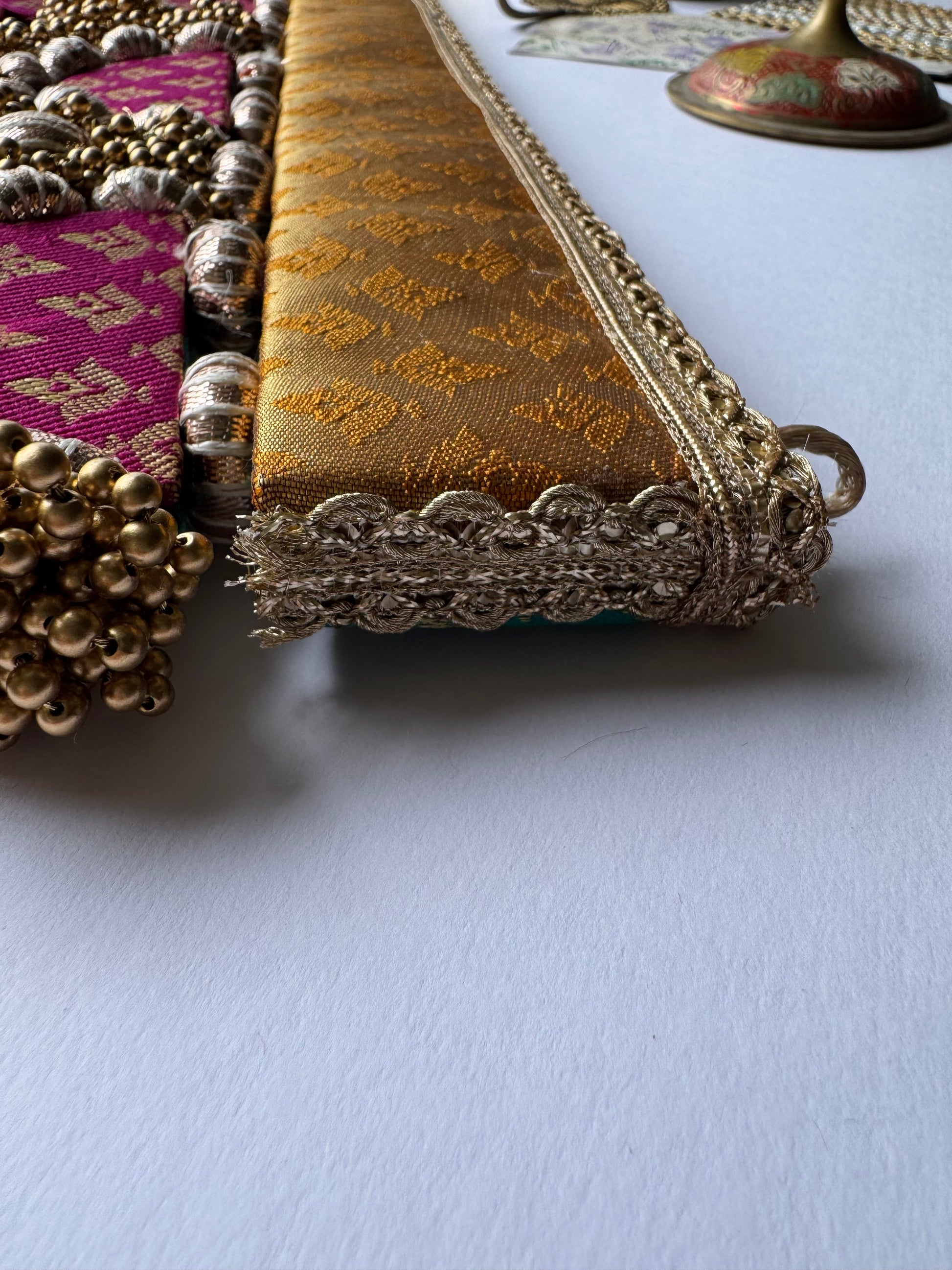 All IBHI products are meticulously handmade, involving various stages of different craftsmanship. Our creations are a blend of layers of high-quality fabric, Medium Density Fibre (MDF) for structure, and intricate beads and embellishments. The beads are meticulously connected using rolls of threads and hand stitches, adding to the uniqueness and charm of our products.