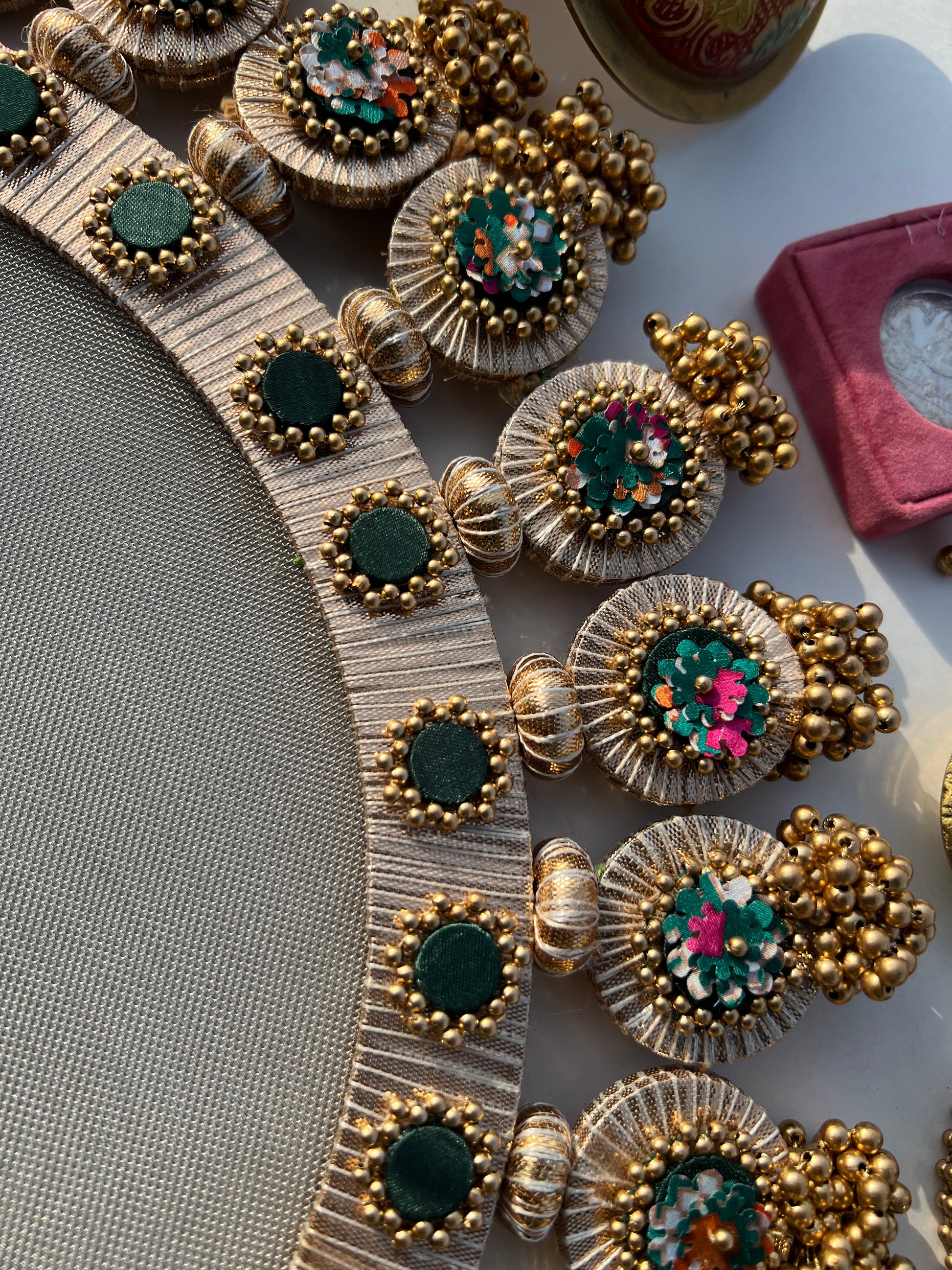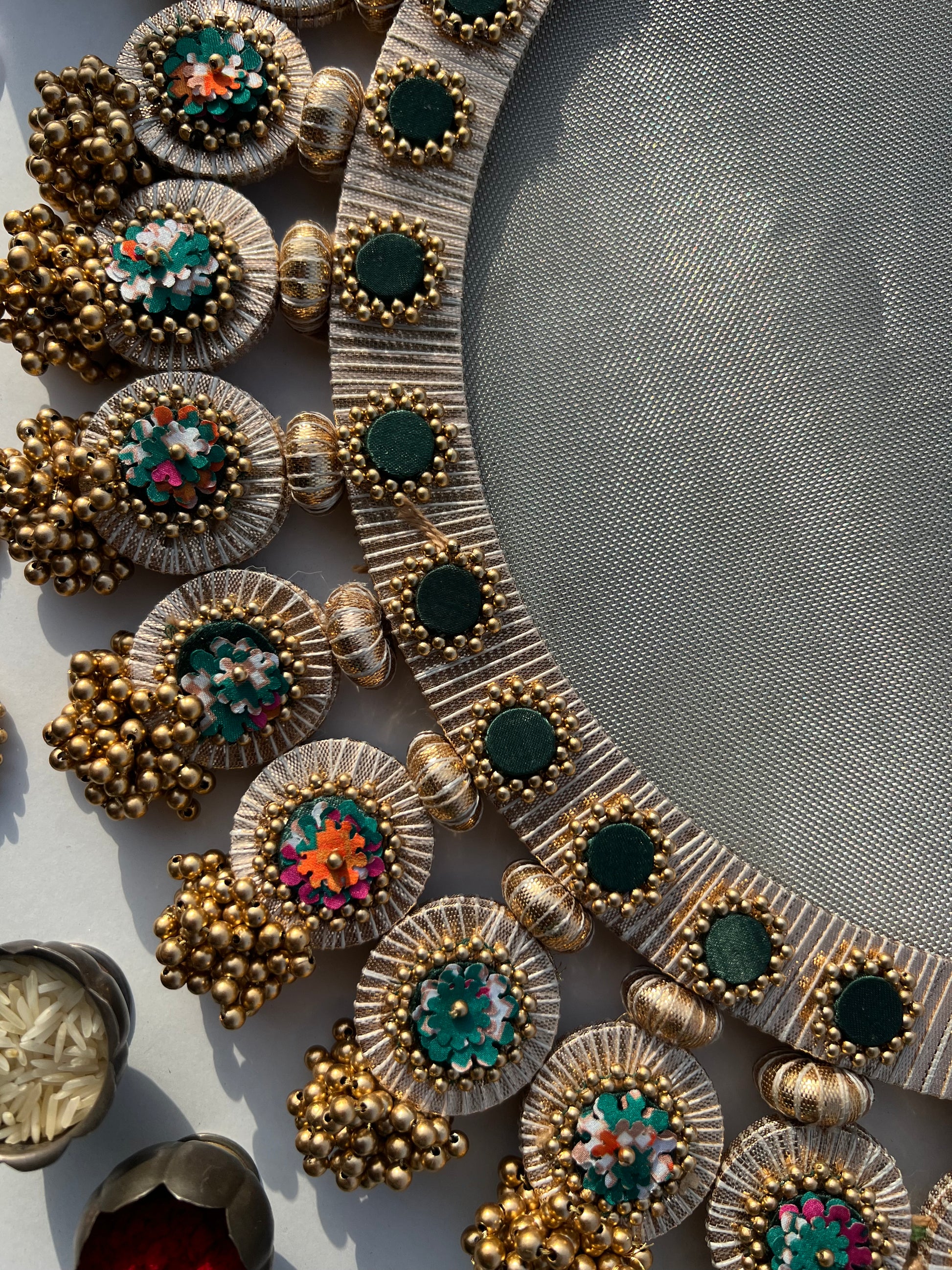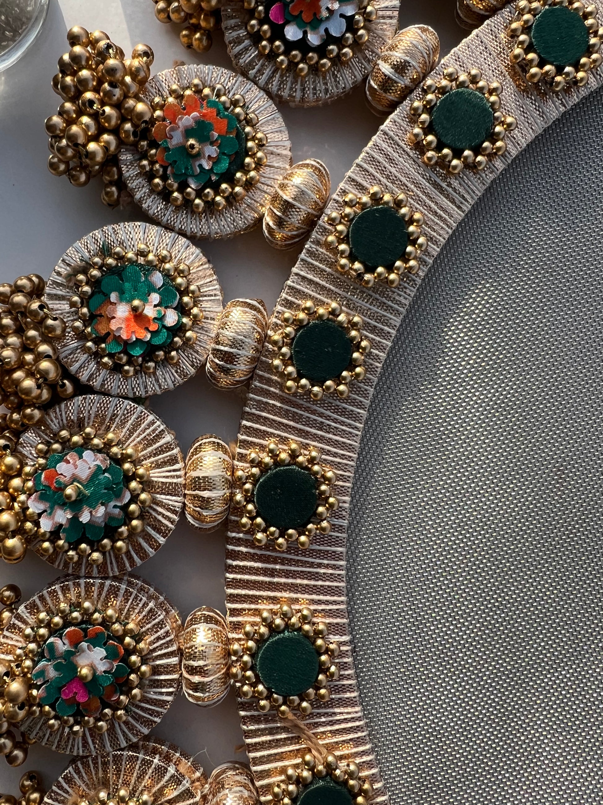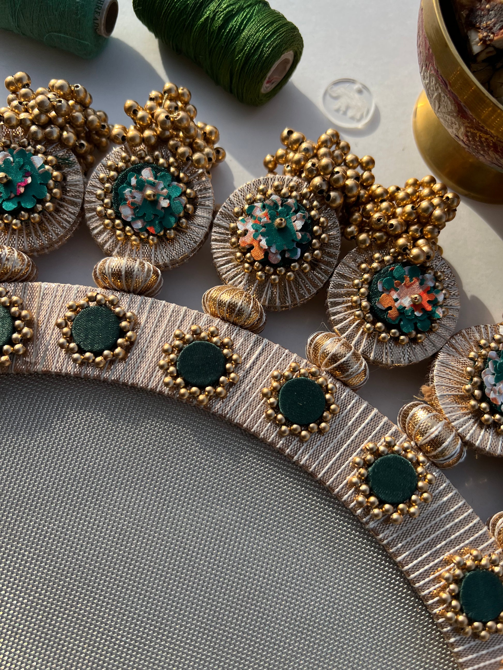 All IBHI products are meticulously handmade, involving various stages of different craftsmanship. Our creations are a blend of layers of high-quality fabric, Medium Density Fibre (MDF) for structure, and intricate beads and embellishments. The beads are meticulously connected using rolls of threads and hand stitches, adding to the uniqueness and charm of our products.