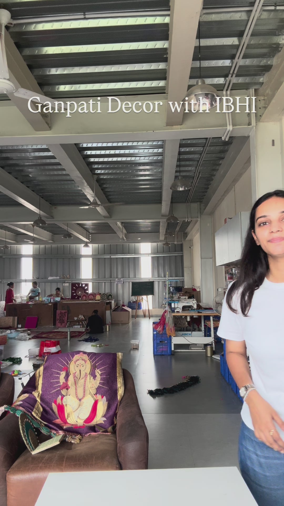 This backdrop set is a signature IBHI festive décor piece, blending cultural heritage with artisanal craftsmanship. Ideal for creating a luxurious setting for your Ganpati at home.