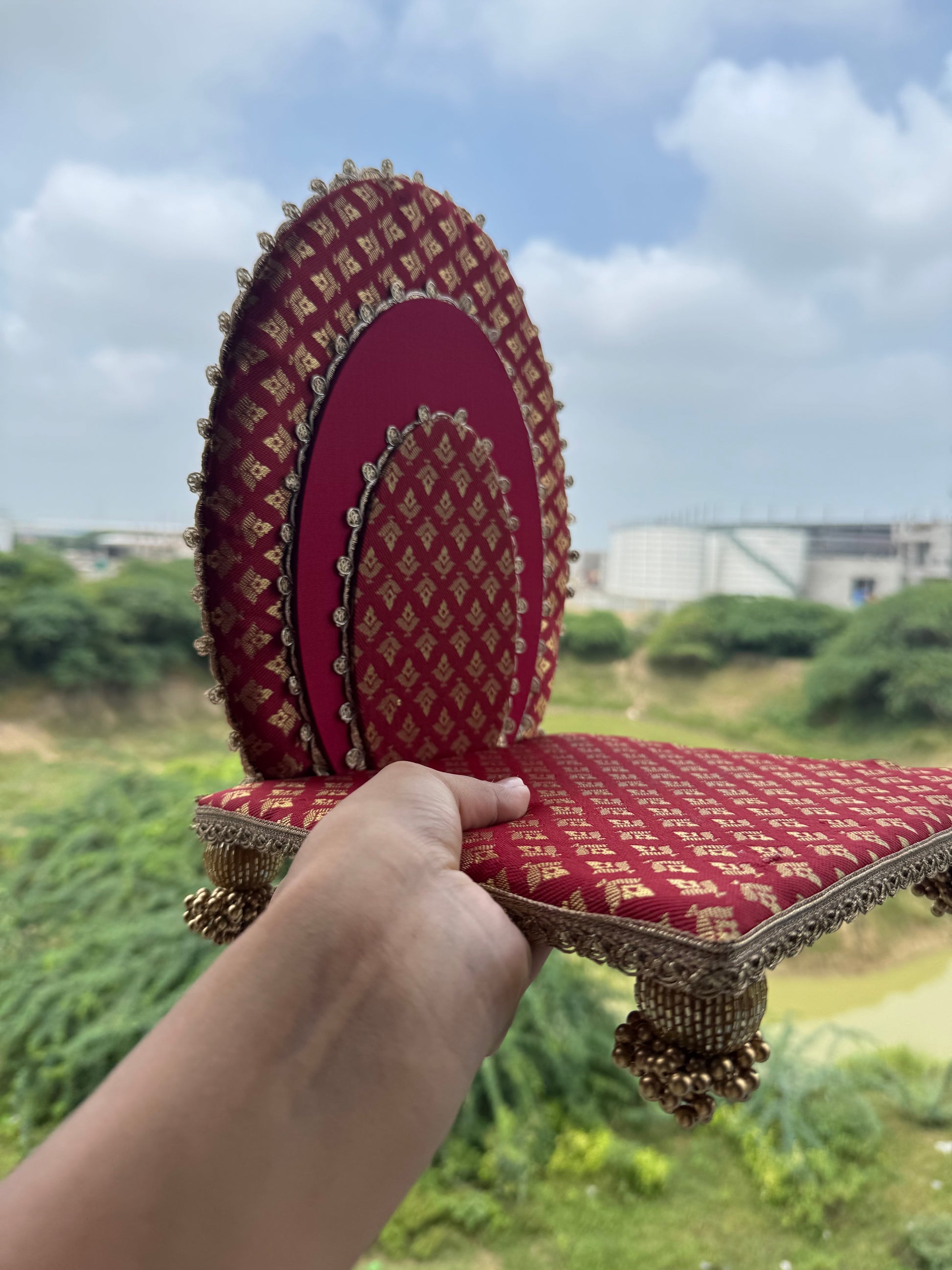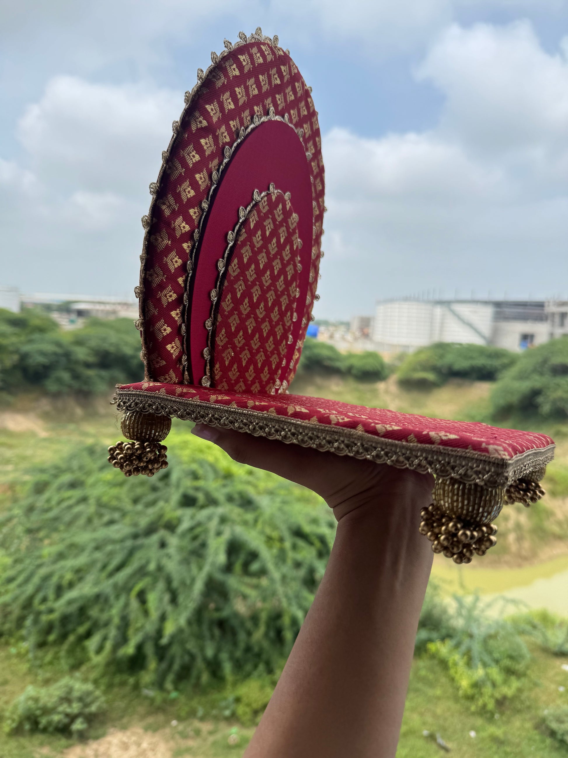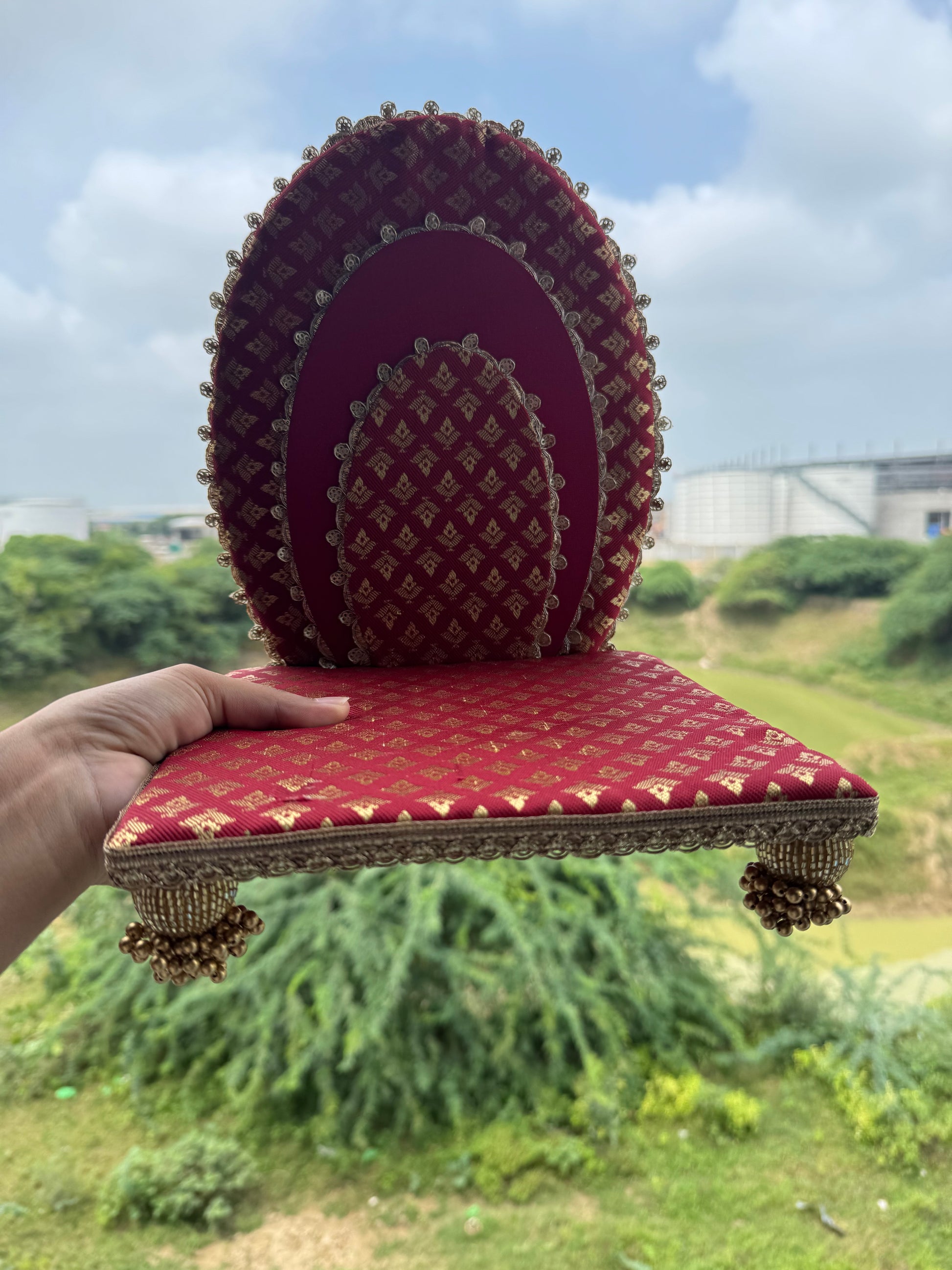 A royal maroon throne for your deity – festive, timeless & handcrafted with love.