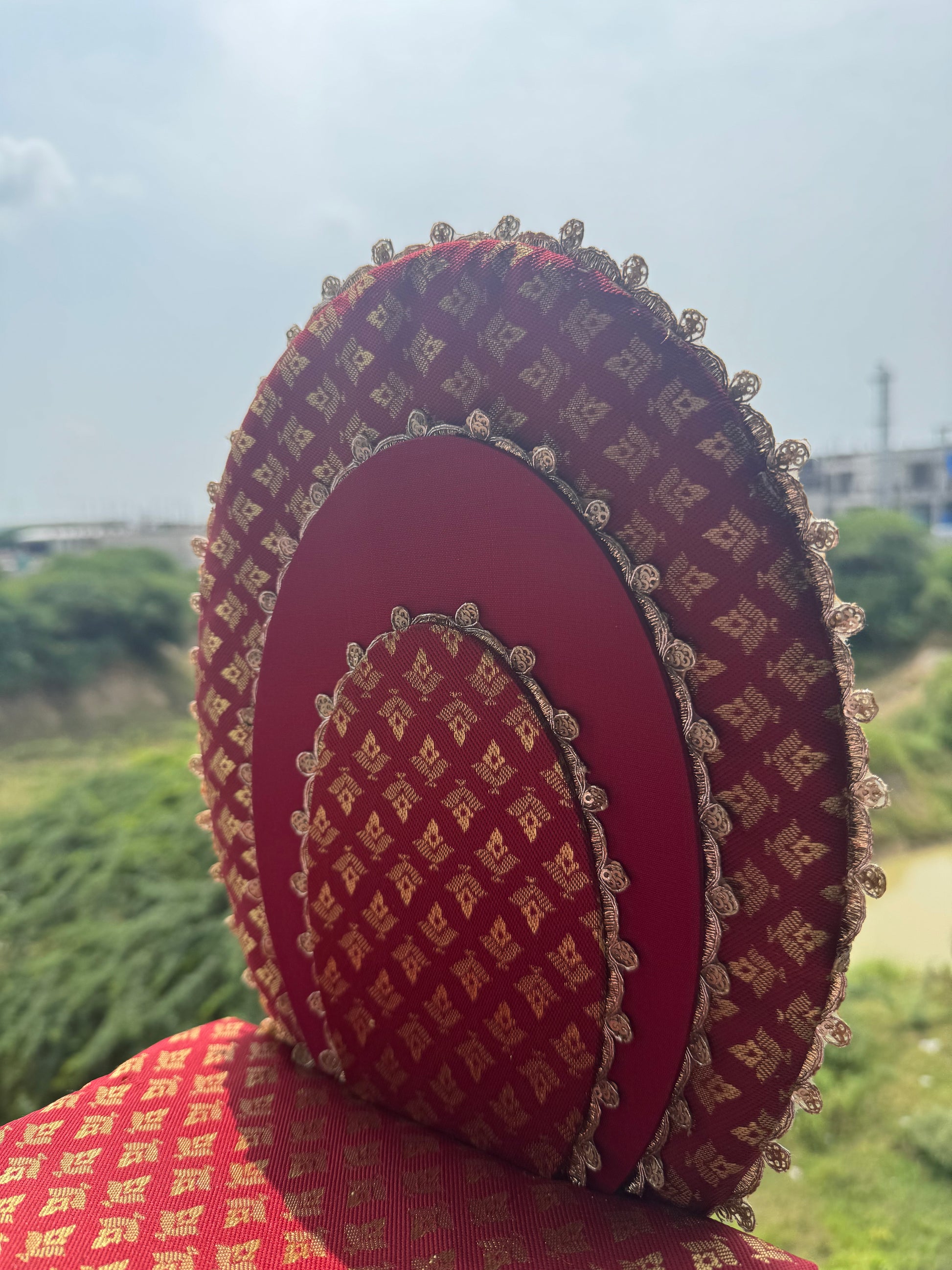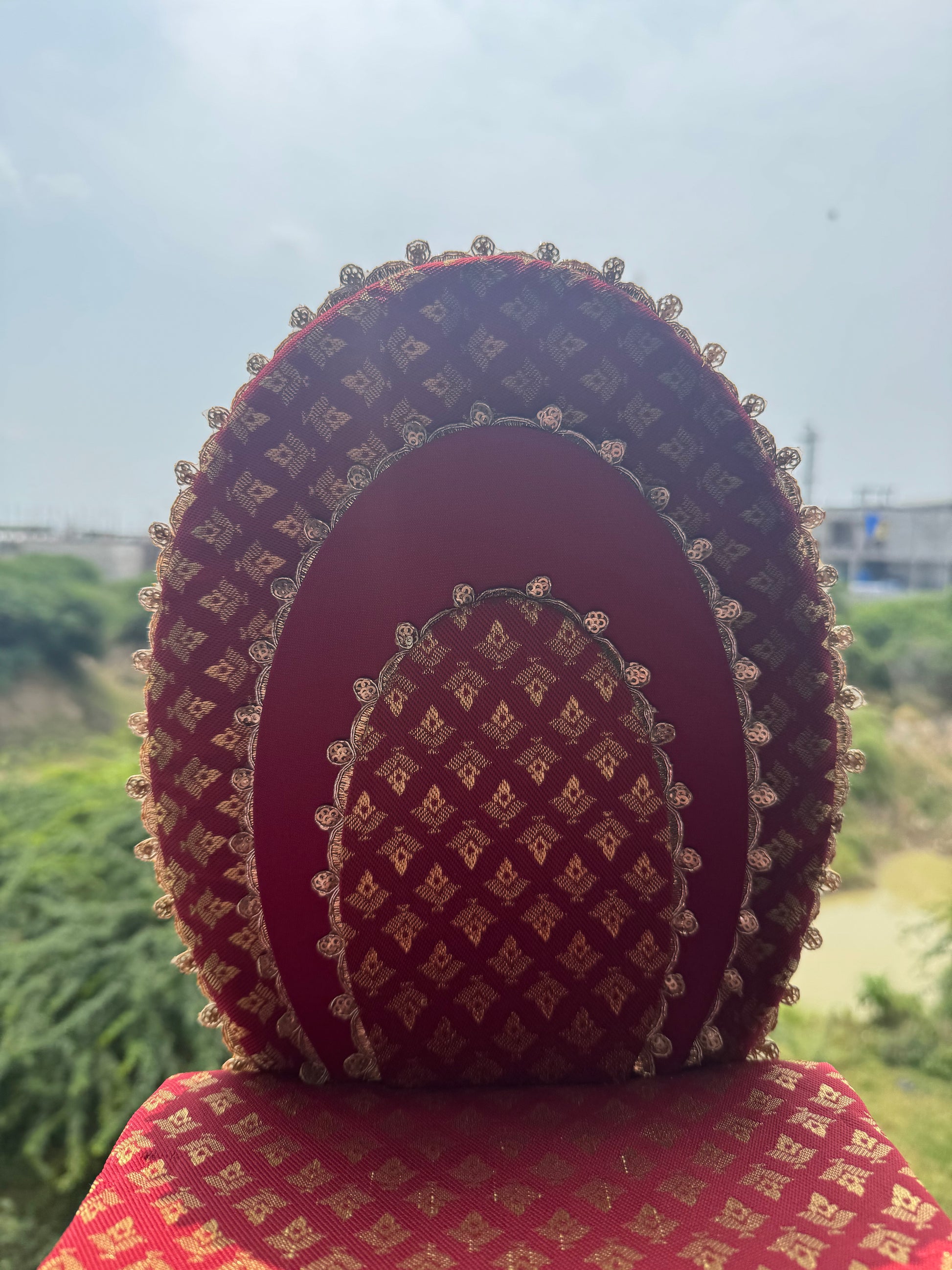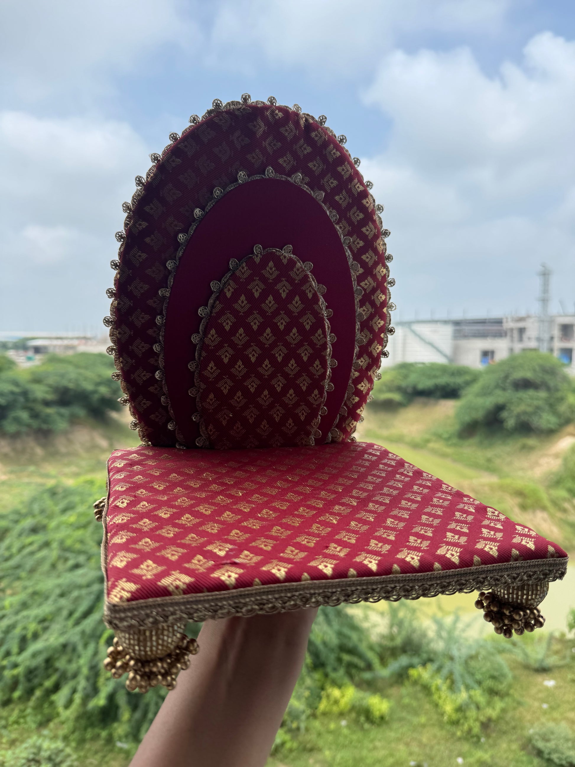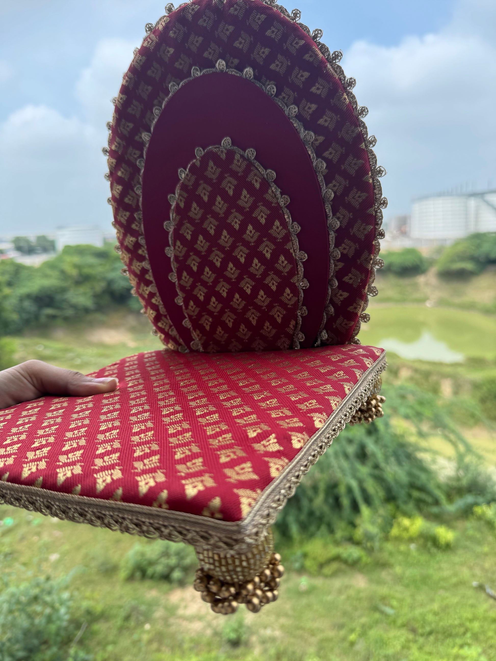 A royal maroon throne for your deity – festive, timeless & handcrafted with love.