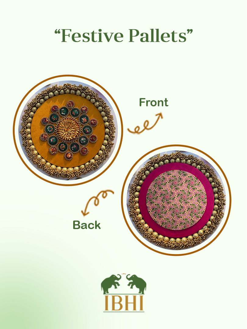 Handle your IBHI products delicately to preserve their beauty and longevity. Display them in a safe place where they can be admired. No amount of sunlight will affect the quality and finish of the product. The fabrics used are digitally printed using high-grade inks and pigments, making it sunshine friendly. Store them in a dry place to avoid moisture damage. To clean, gently dust with a soft cloth or a soft-bristle brush, and avoid using harsh chemicals or water directly on the fabric and embellishments.