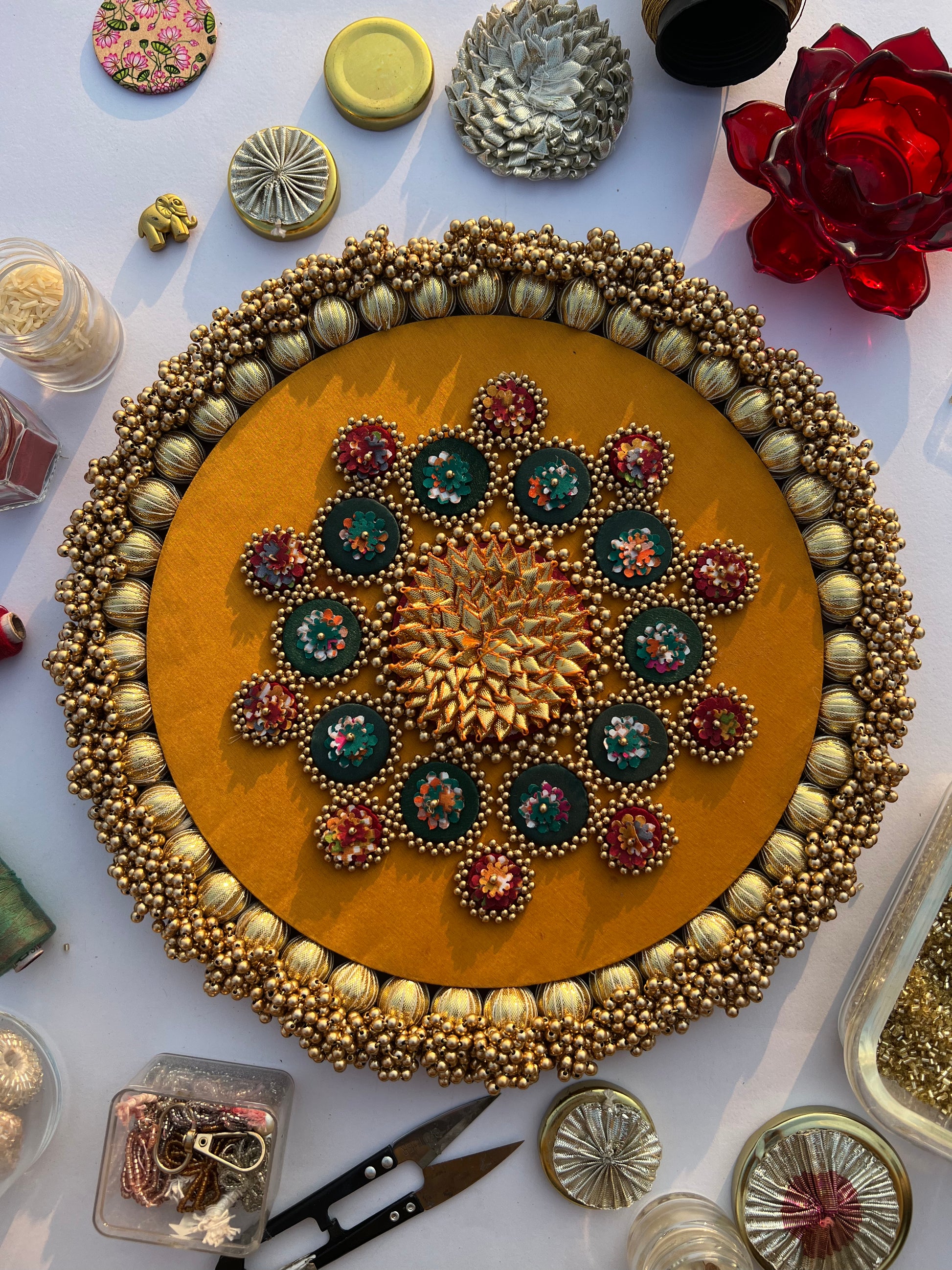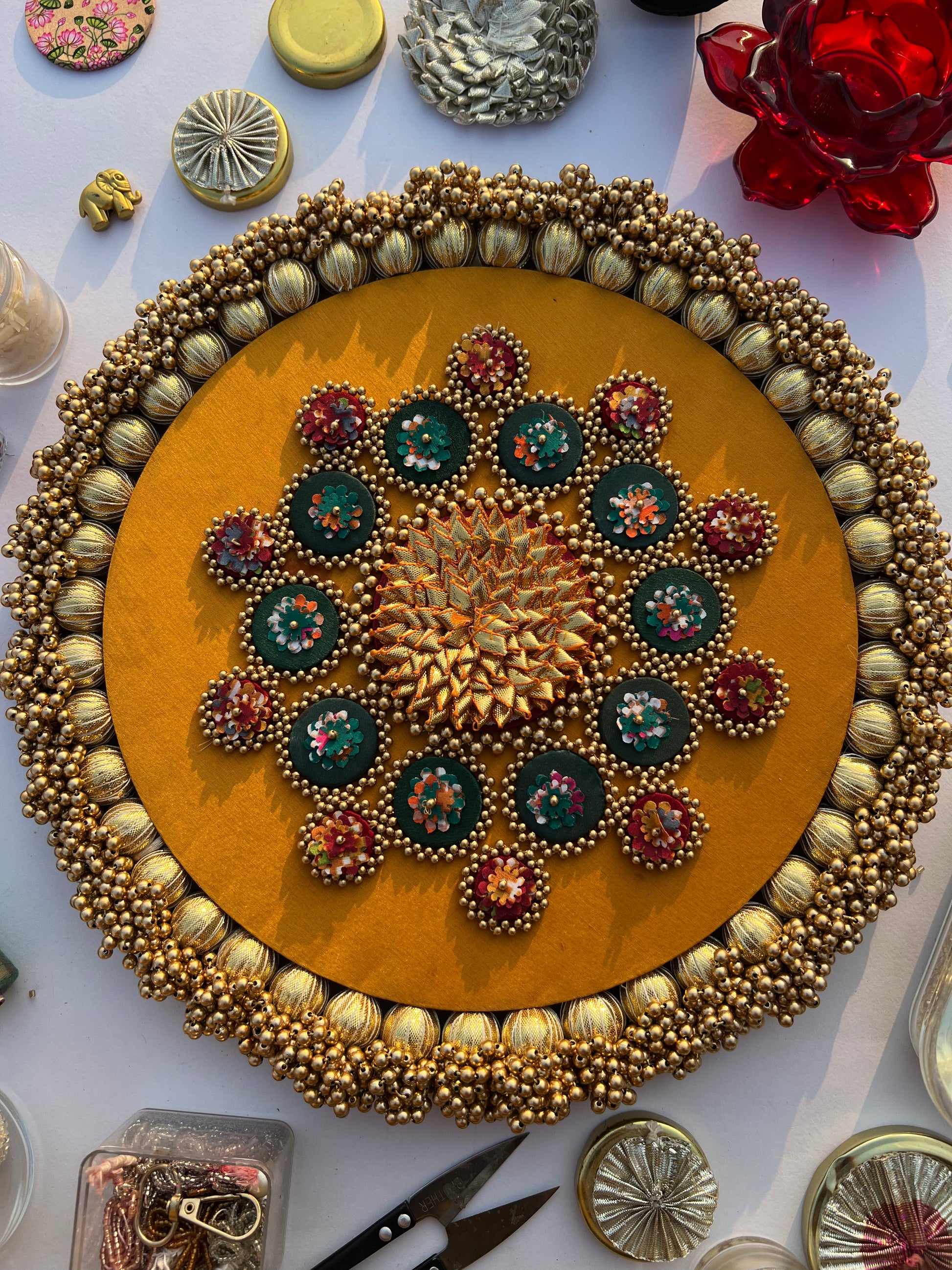Mandala X Solid Mustard & OG Inflorescence Divine Pichwai Gathered Rangoli