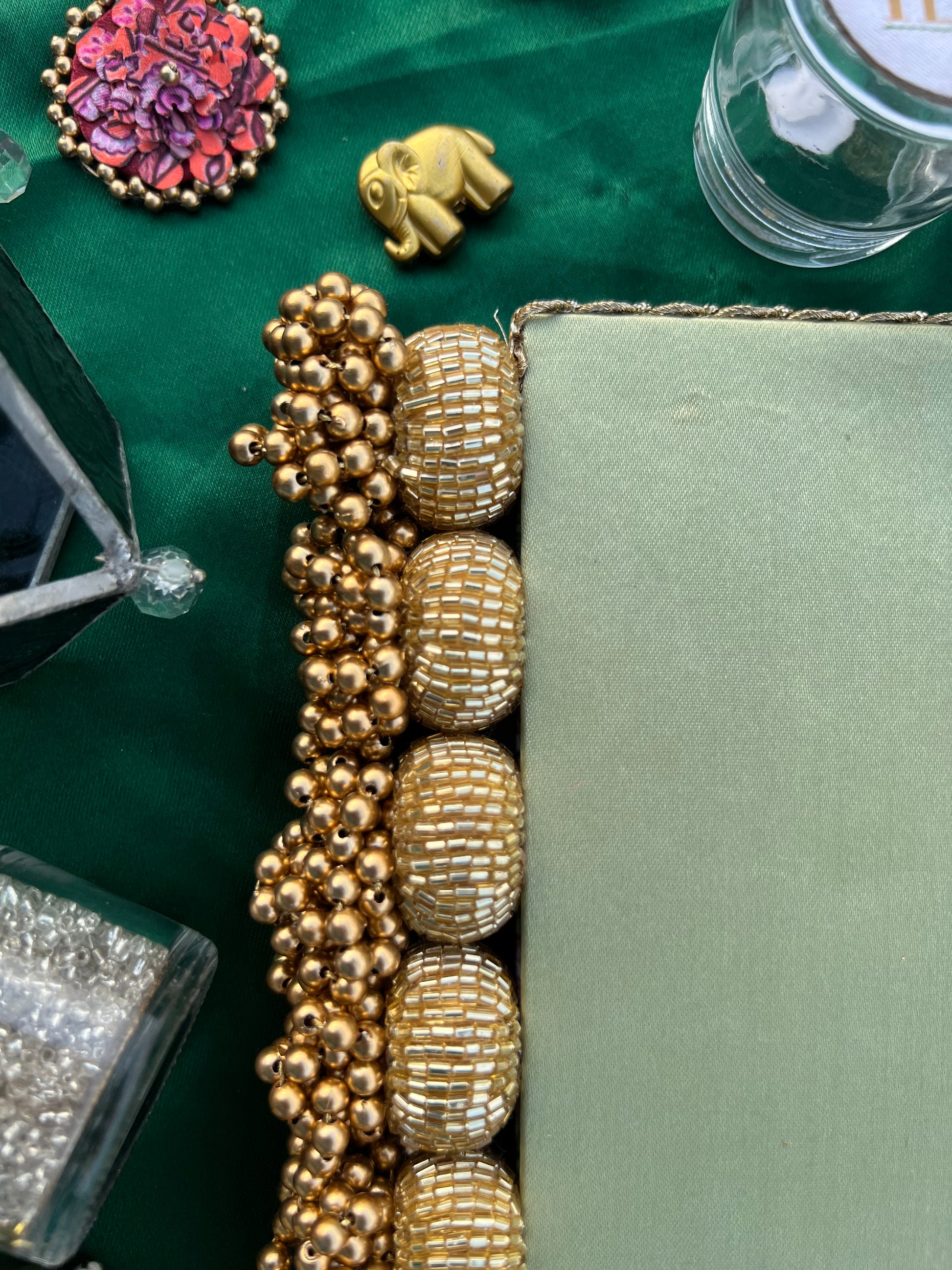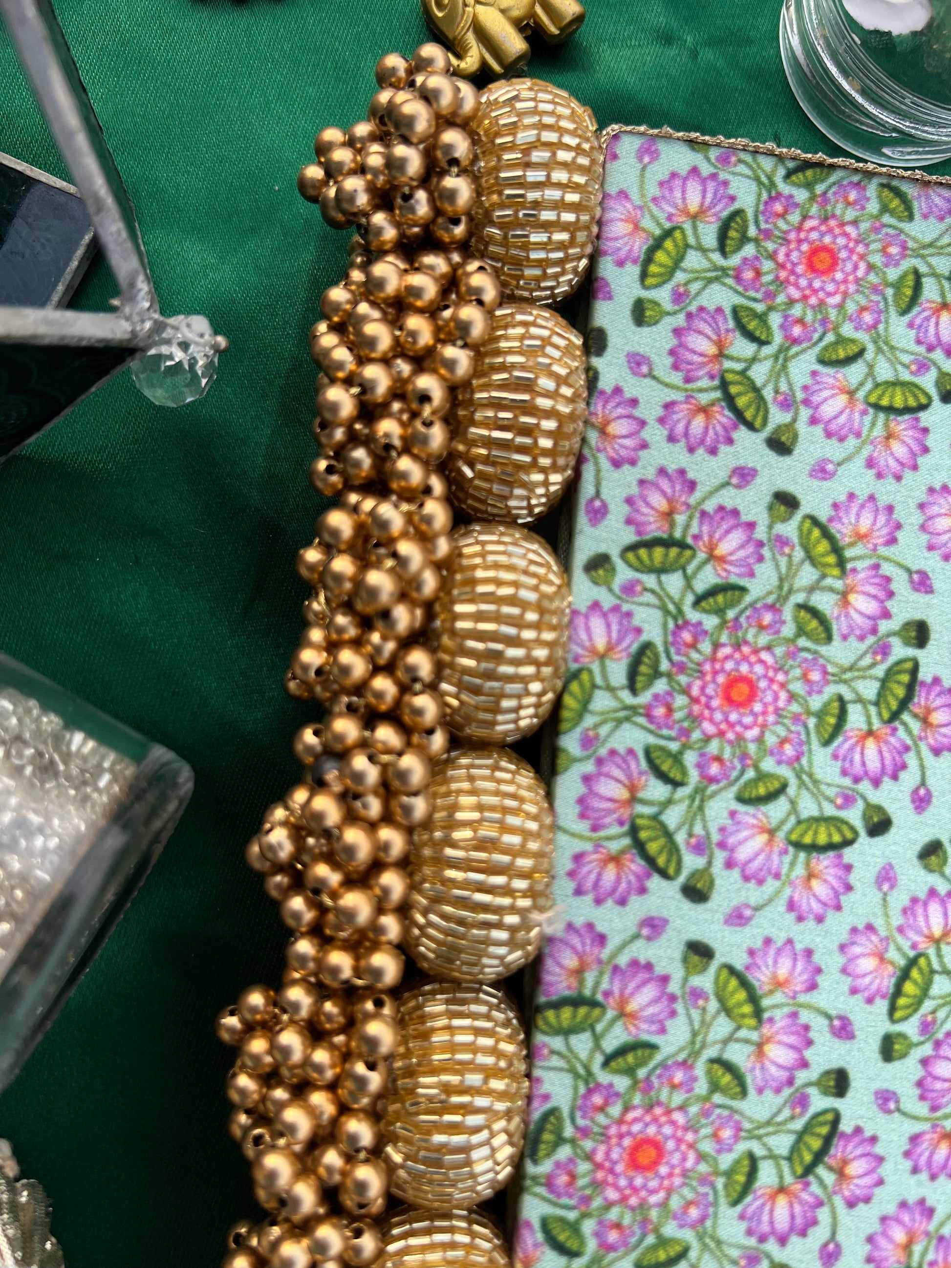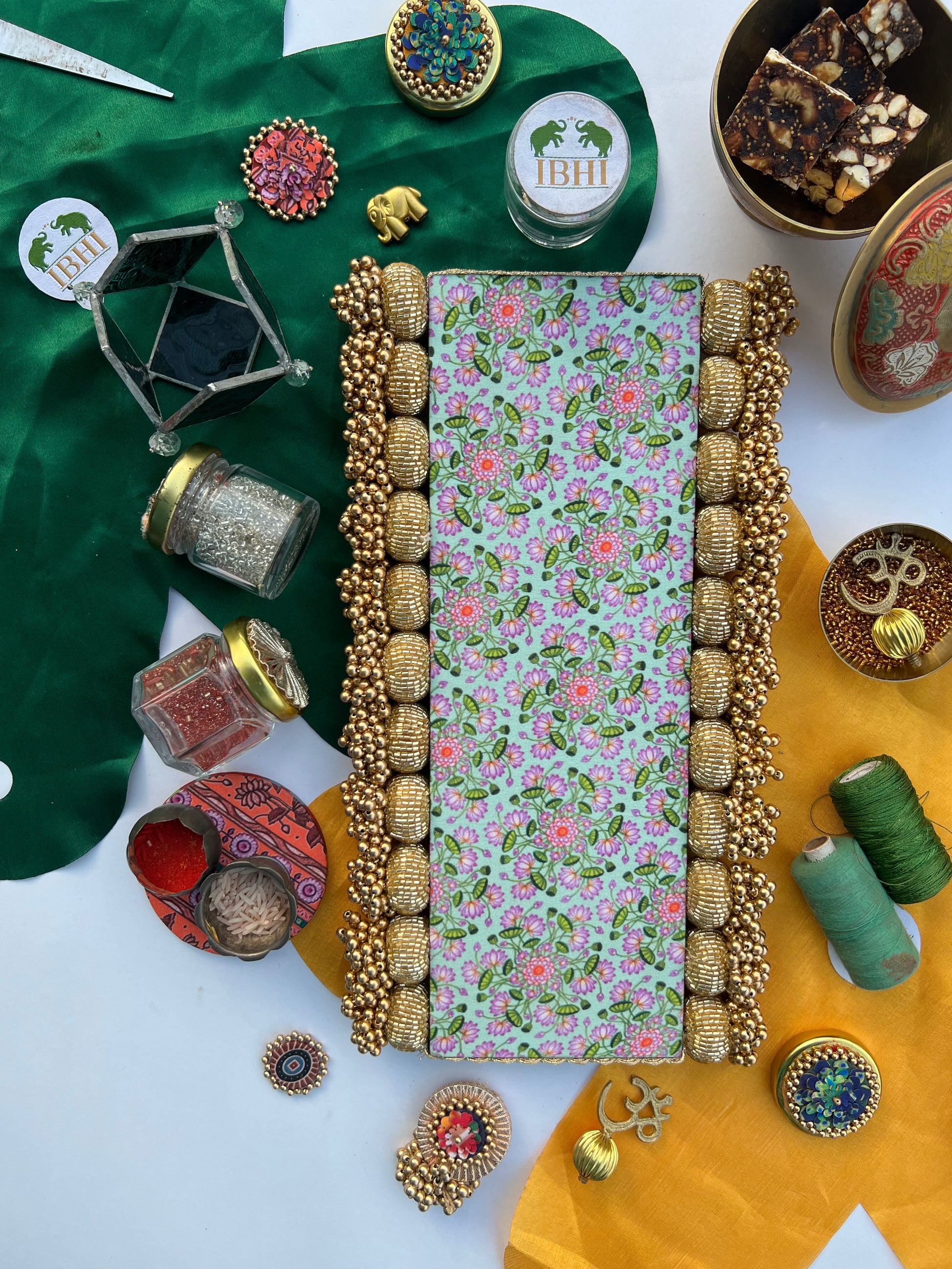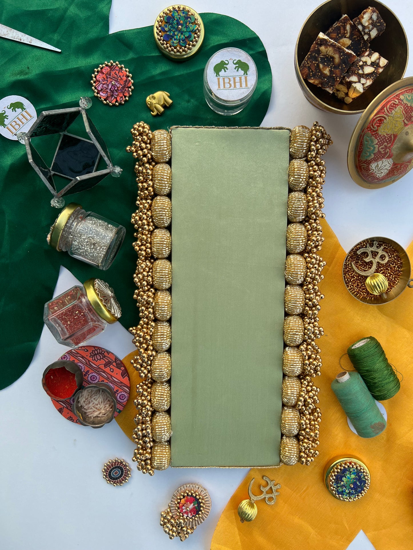 All IBHI products are meticulously handmade, involving various stages of different craftsmanship. Our creations are a blend of layers of high-quality fabric, Medium Density Fibre (MDF) for structure, and intricate beads and embellishments. The beads are meticulously connected using rolls of threads and hand stitches, adding to the uniqueness and charm of our products.