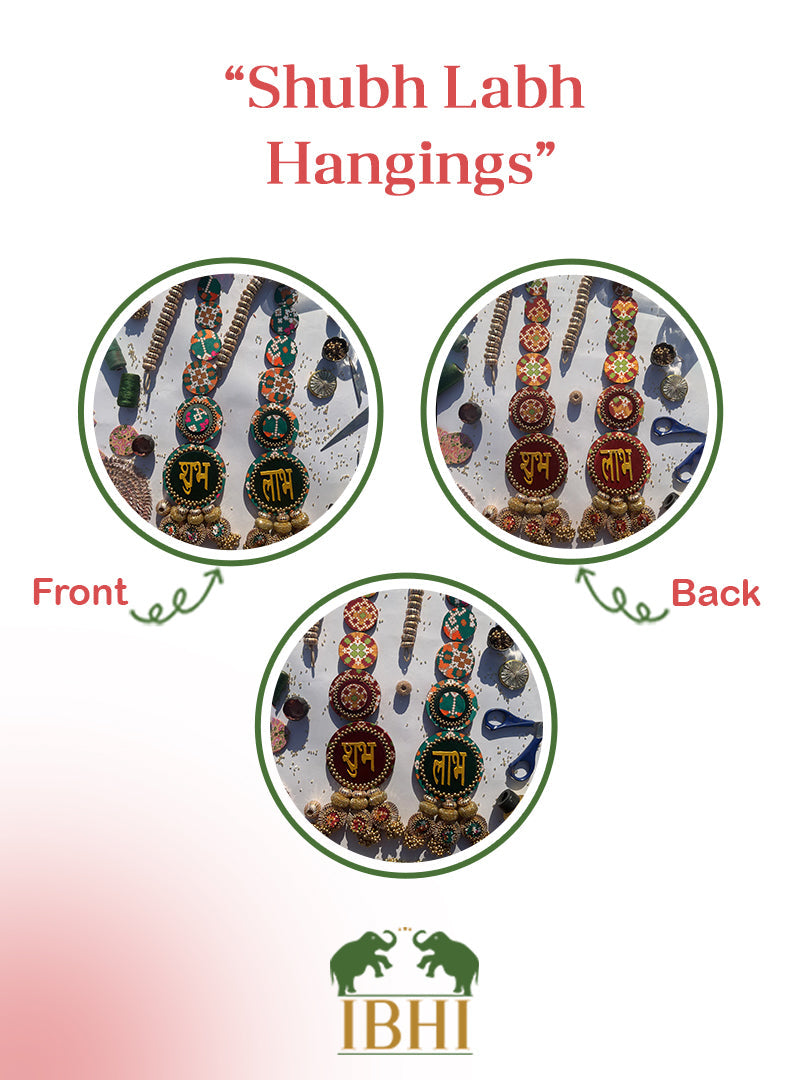 The hangings include religious motifs, hand-painted using acrylic colours. The motif of Shubh means auspicious and Labh means gains respectively. So it means Aupicious Gains. Hindu religion preaches that the gains must be auspicious in order for it to bestow happiness to a person.