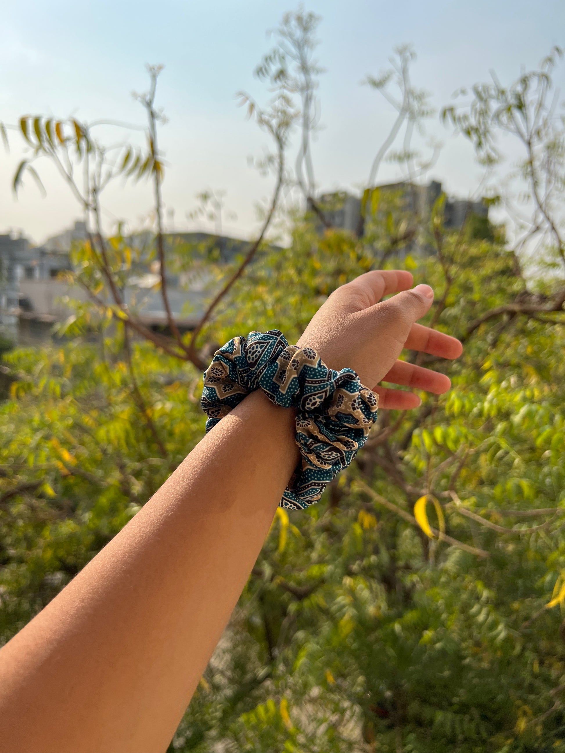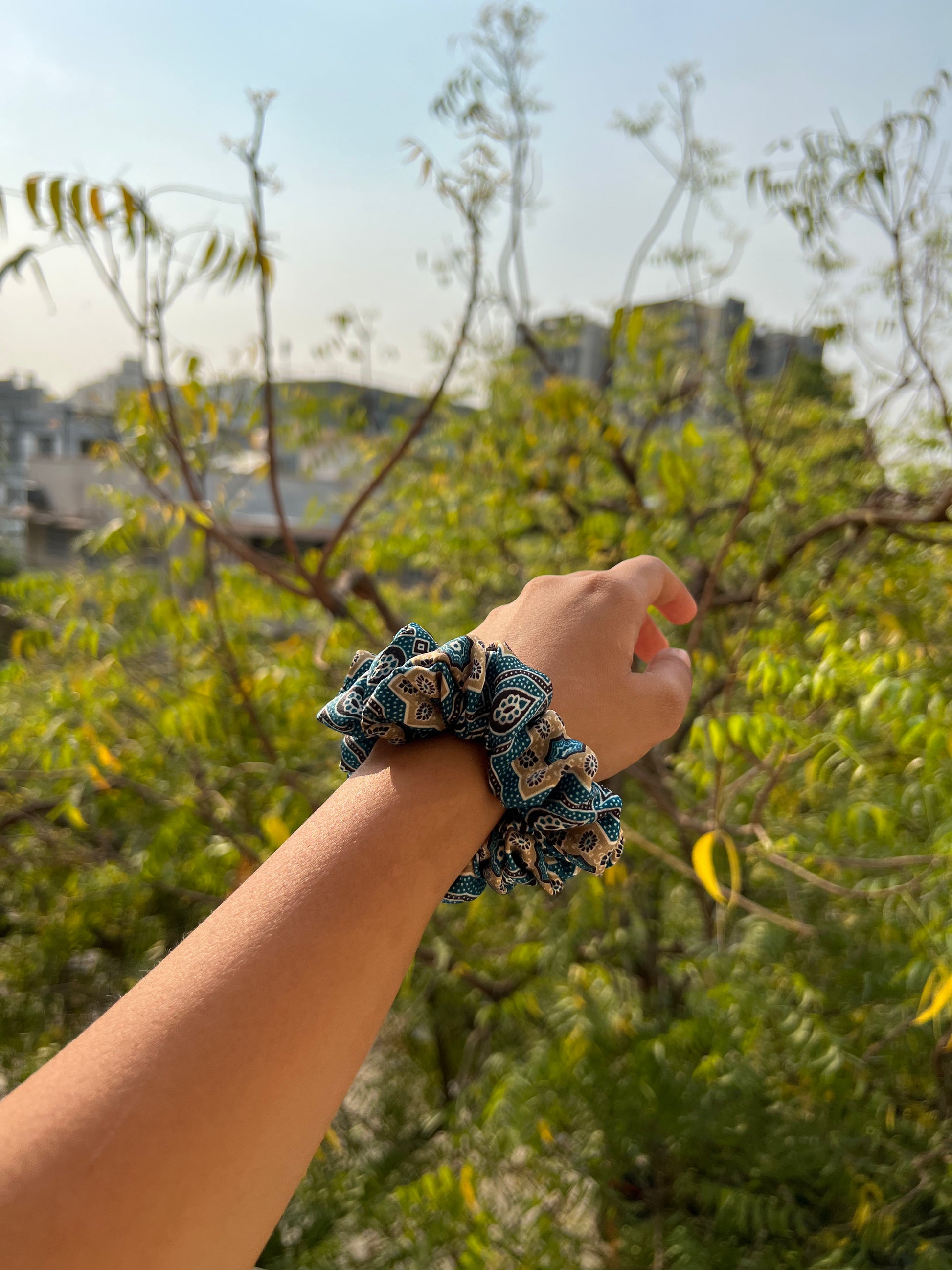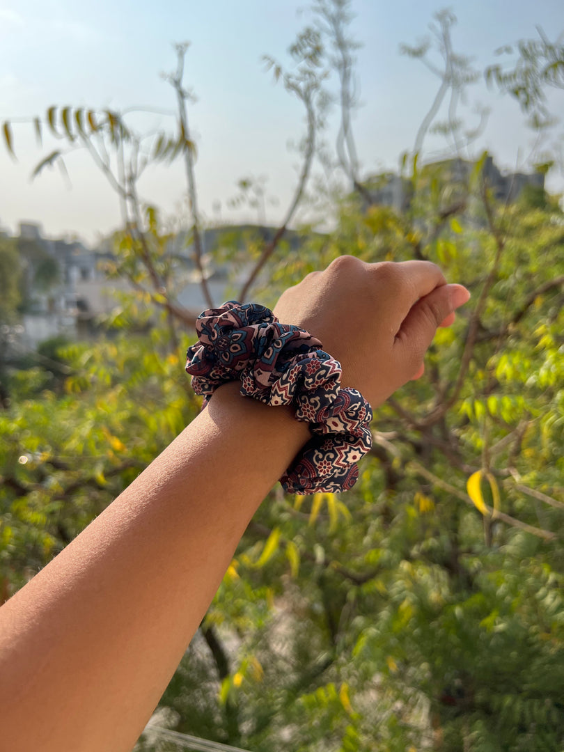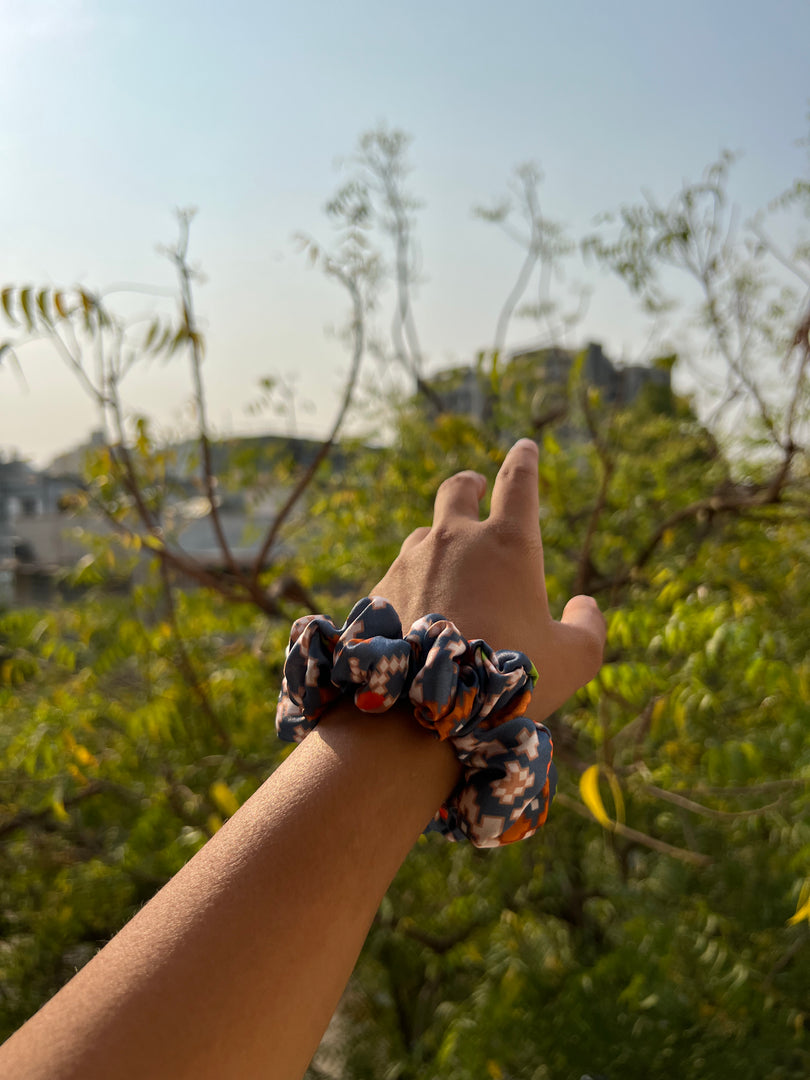 Details: Scrunchies are free size, but we have an eye for detail and would love to share the details with you. When we stitch a twain scrunchie, we take a single print patch of 34 inches, which is 2 inches in width. Two different patches are stitched together- the diameter of the scrunchie comes to about 3 inches.