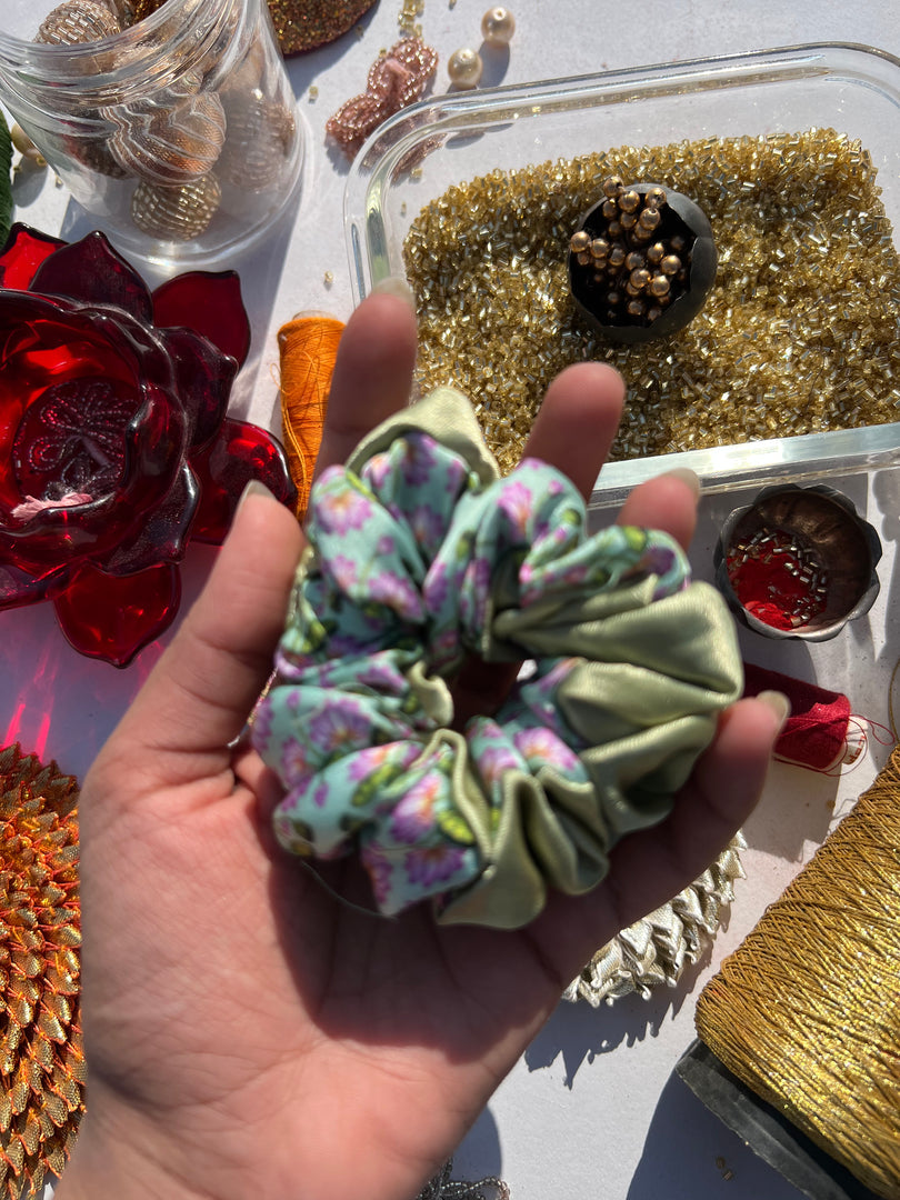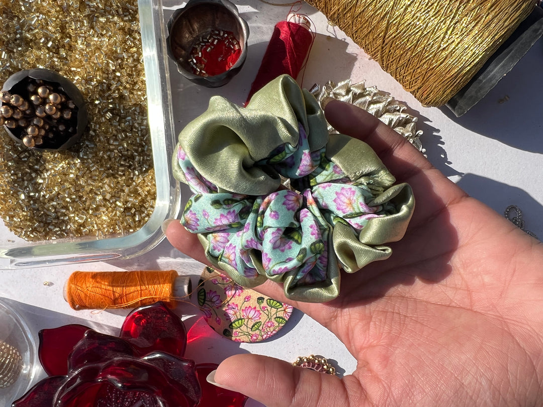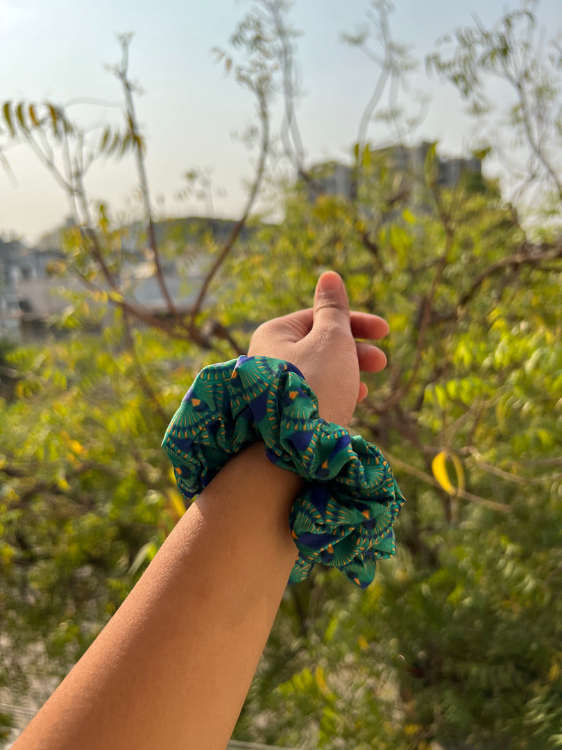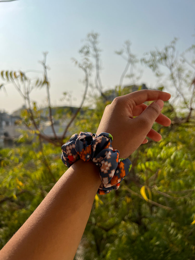 Details: Scrunchies are free size, but we have an eye for detail and would love to share the details with you. When we stitch a twain scrunchie, we take a single print patch of 34 inches, which is 2 inches in width. Two different patches are stitched together- the diameter of the scrunchie comes to about 3 inches.