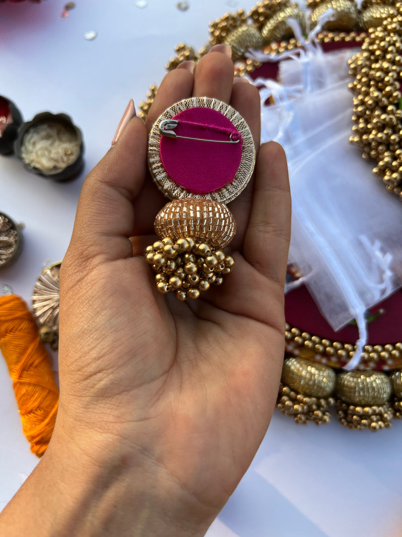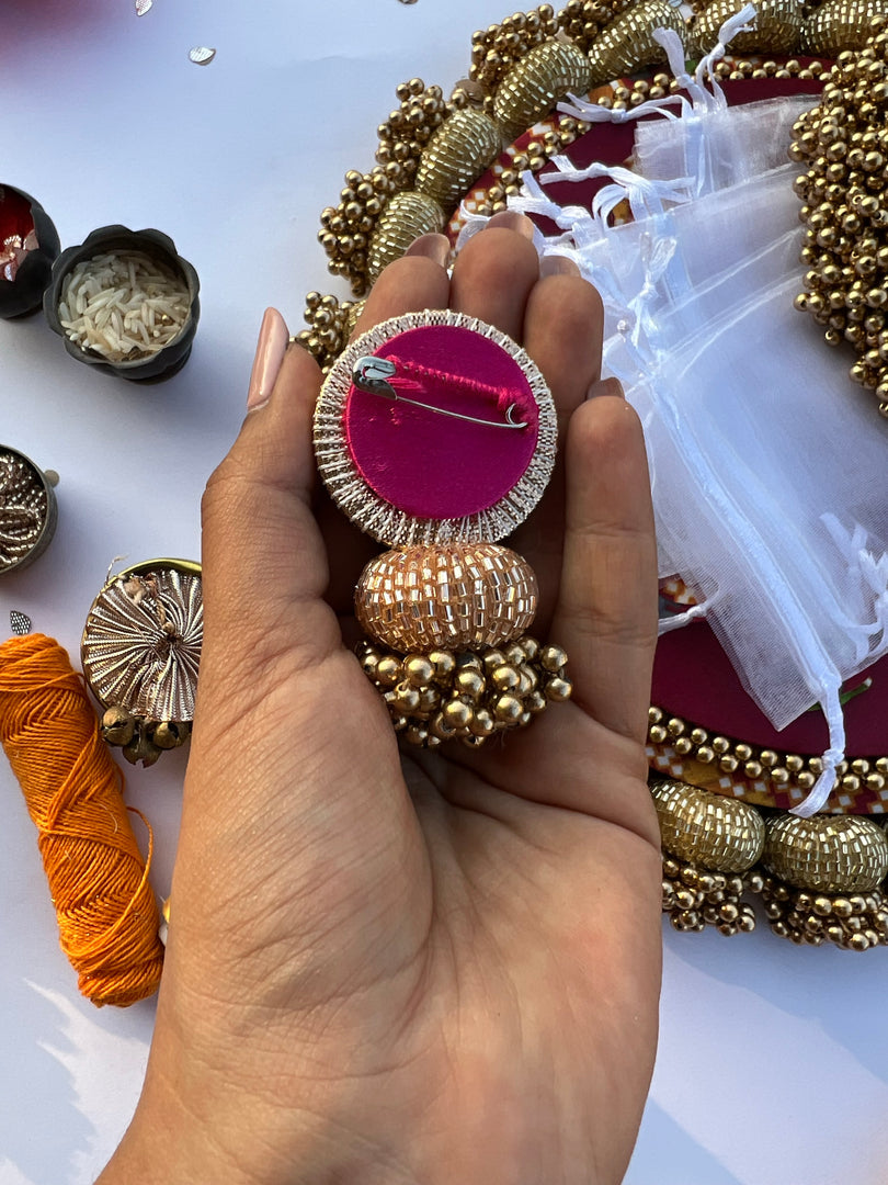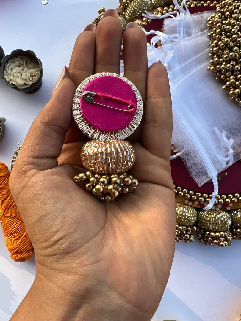 Handcrafted brooch for Baraat welcome and wedding giveaways, becomes a lovely saree pin too!