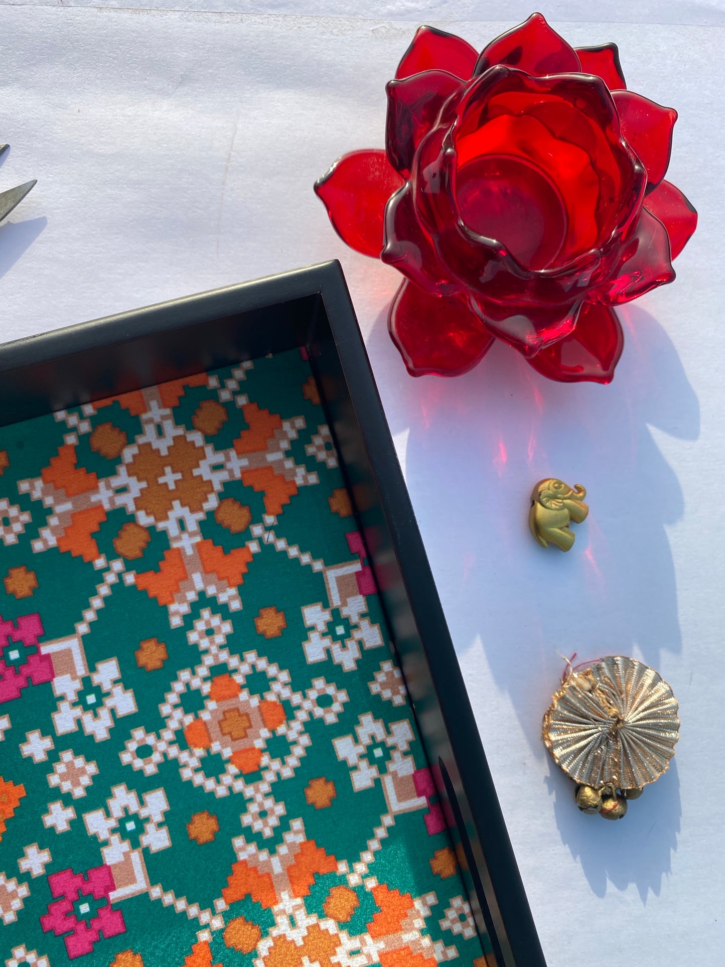 Bottle Green Navratna Patola Square Multi-Purpose Tray