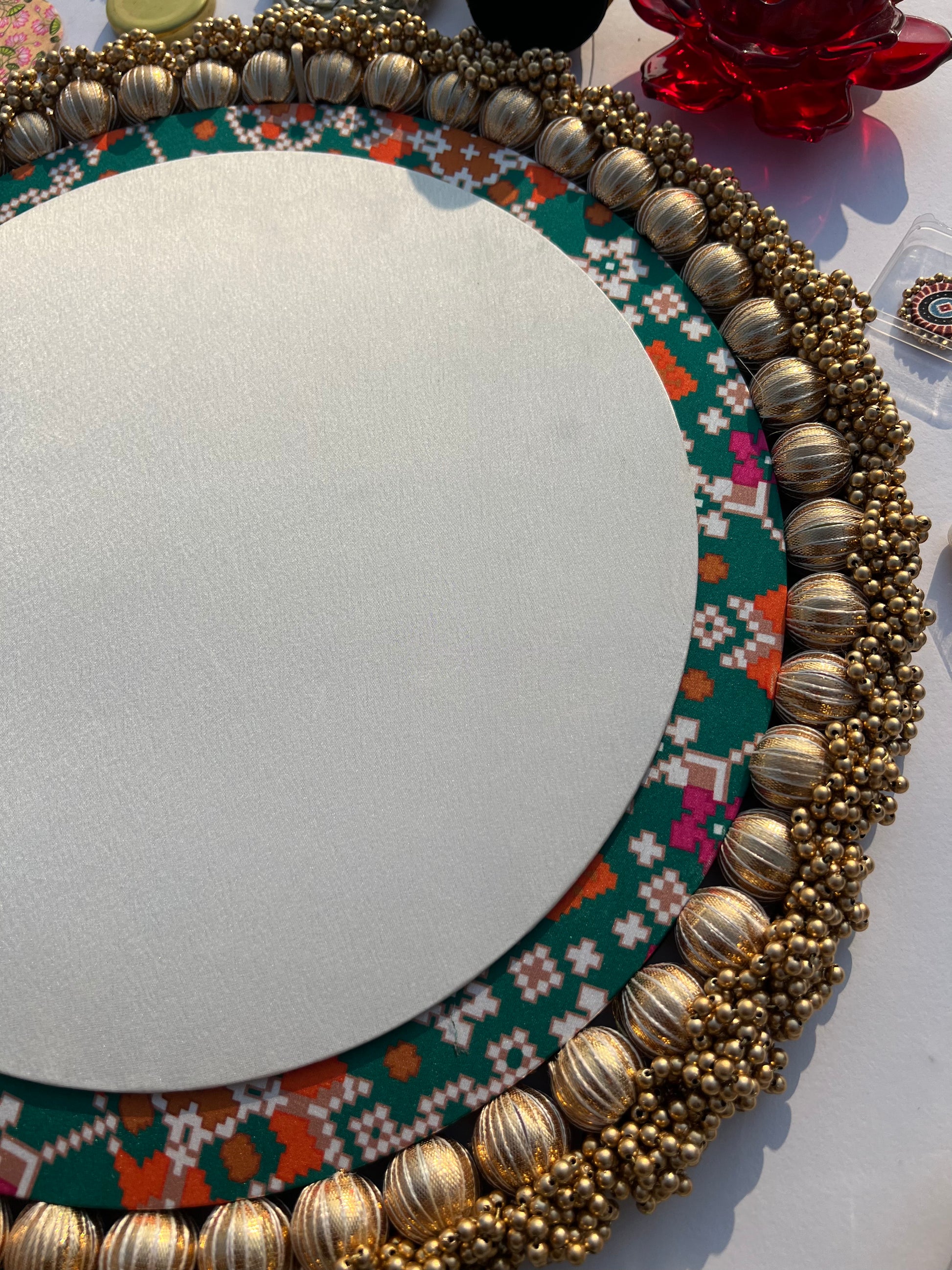 If you already have a fabric with the kanku pagla imprinted on it in the ceremony, we can help you make this a forever memory on the platter. You can send the piece of fabric to us via courier to our production facility and we can make this platter. Please get in touch with us on +91 9978814653 for further details.