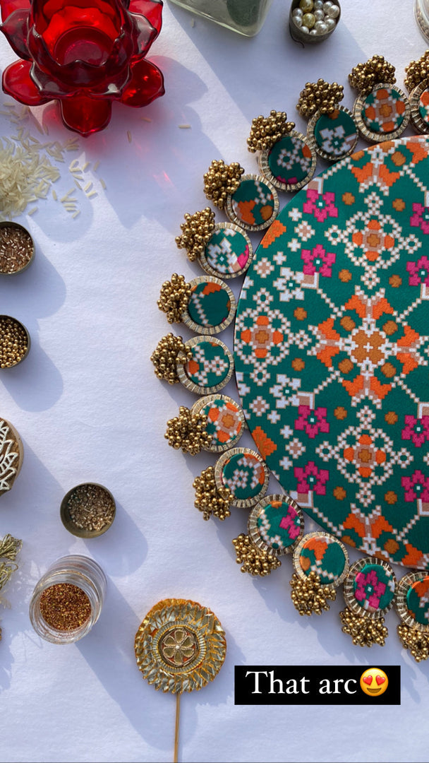 Style this rangoli against the wall or or two corners of the door- two sided, flip & use!