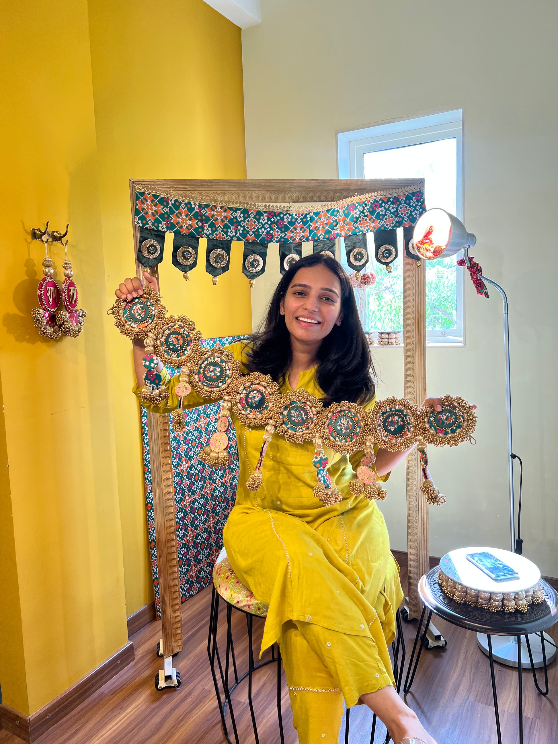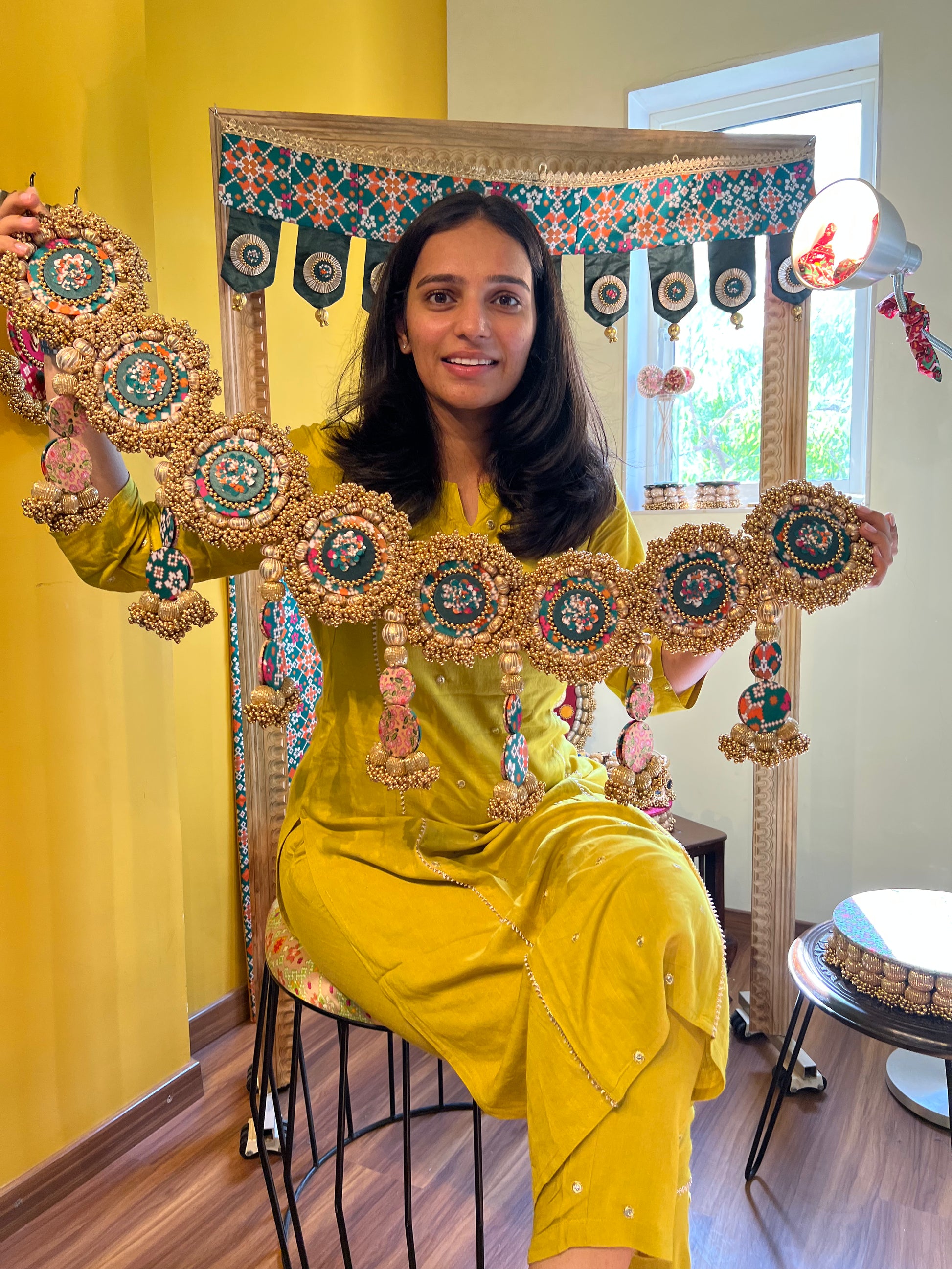 A toran is more than just an accessory for your home—it is the very first impression, a gesture of welcome, and a celebration of tradition. Our handcrafted toran, Varnika, is named after the Sanskrit word meaning “the one who adds color and beauty.”