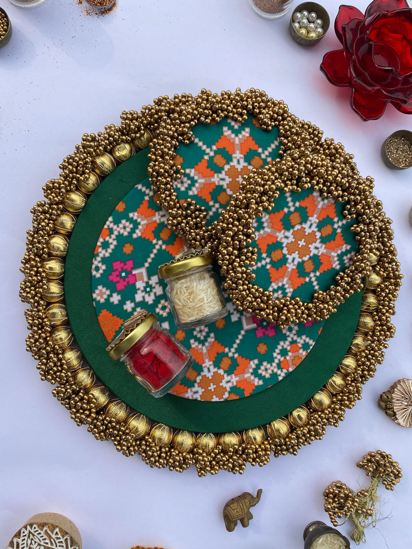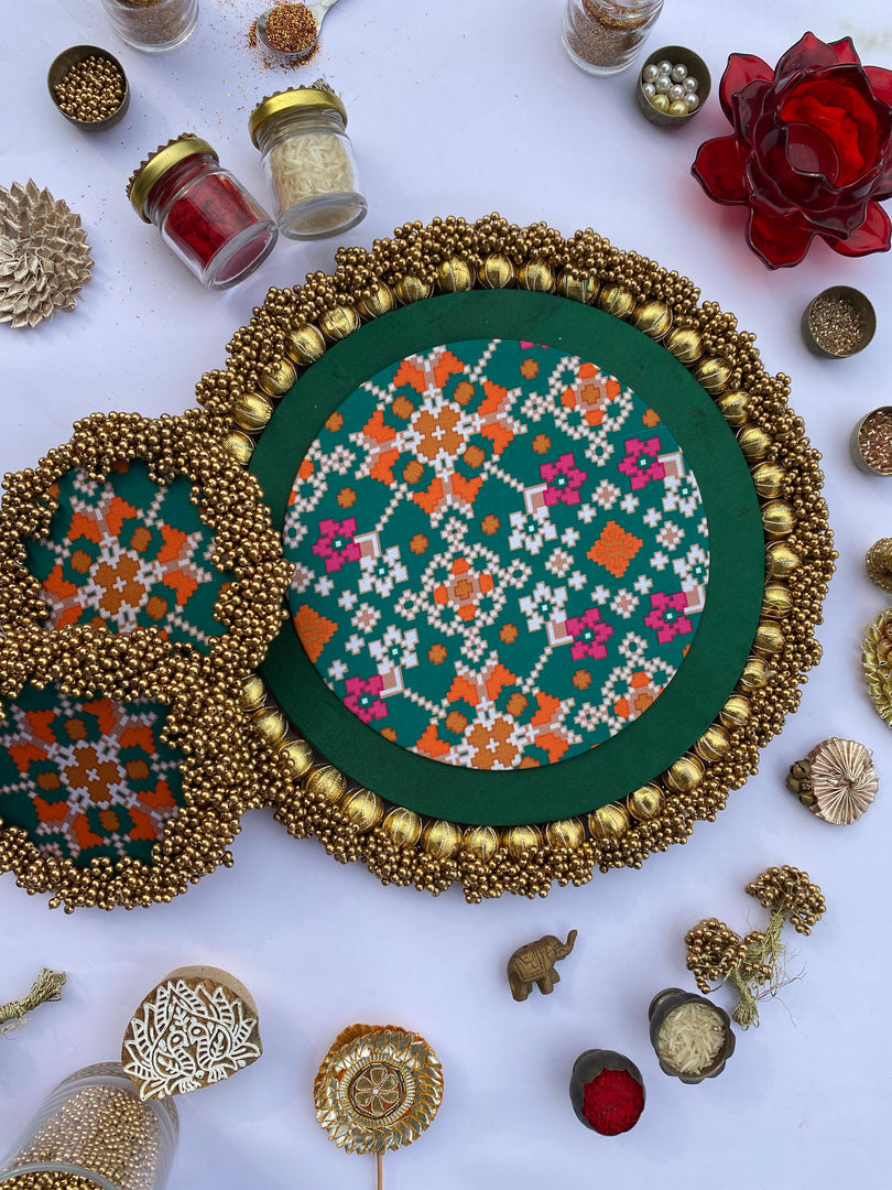 2. The Copper Beaded Gathered Maroon & Green Navratna Rangoli