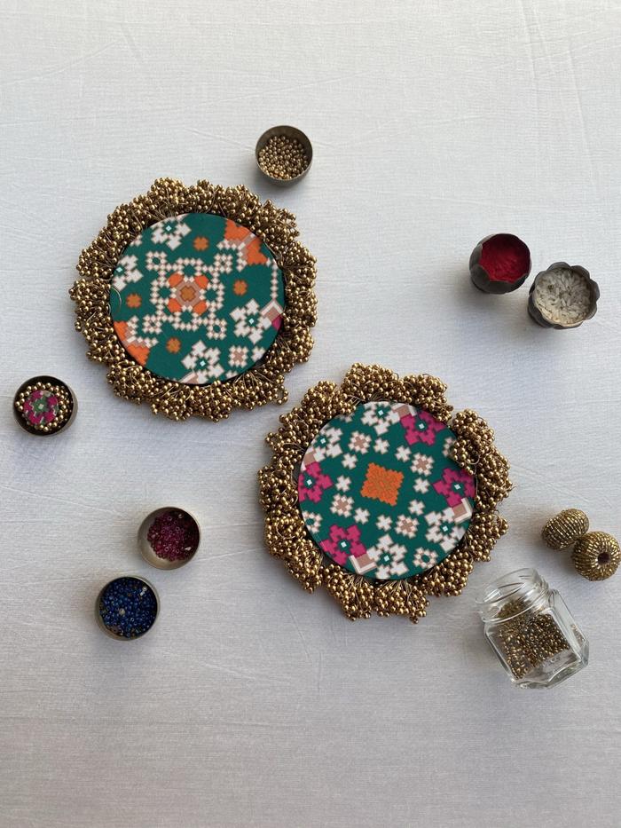 All IBHI products are meticulously handmade, involving various stages of different craftsmanship. Our creations are a blend of layers of high-quality fabric, Medium Density Fibre (MDF) for structure, and intricate beads and embellishments. The beads are meticulously connected using rolls of threads and hand stitches, adding to the uniqueness and charm of our products.