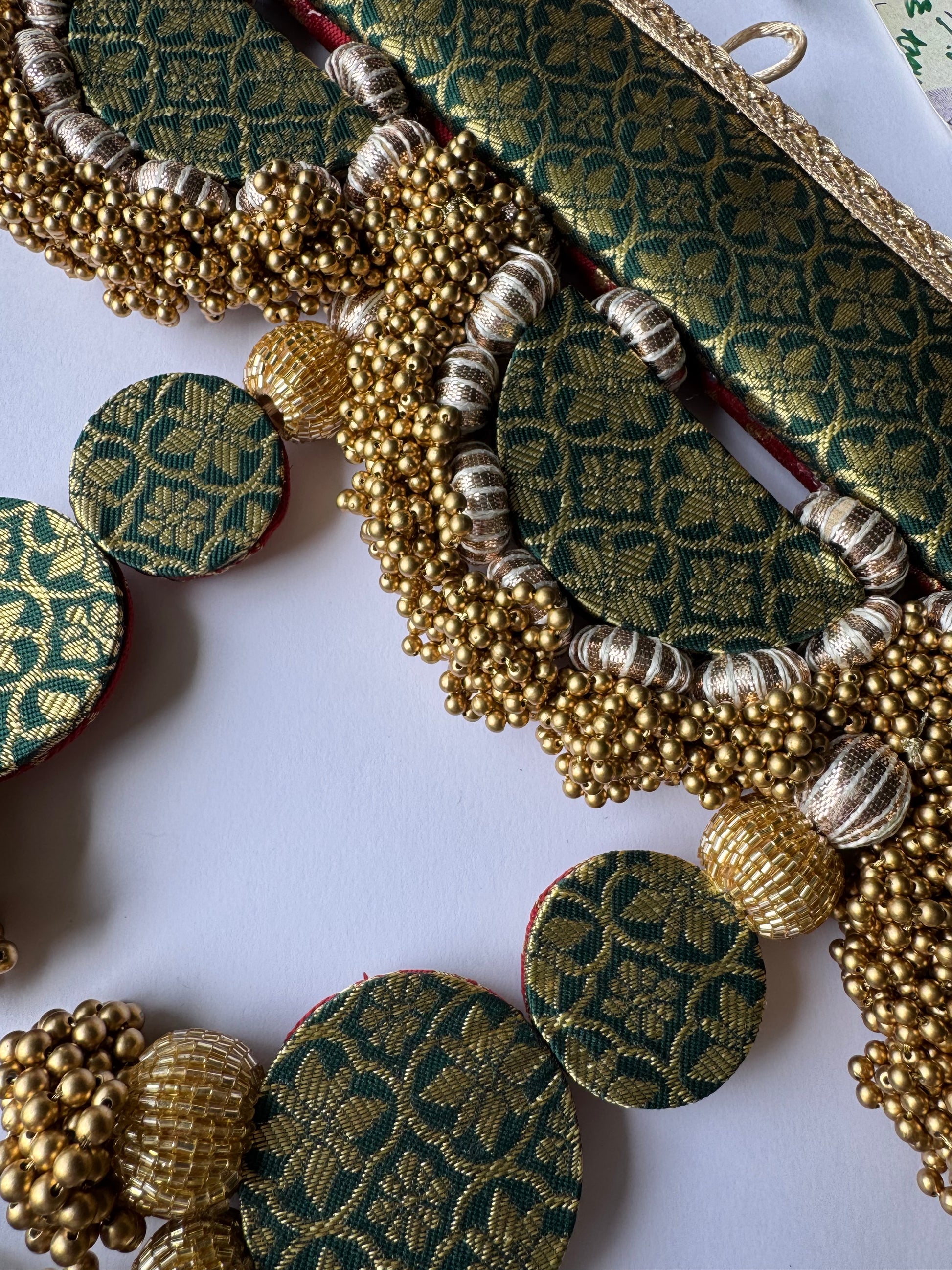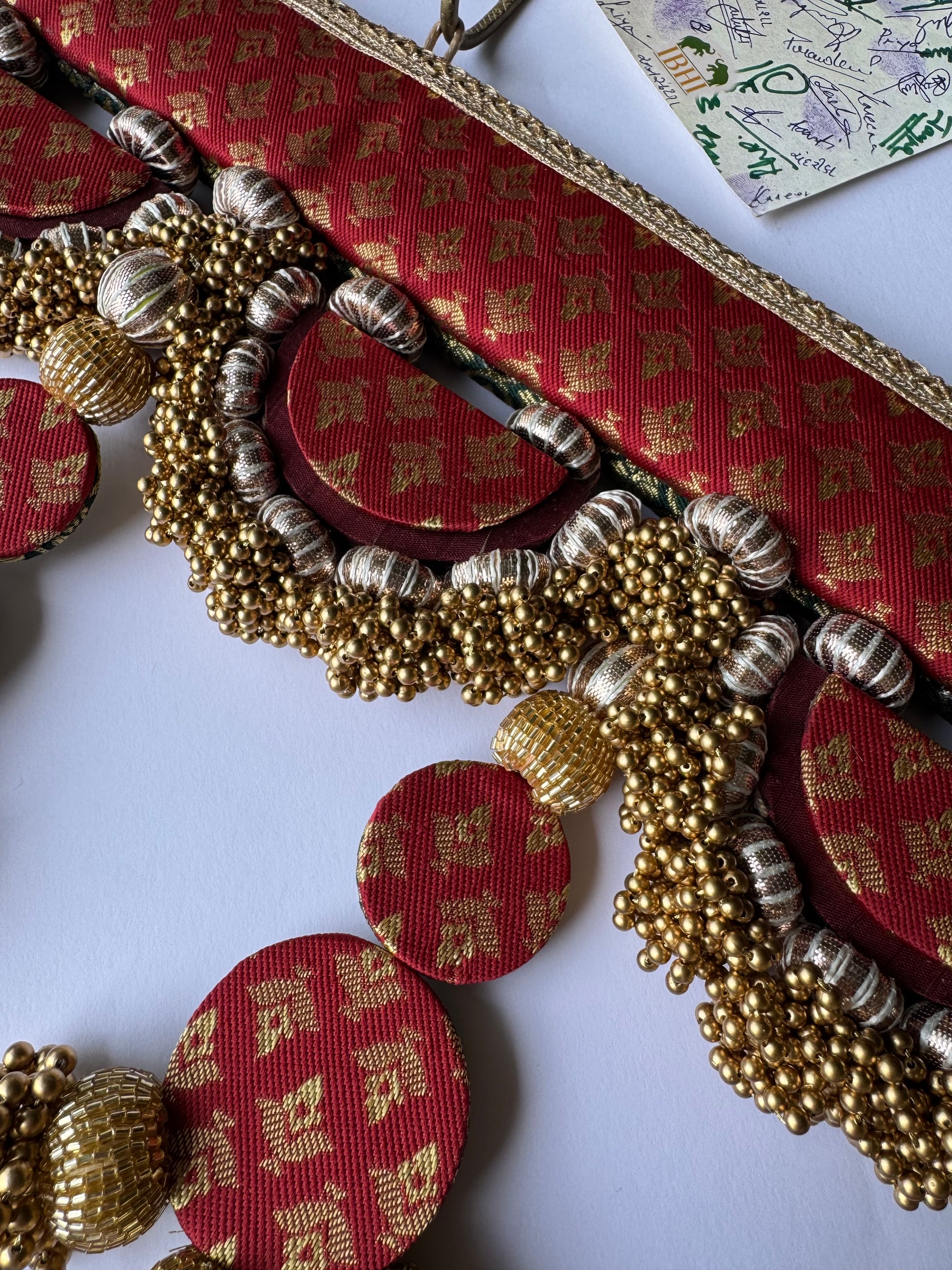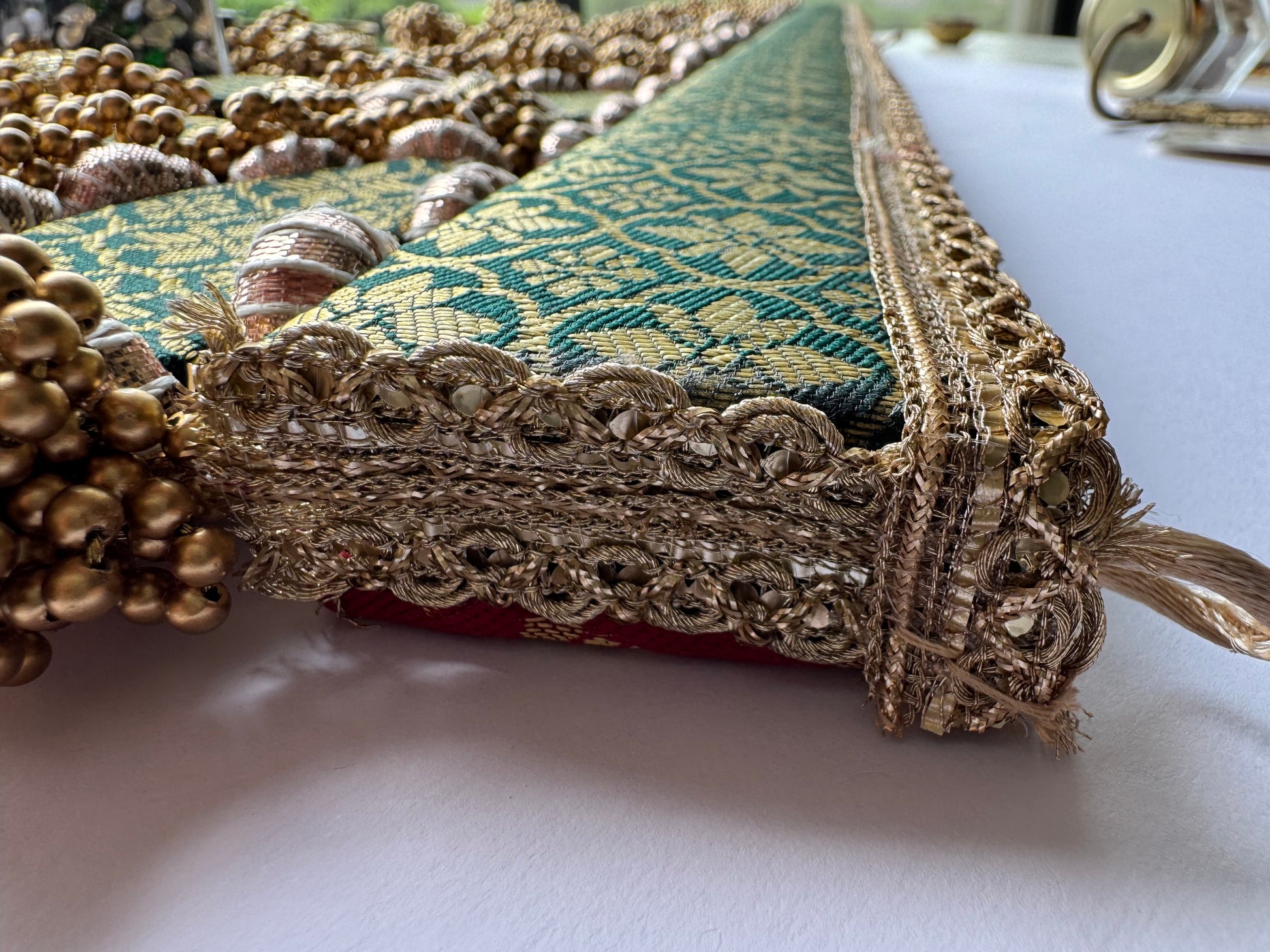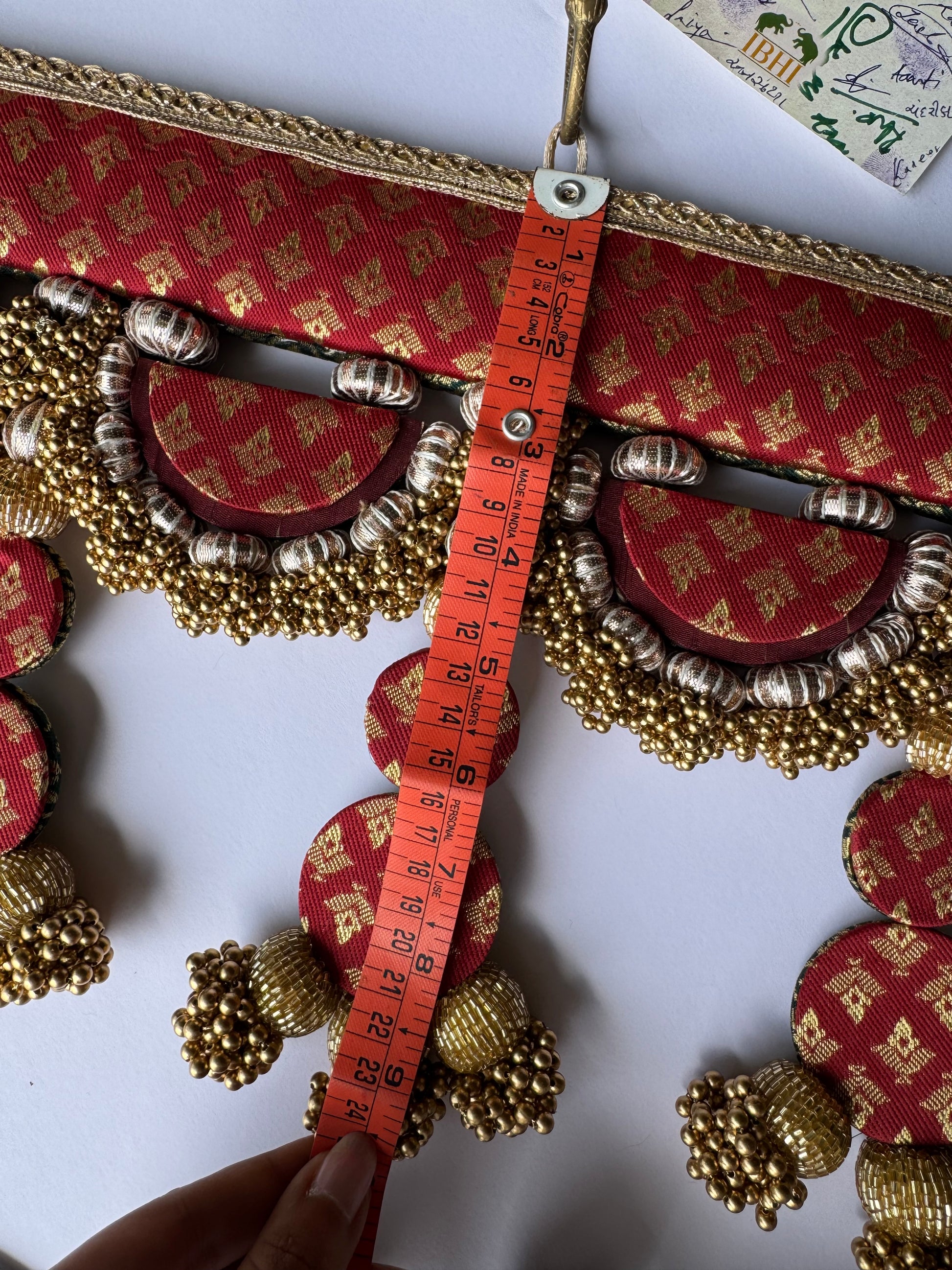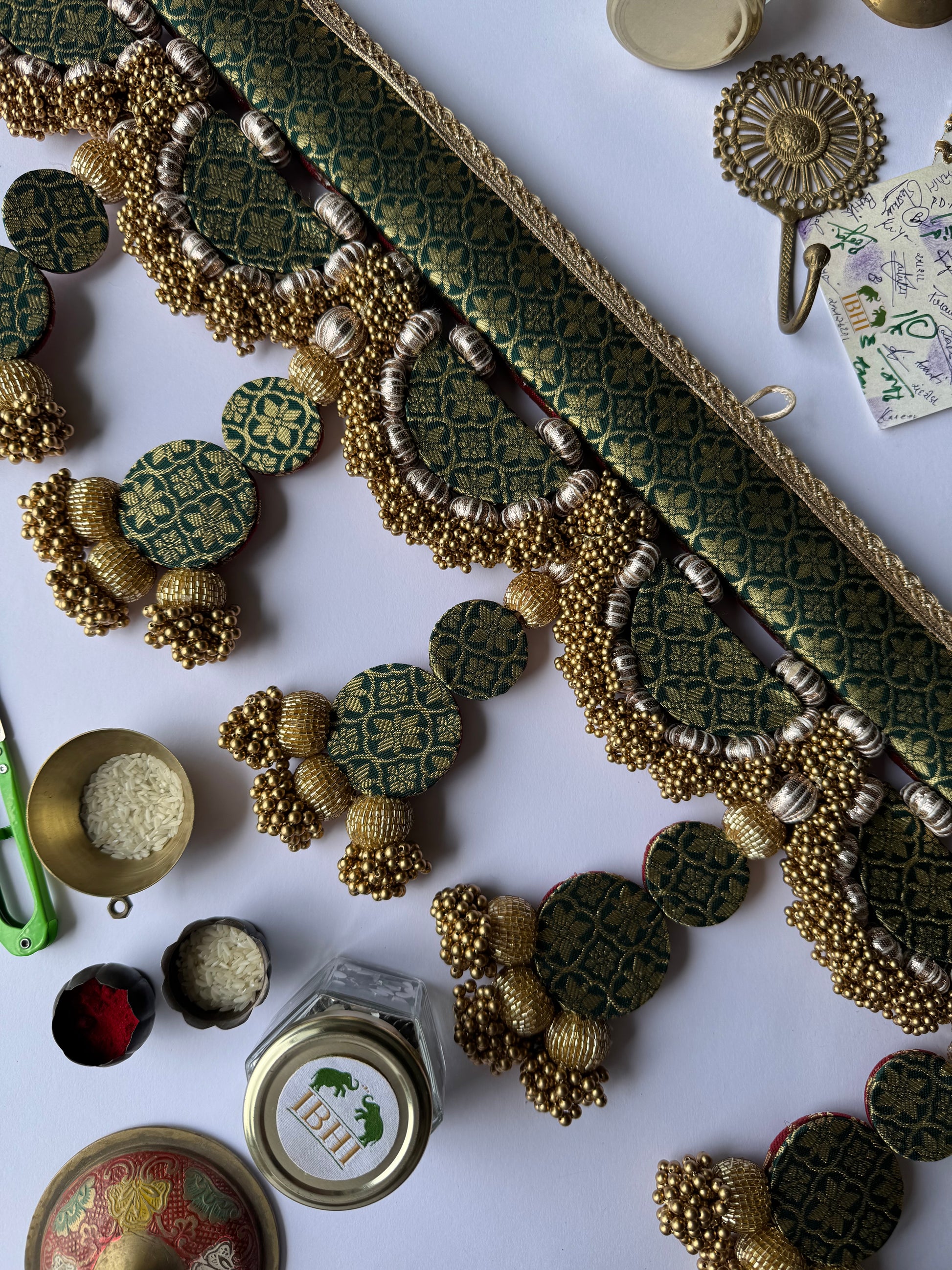 If you'd be talking to us about this piece of art, we'd tell you this — without a doubt, Gulharsh is one of IBHI’s bestsellers. A heart-stealing toran with timeless charm, crafted from rich Banarasi-inspired fabrics and adorned with sleek danglers that elevate any festive space.
