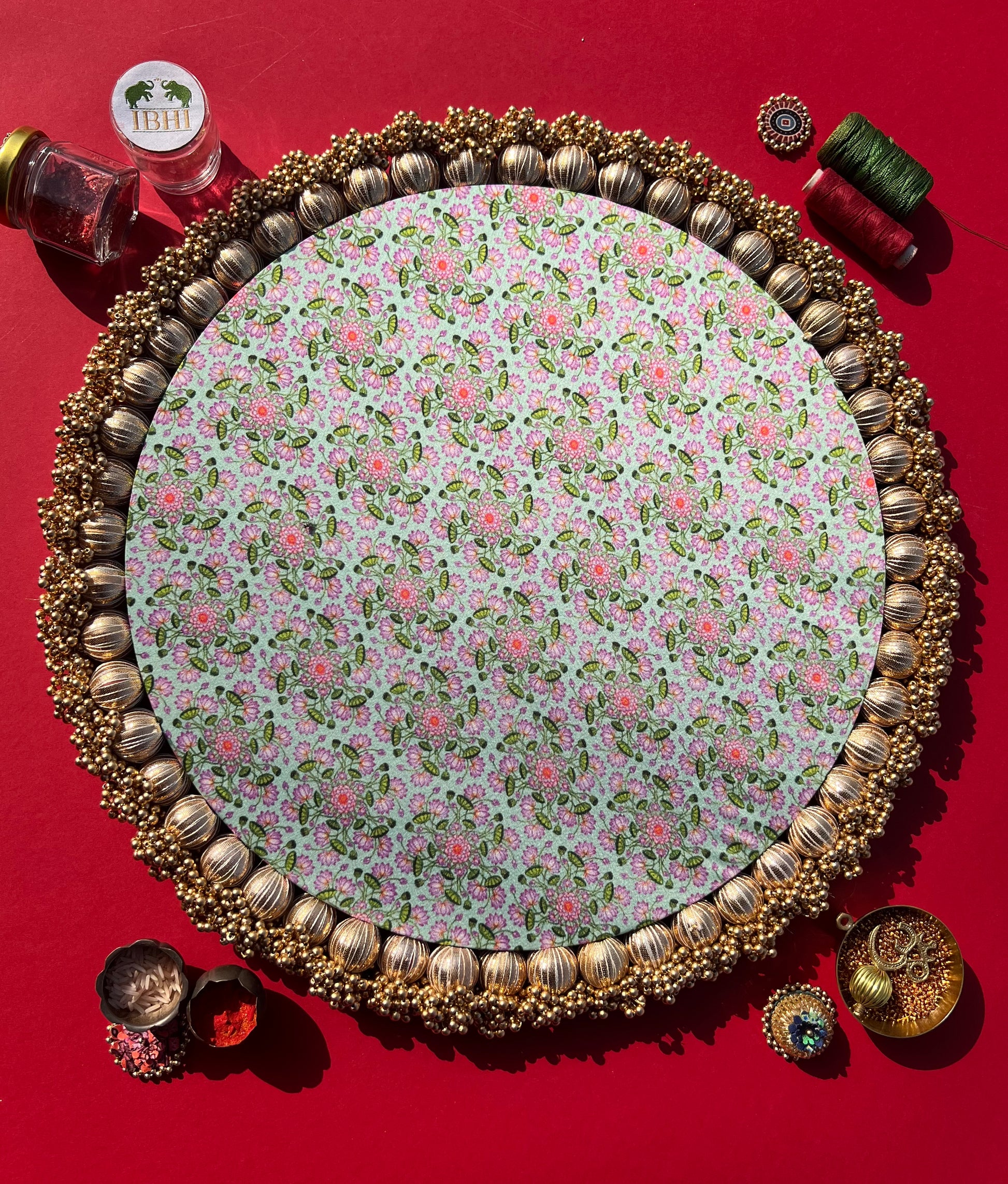 Handle your IBHI products delicately to preserve their beauty and longevity. Display them in a safe place where they can be admired. No amount of sunlight will affect the quality and finish of the product. The fabrics used are digitally printed using high-grade inks and pigments, making it sunshine friendly. Store them in a dry place to avoid moisture damage. To clean, gently dust with a soft cloth or a soft-bristle brush, and avoid using harsh chemicals or water directly on the fabric and embellishments.