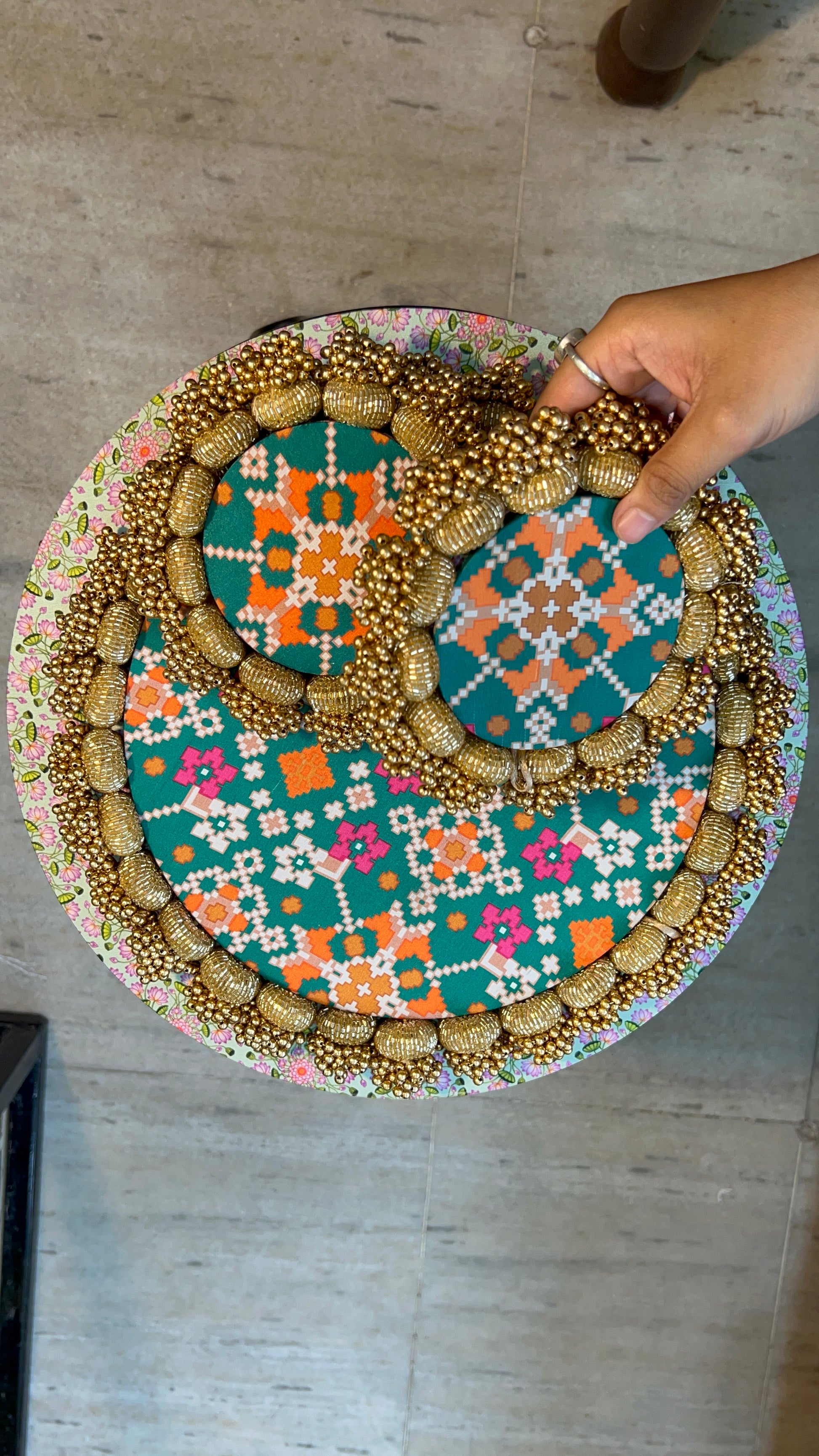 IBHI's design ideology starts with versatility and ends with matching all aesthetics. The tasseled danglers of this platter add the correct amount of bling, it is versatile and matches vibes of all occasions. The Dangler Platter can be used for placing invitation cards, as ring ceremony platters, for serving sweets, placing idols of gods & goddesses and much more!