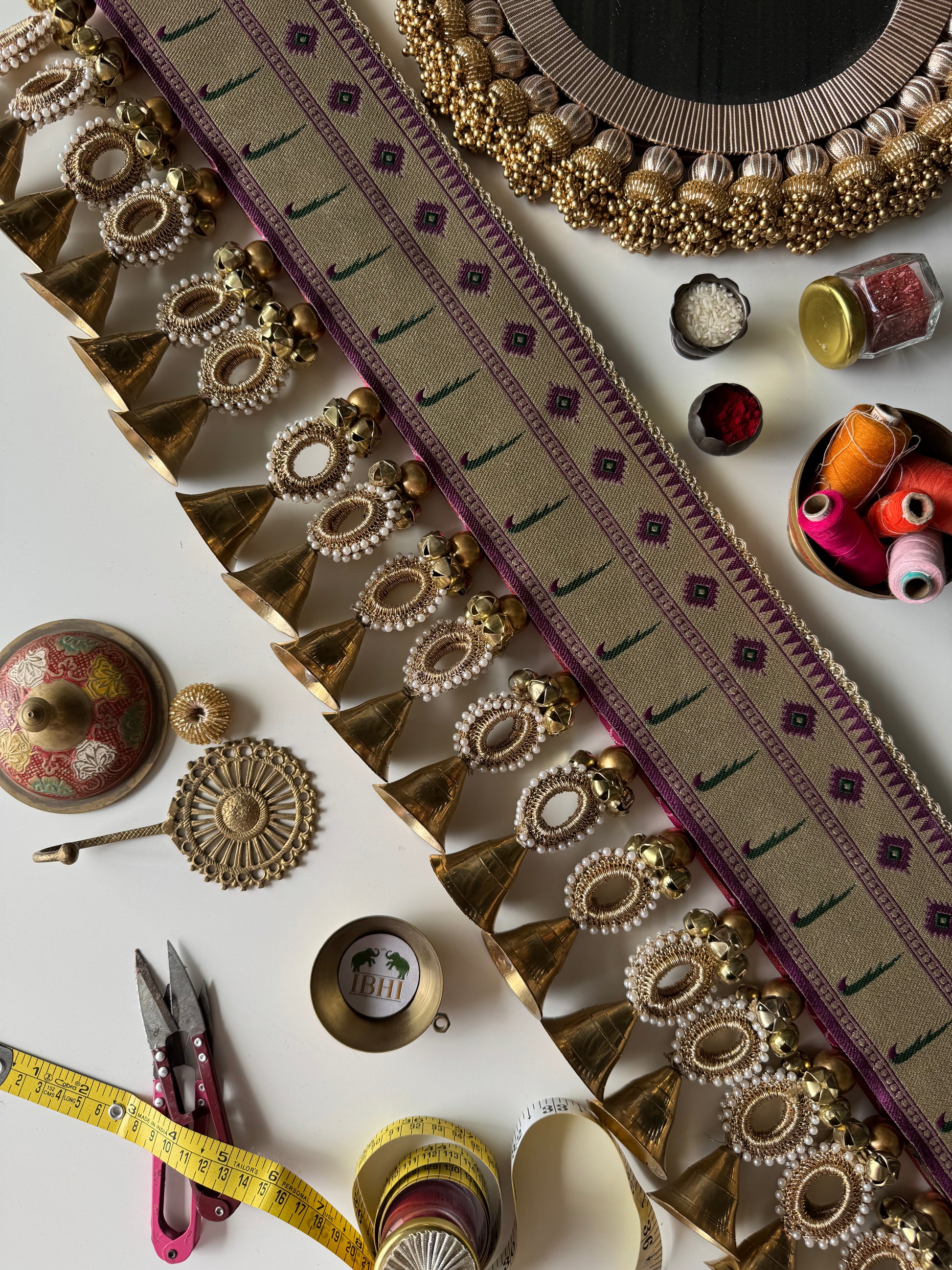 All IBHI products are meticulously handmade, involving various stages of different craftsmanship. Our creations are a blend of layers of high-quality fabric, Medium Density Fibre (MDF) for structure, and intricate beads and embellishments. The beads are meticulously connected using rolls of threads and hand stitches, adding to the uniqueness and charm of our products.
