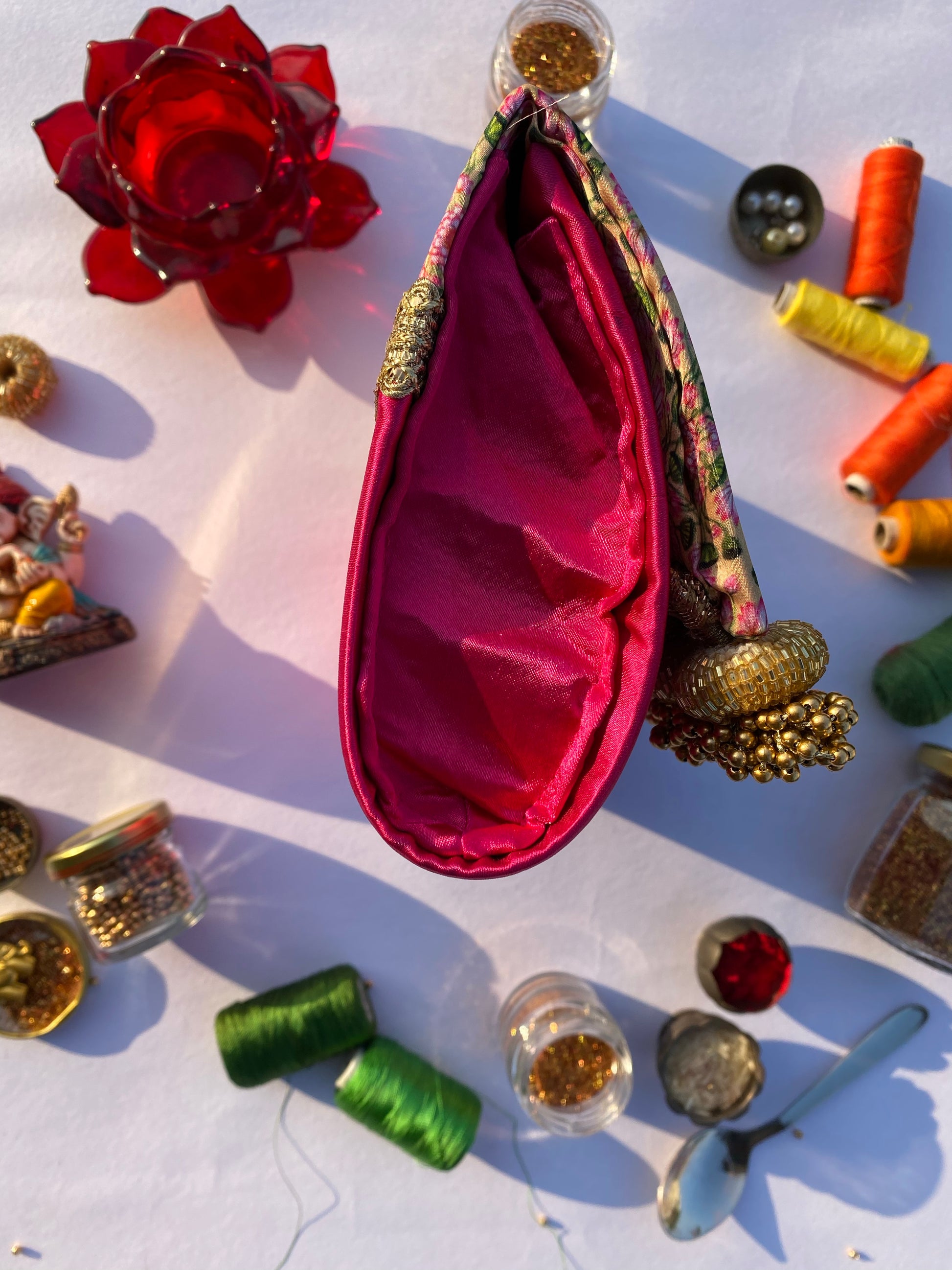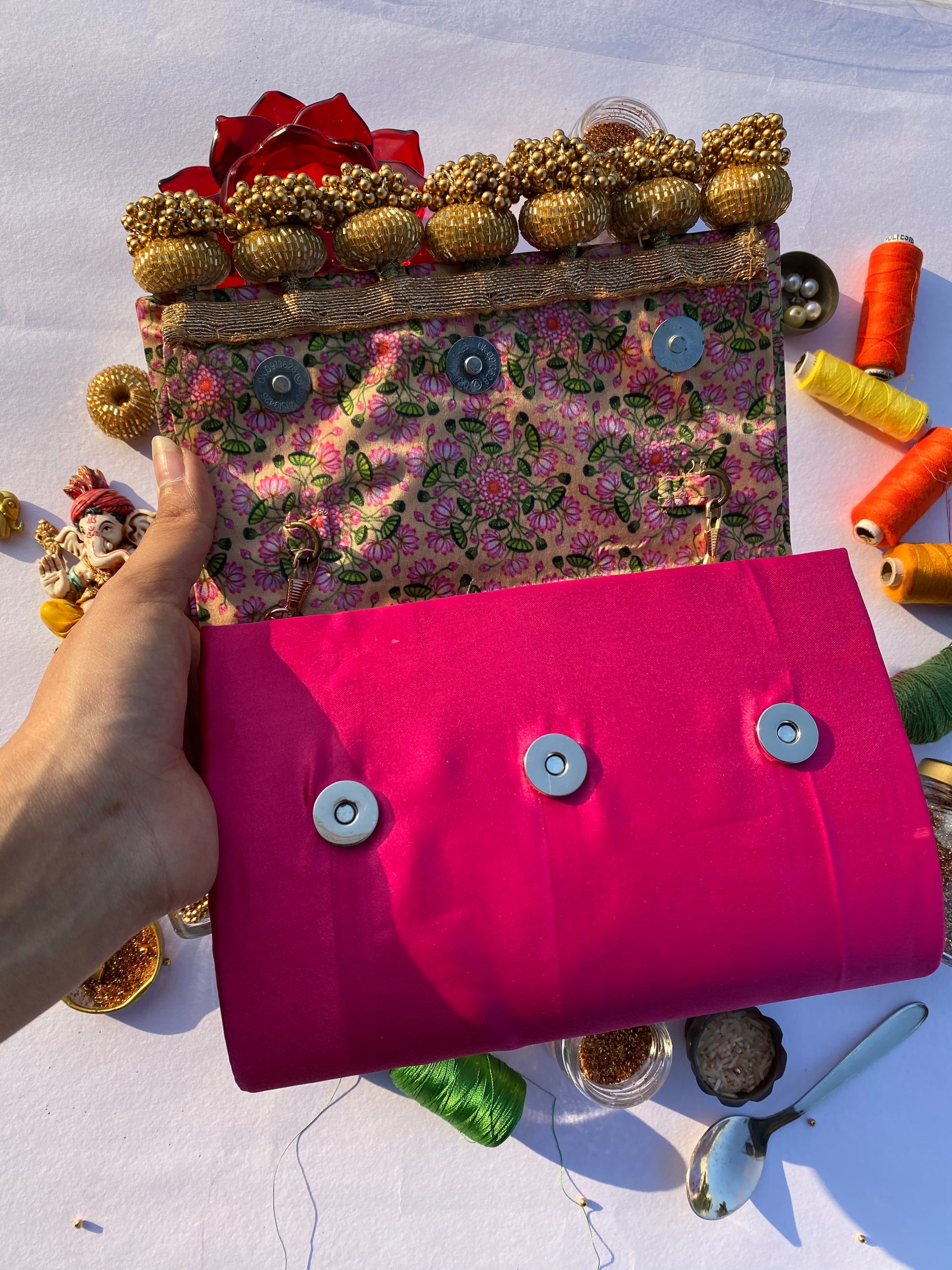 - Handcrafted Details: The rim of the clutch is embellished with hand-stitched beads, adding just the right amount of sparkle for a standout look.