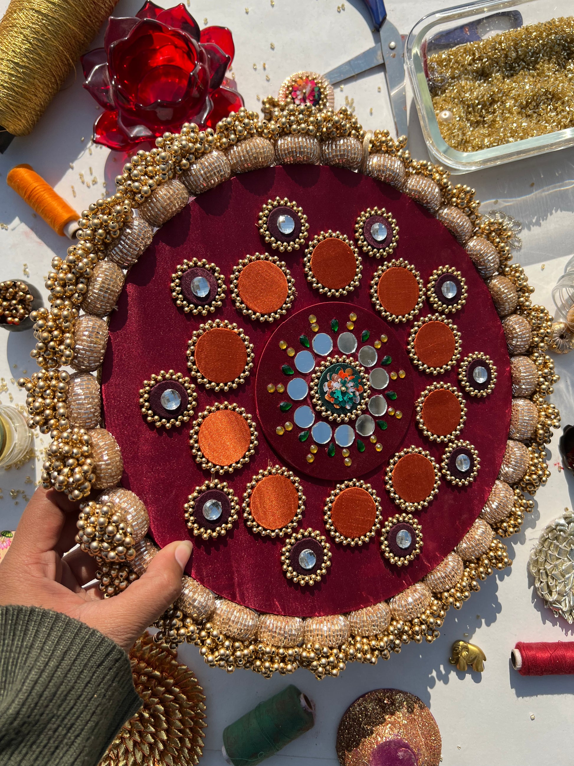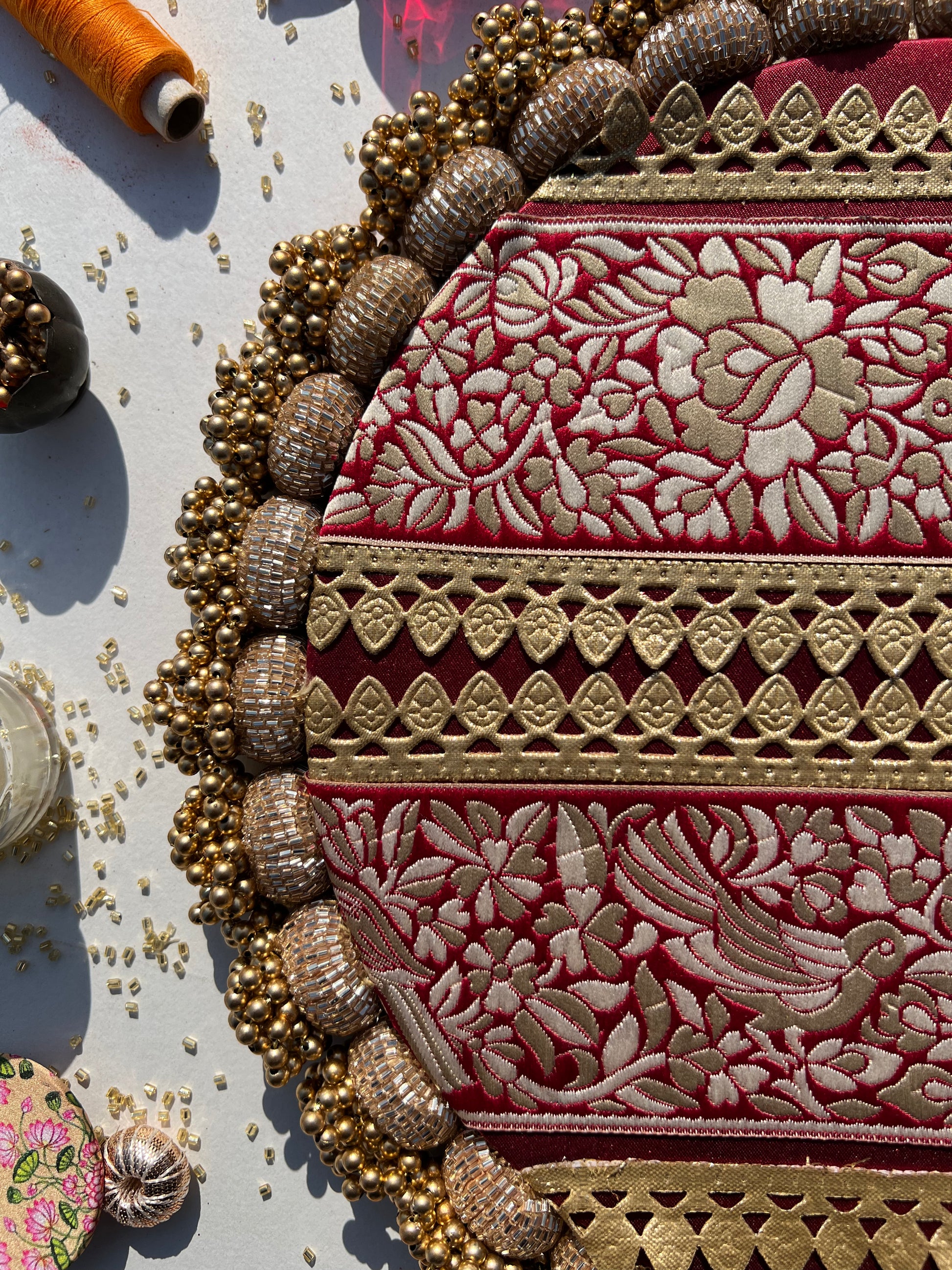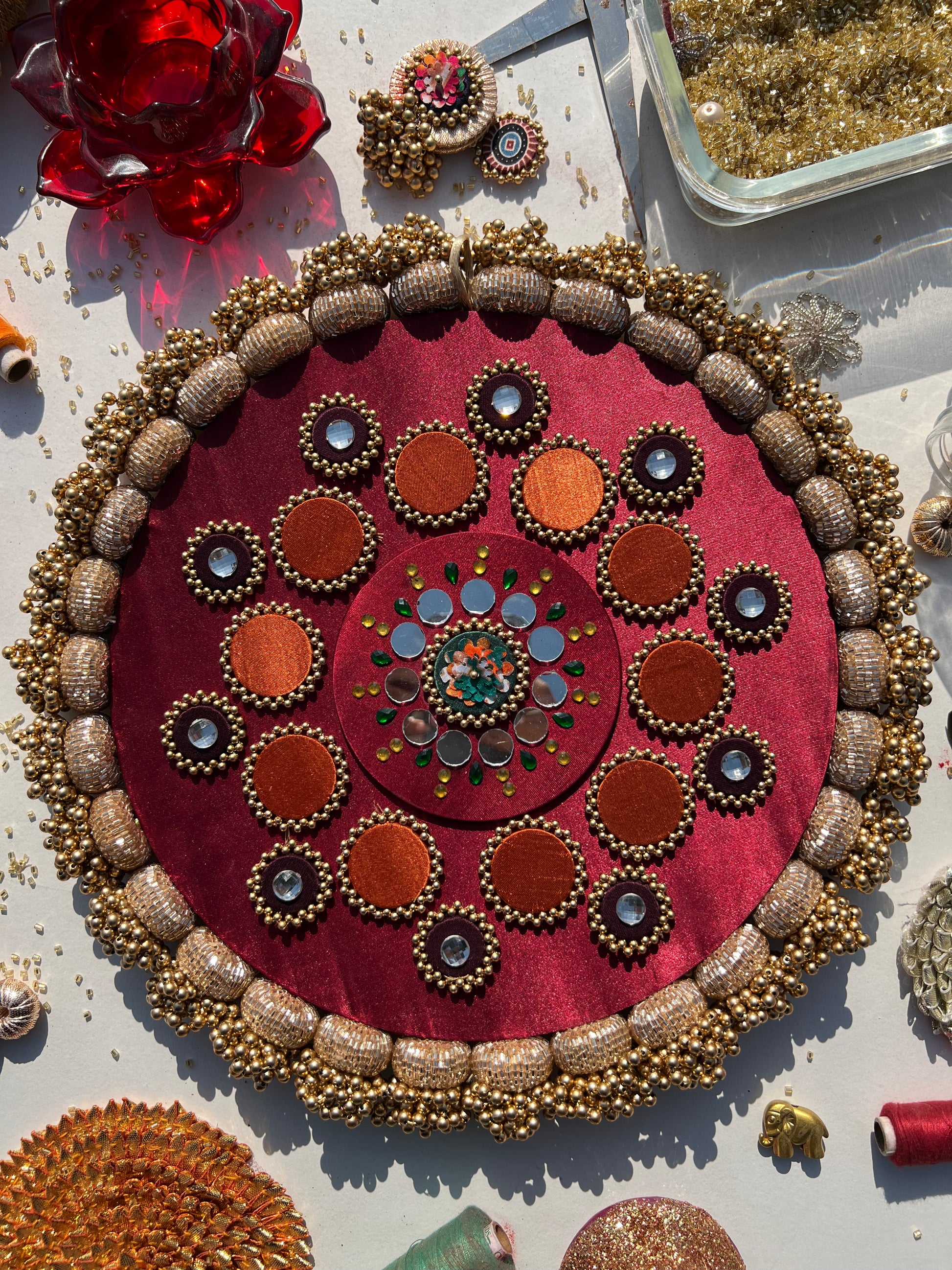 Mandala X Maroon Parsi Gara Glass Beaded Rangoli