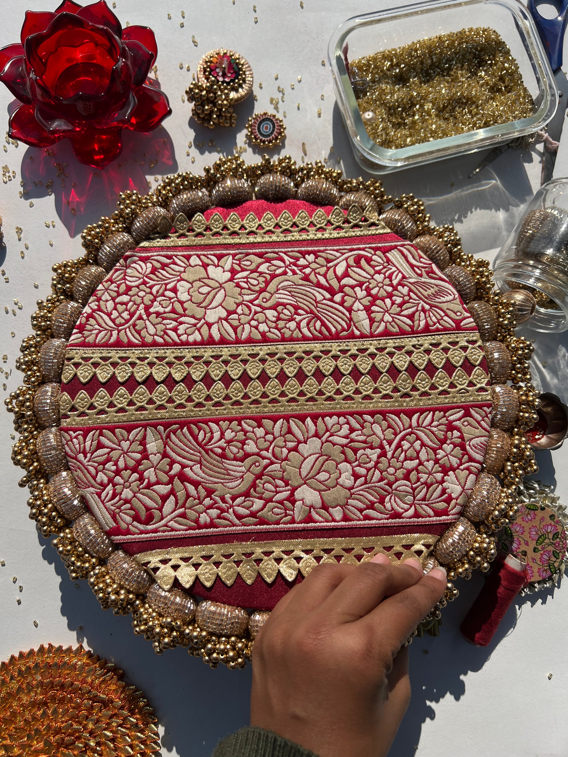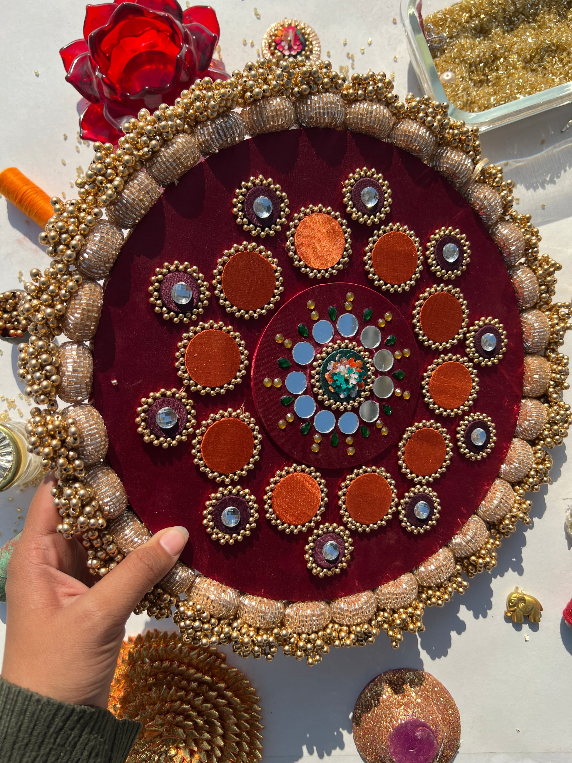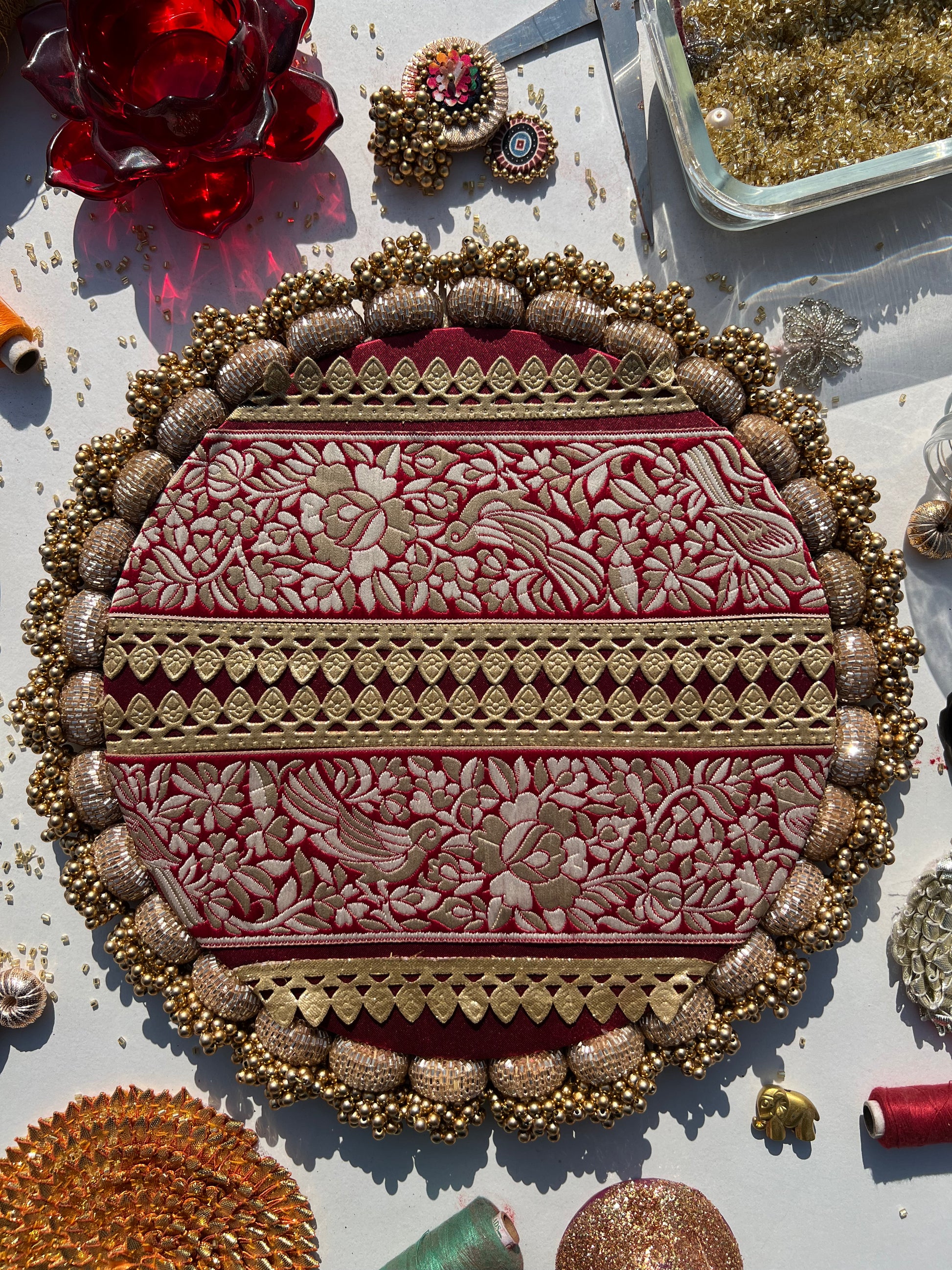 Mandala X Maroon Parsi Gara Glass Beaded Rangoli