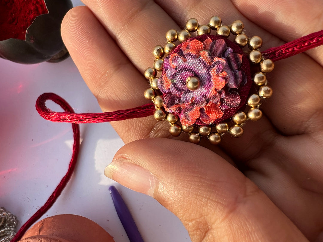 Maroon Navratna Patola Mini Beaded Enchanted Rakhi