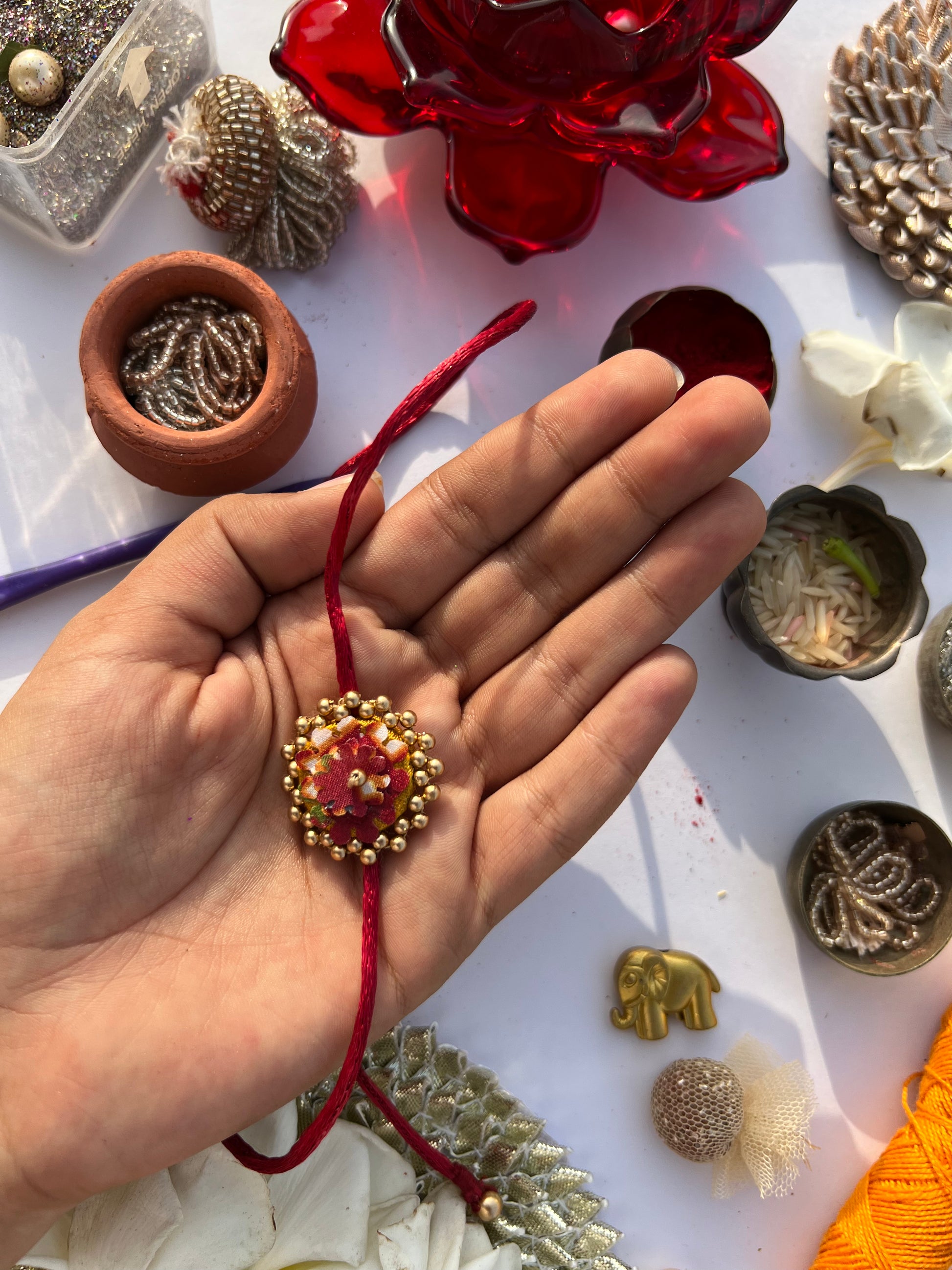 All IBHI products are meticulously handmade, involving various stages of different craftsmanship. Our creations are a blend of layers of high-quality fabric, Medium Density Fibre (MDF) for structure, and intricate beads and embellishments. The beads are meticulously connected using rolls of threads and hand stitches, adding to the uniqueness and charm of our products.