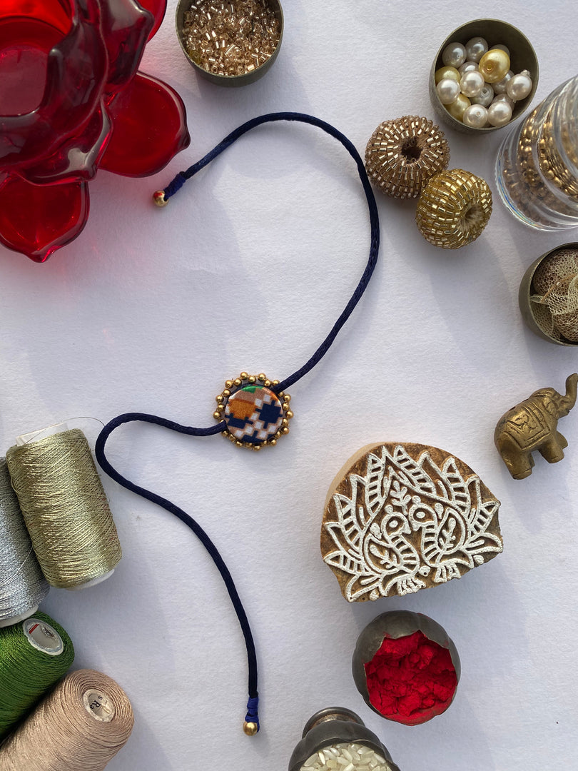 Miniature Maroon Navratna Patola Beaded Emblem Rakhi
