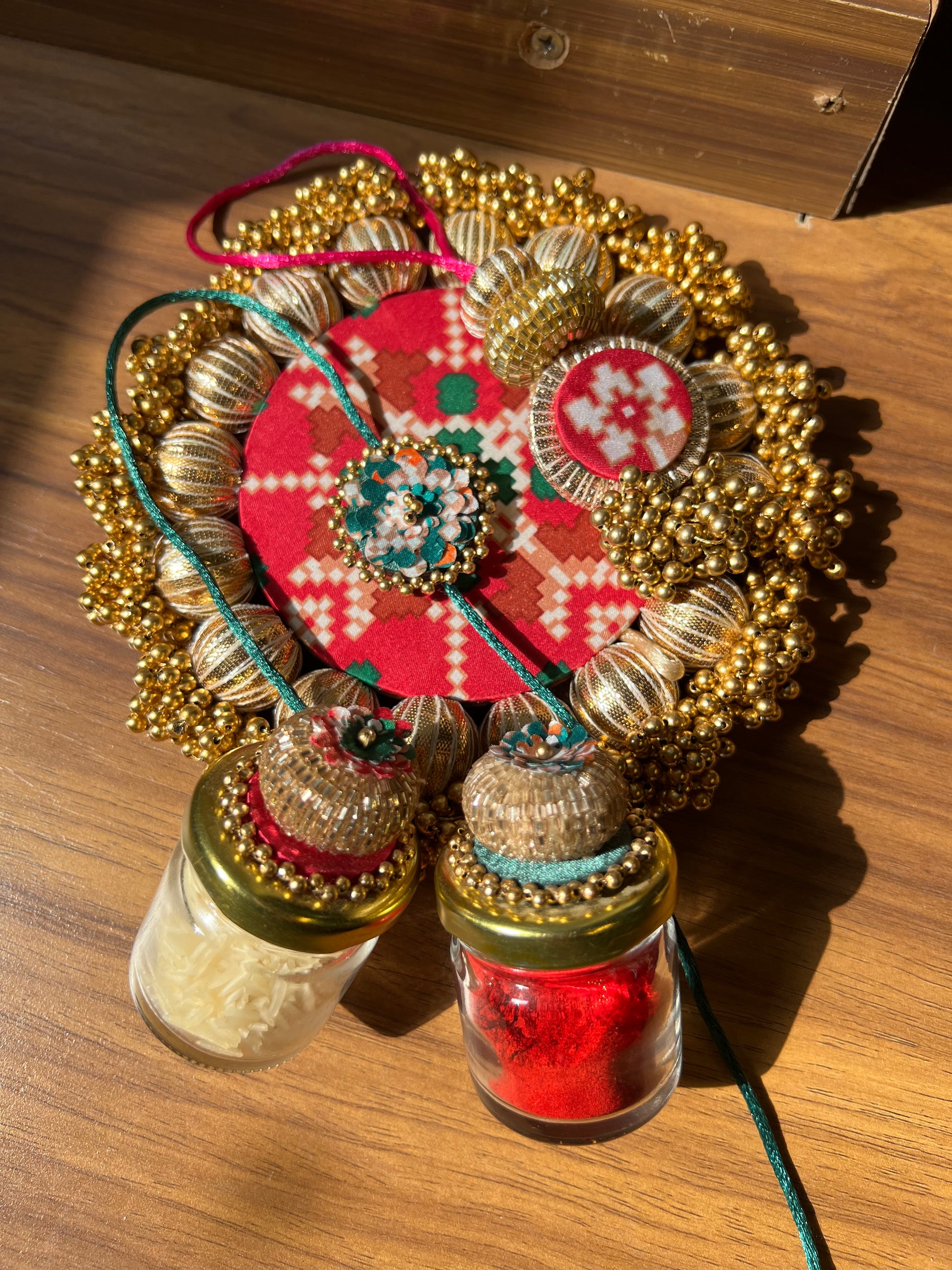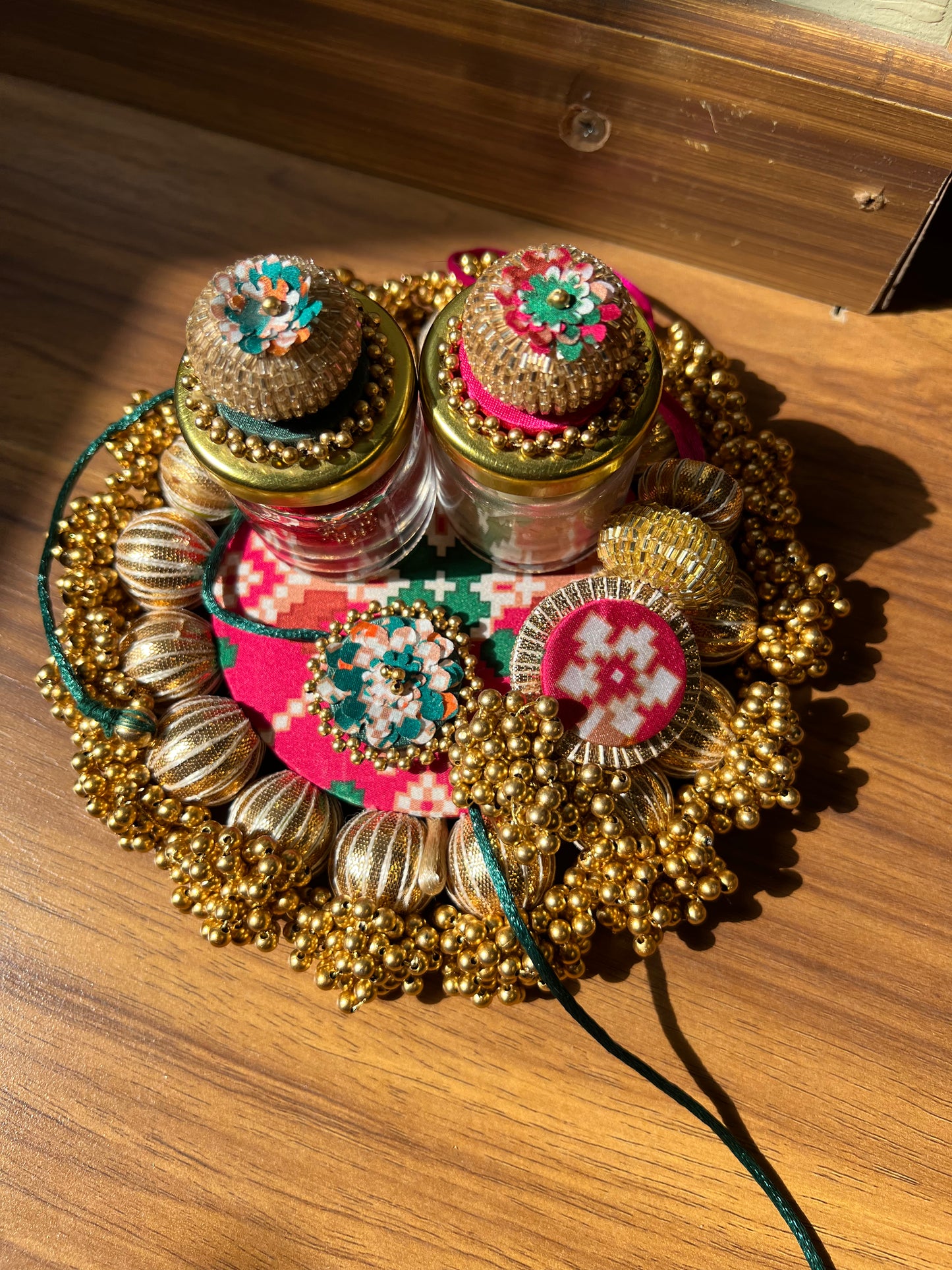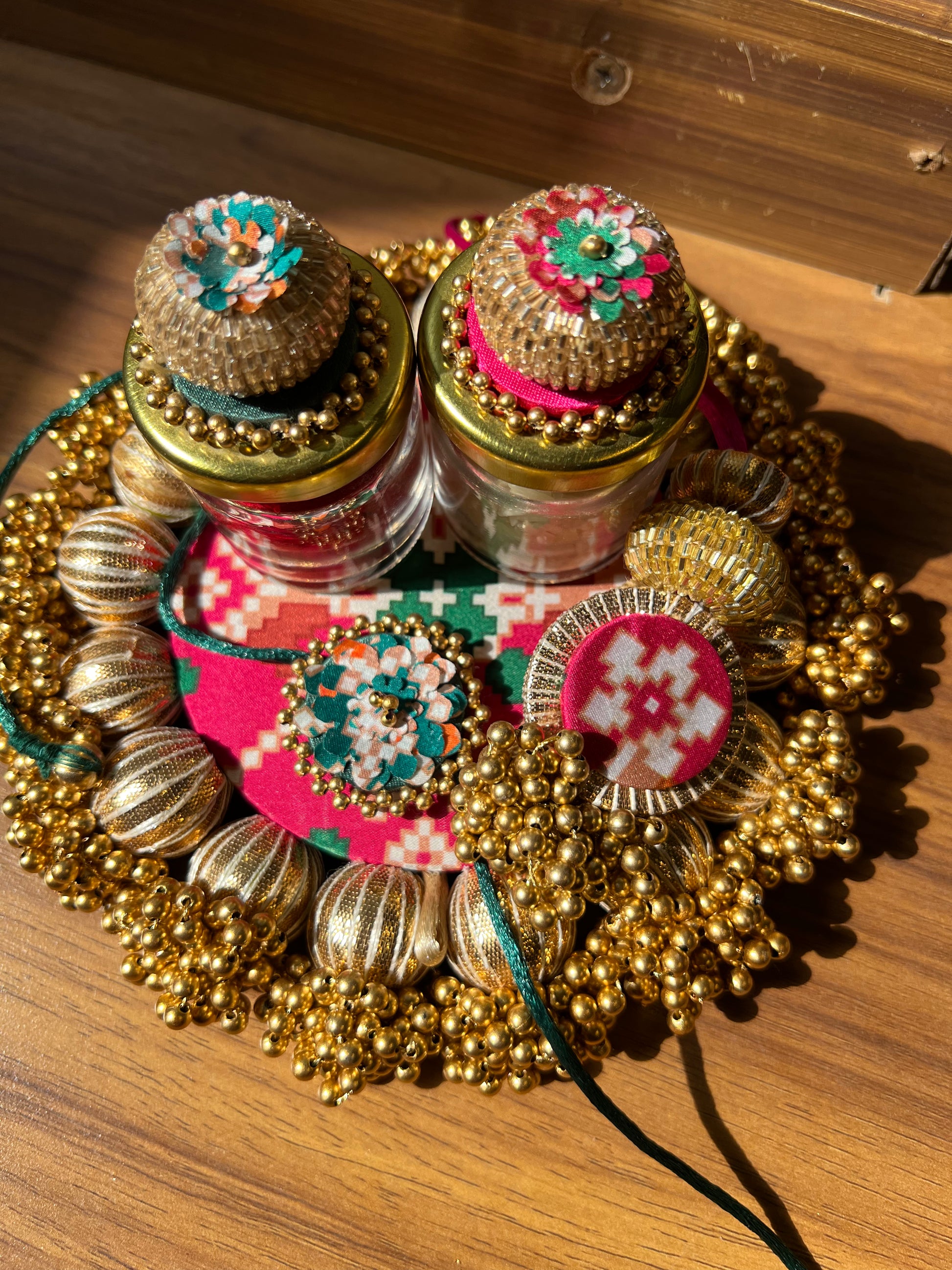 The little yet significant rituals of the Indian culture call for giving Shagun. For doing those rituals and for celebrating the essence of Shagun gifting, we have made these mini jars, decorated with mini beads and details. The jar as a whole is outsourced, the artisans at IBHI have made the toppers.