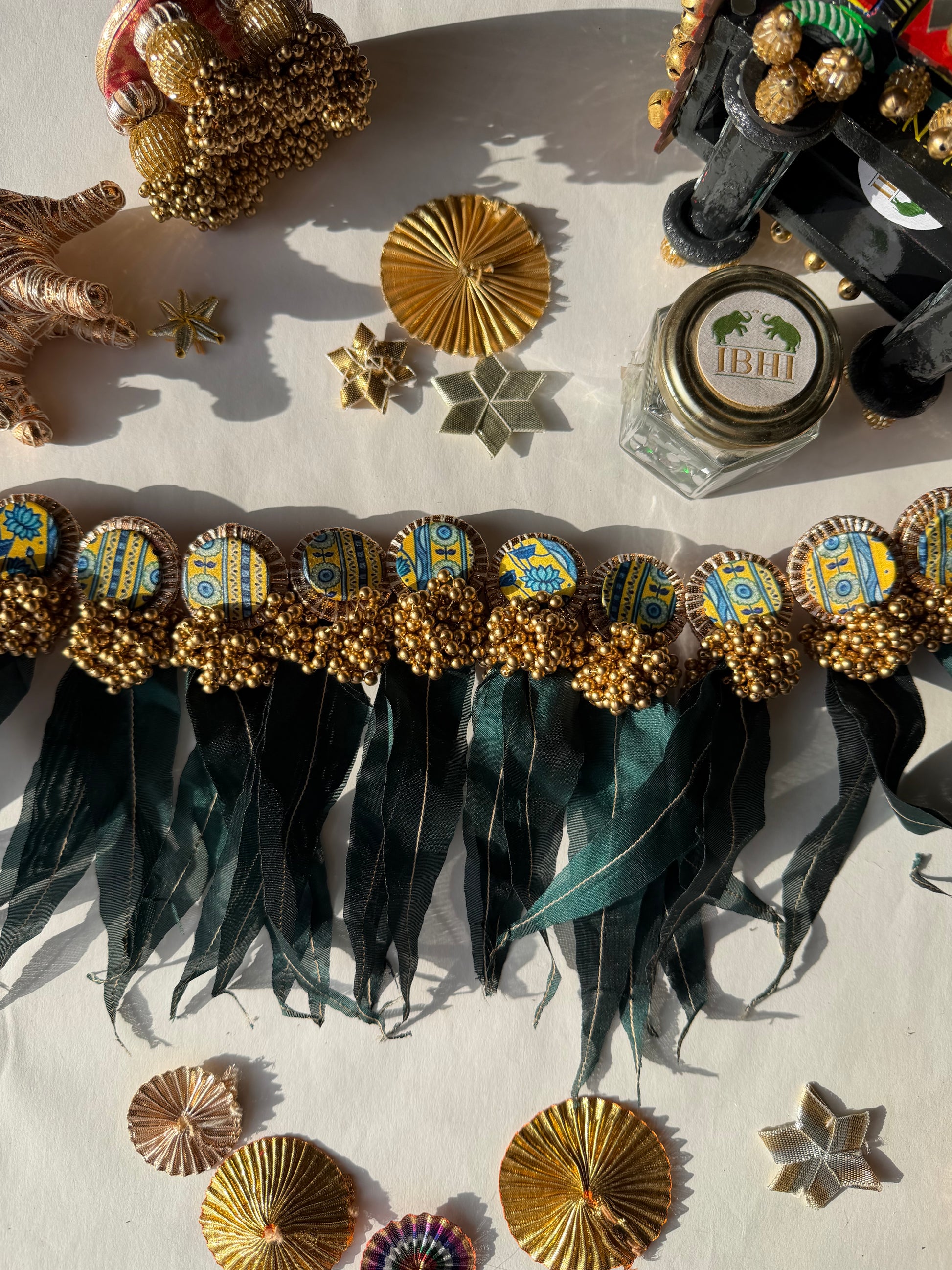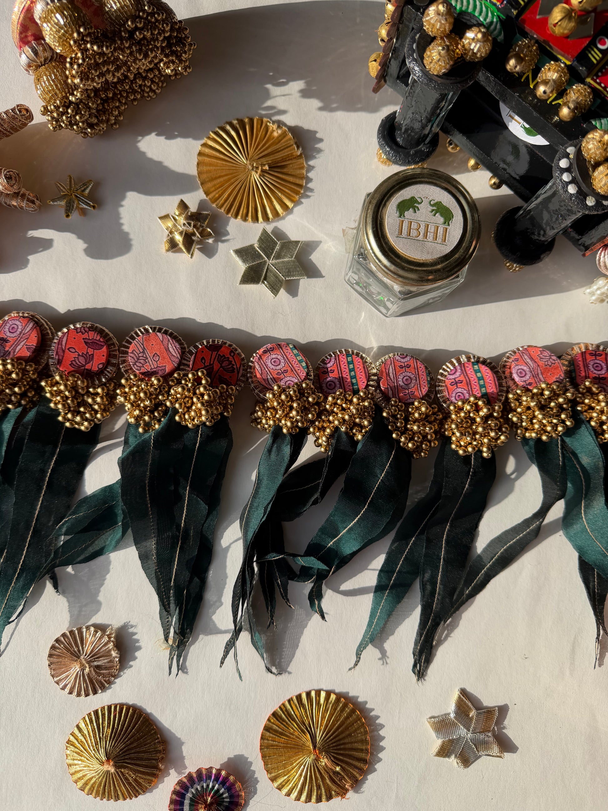 All IBHI products are meticulously handmade, involving various stages of different craftsmanship. Our creations are a blend of layers of high-quality fabric, Medium Density Fibre (MDF) for structure, and intricate beads and embellishments. The beads are meticulously connected using rolls of threads and hand stitches, adding to the uniqueness and charm of our products.