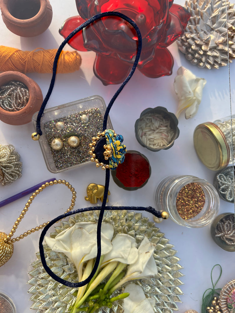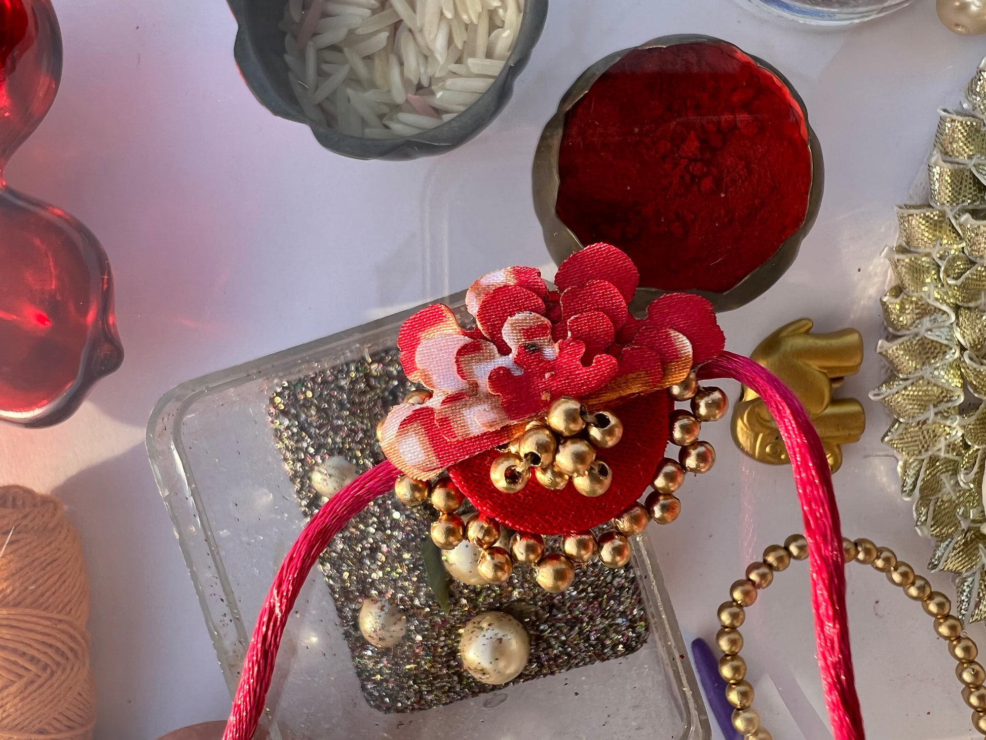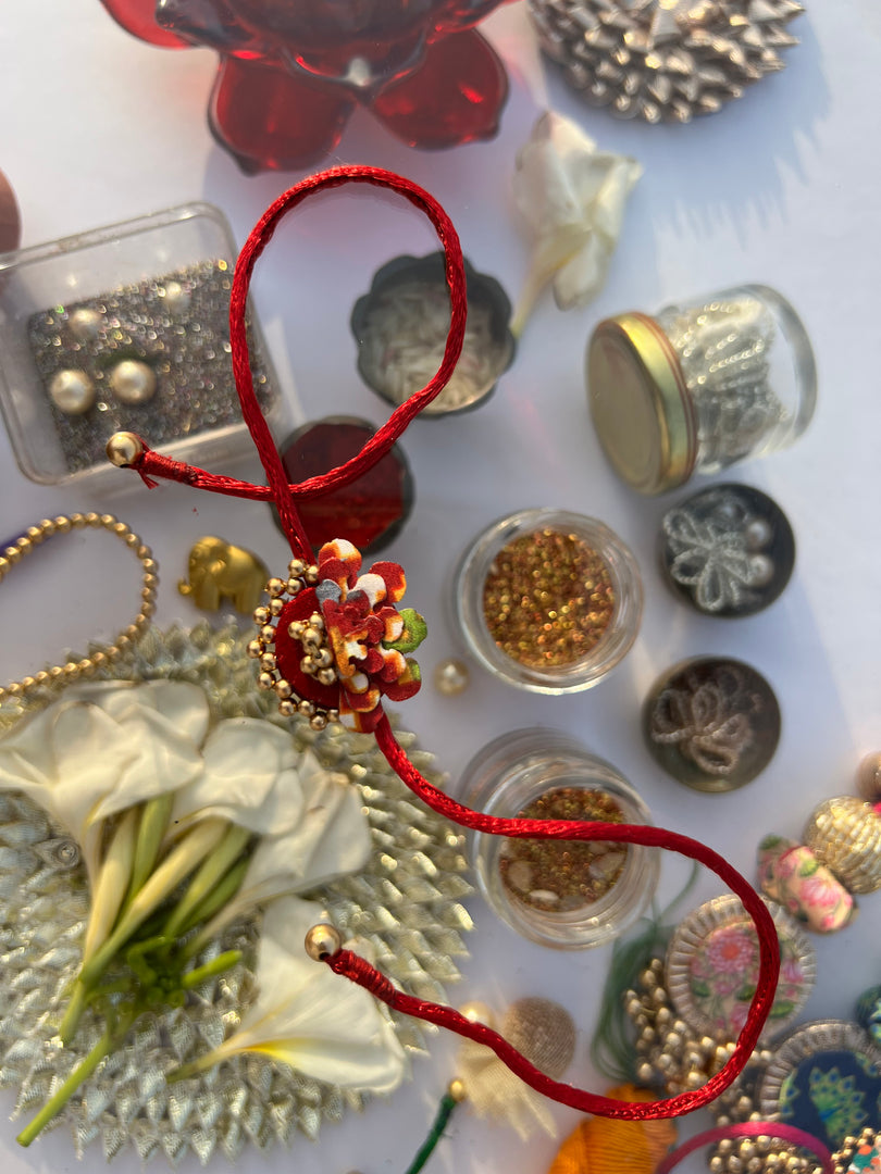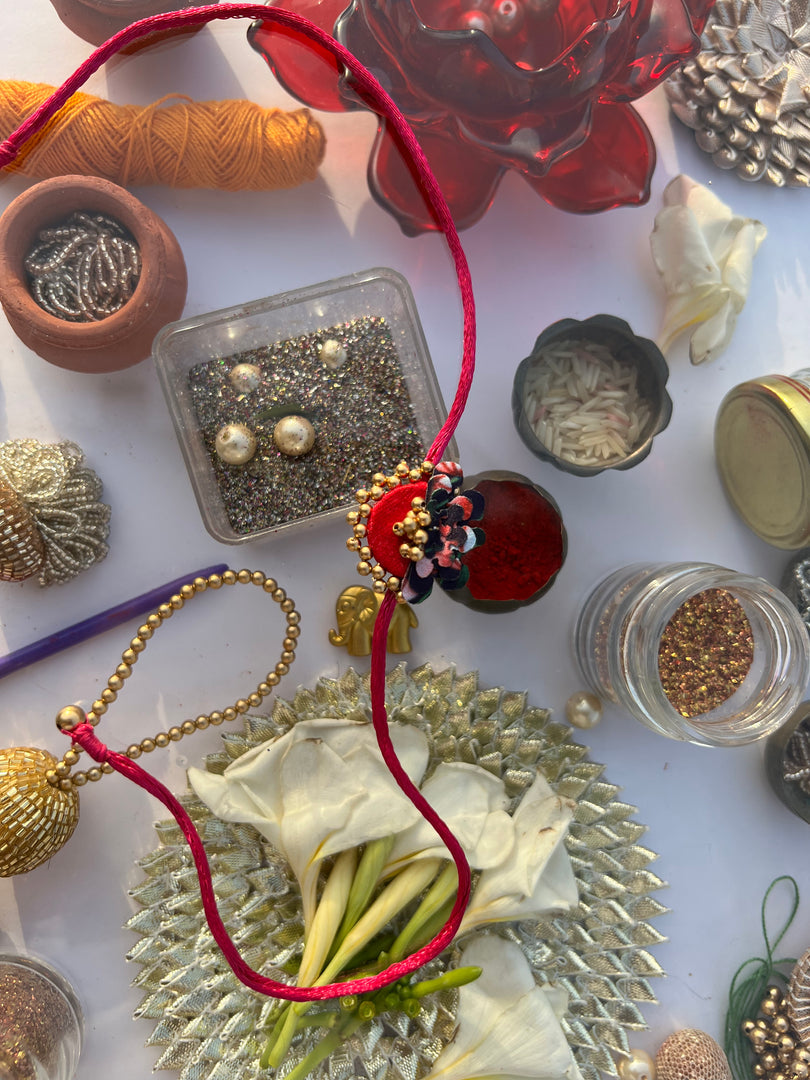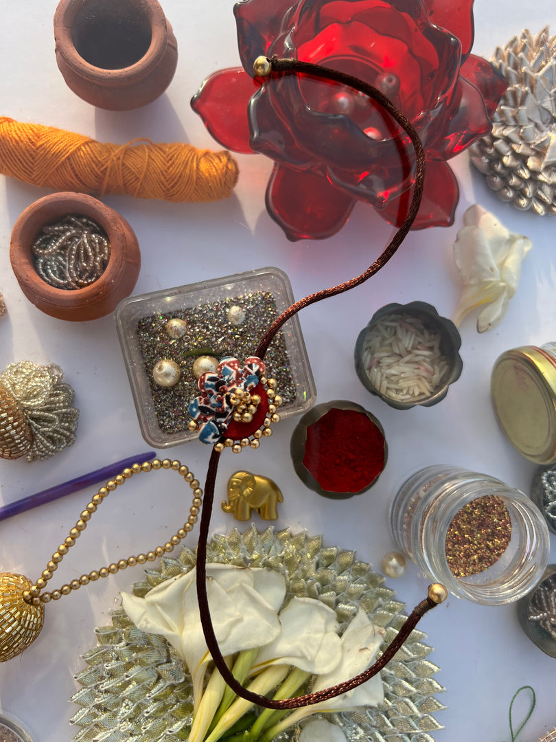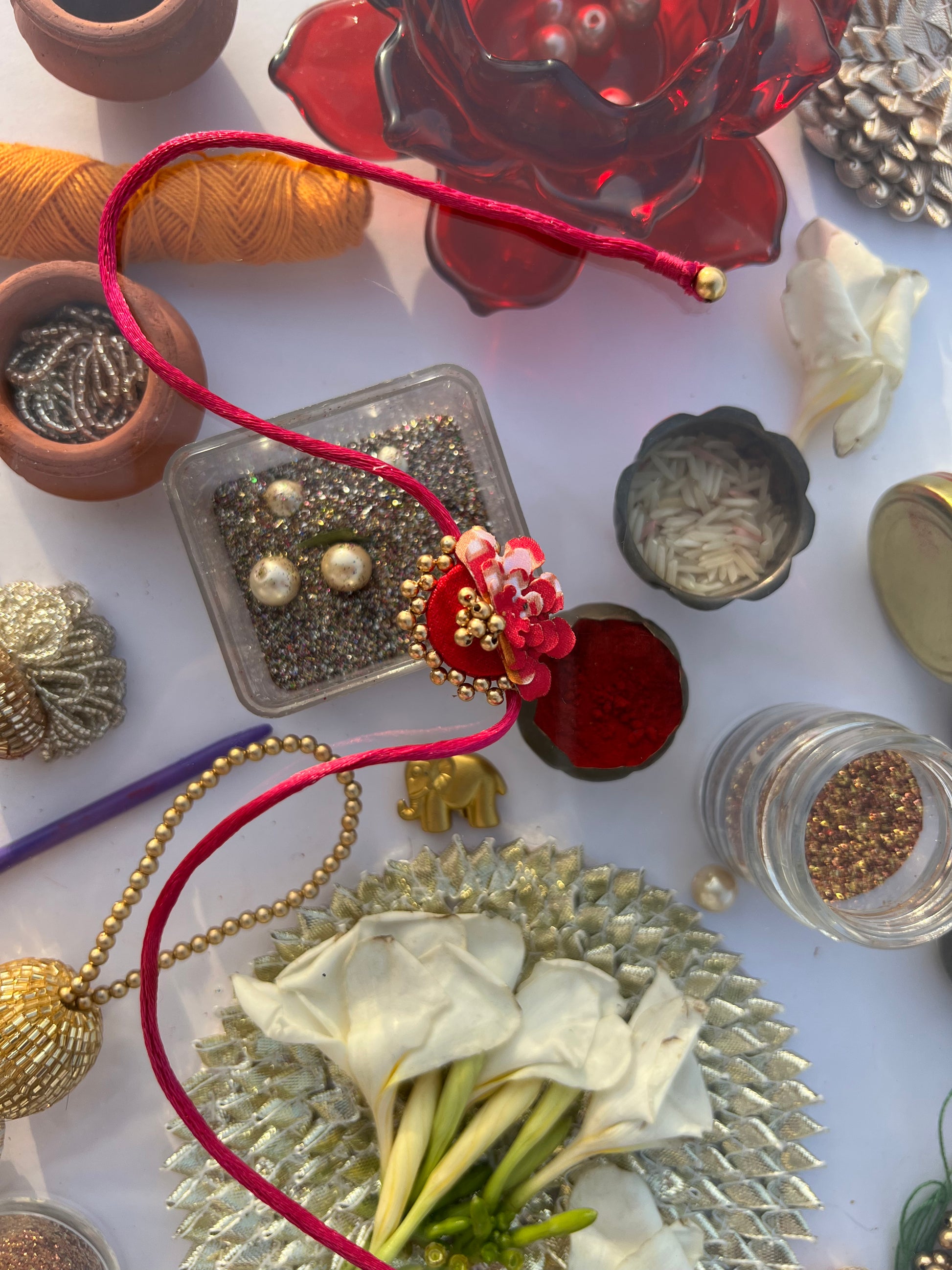 Pink Navratna Patola Half Pollen Enchanted Rakhi