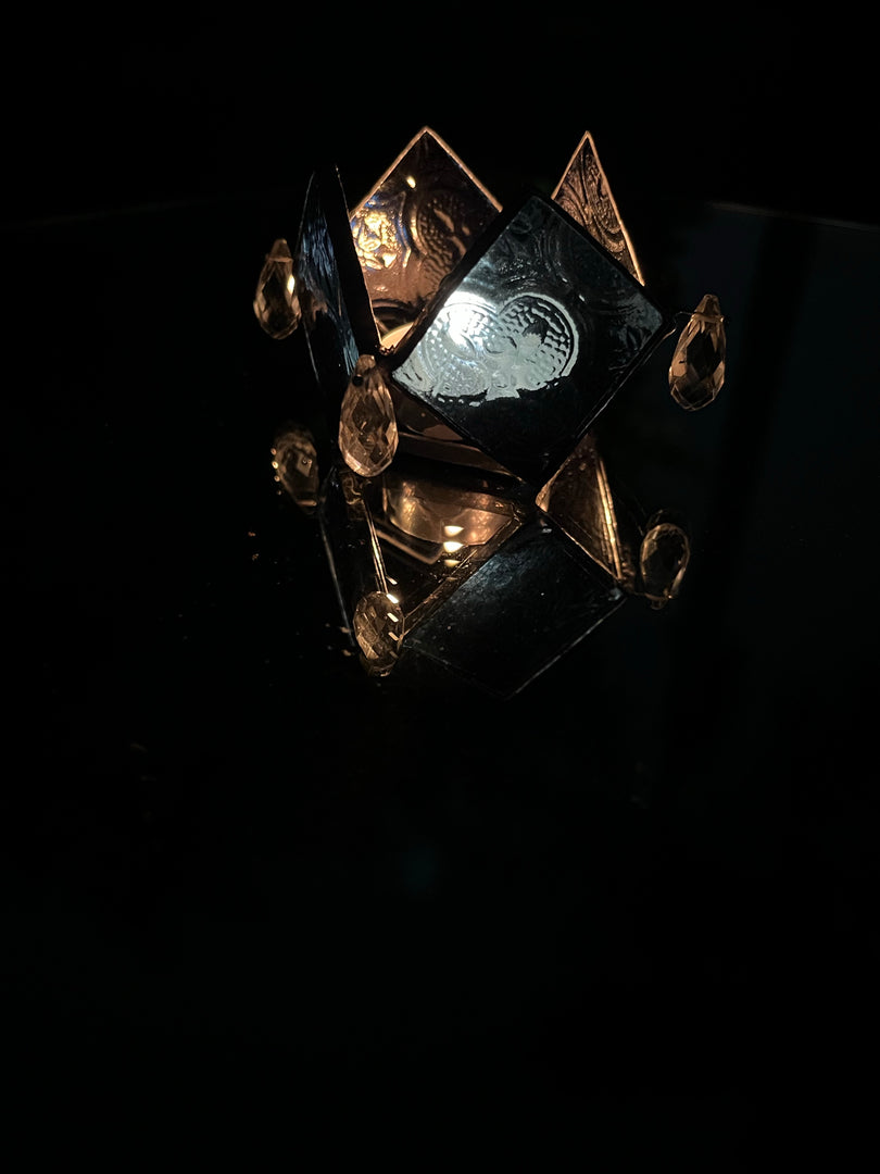 Material: Textured Stained-Glass with Austrian Briolette faceted tear-drop crystals.