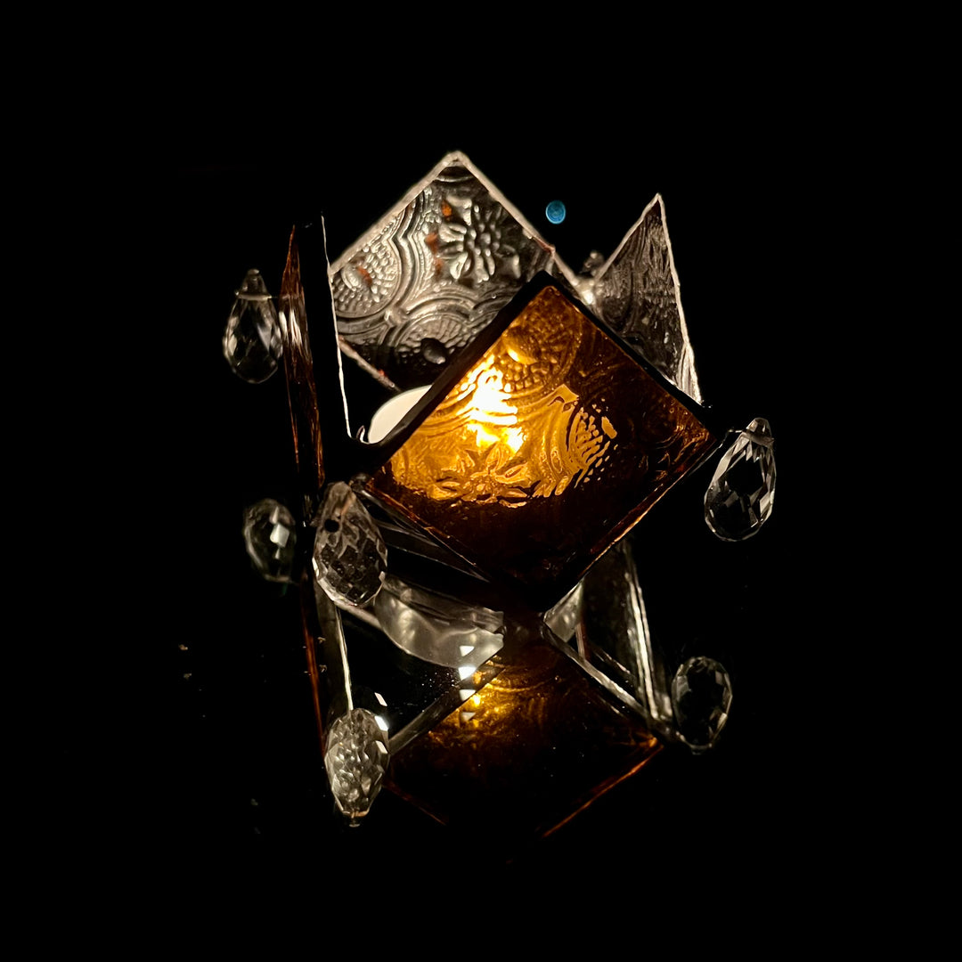 Rhombus Clear Glass Textured Diya