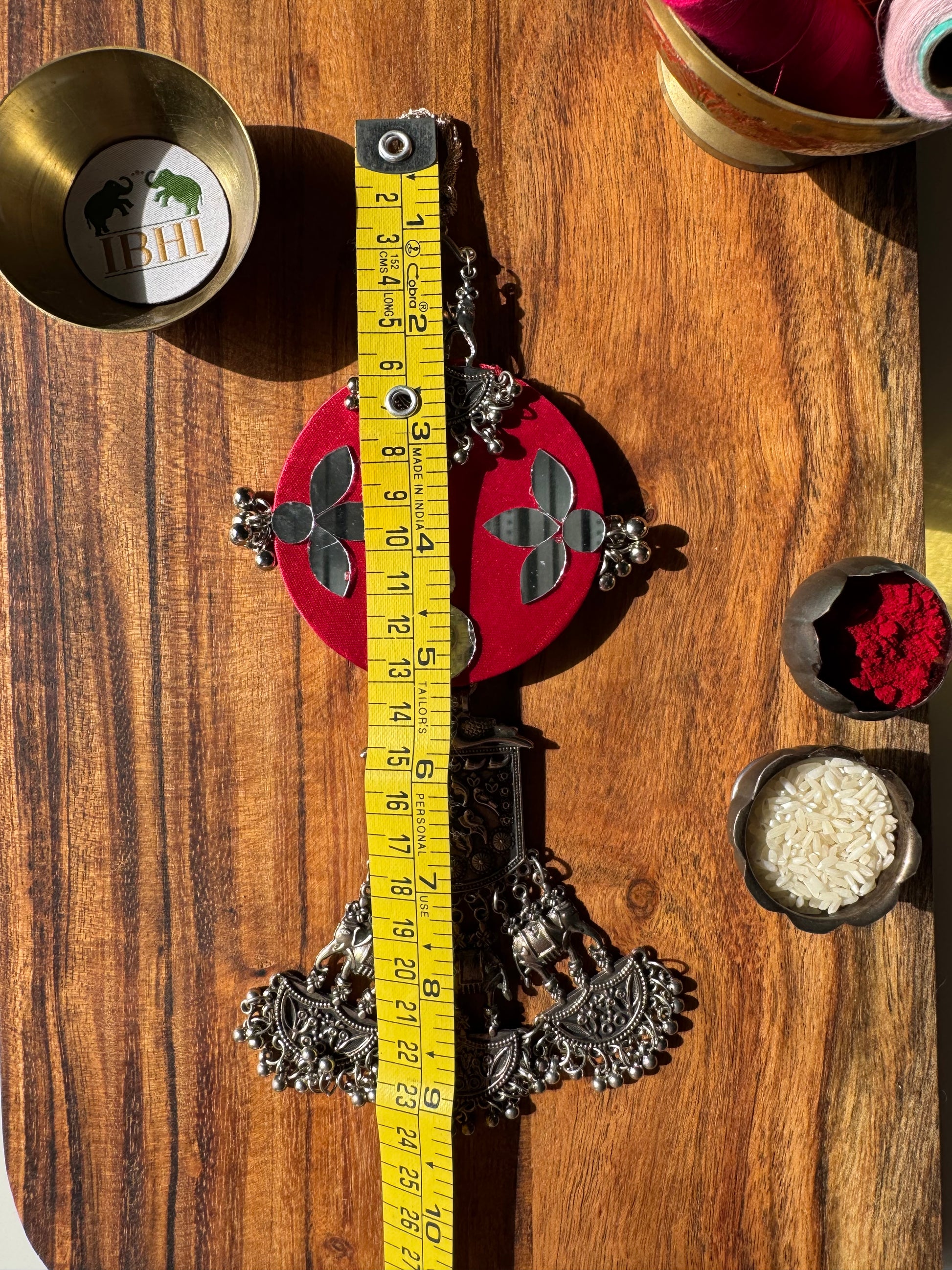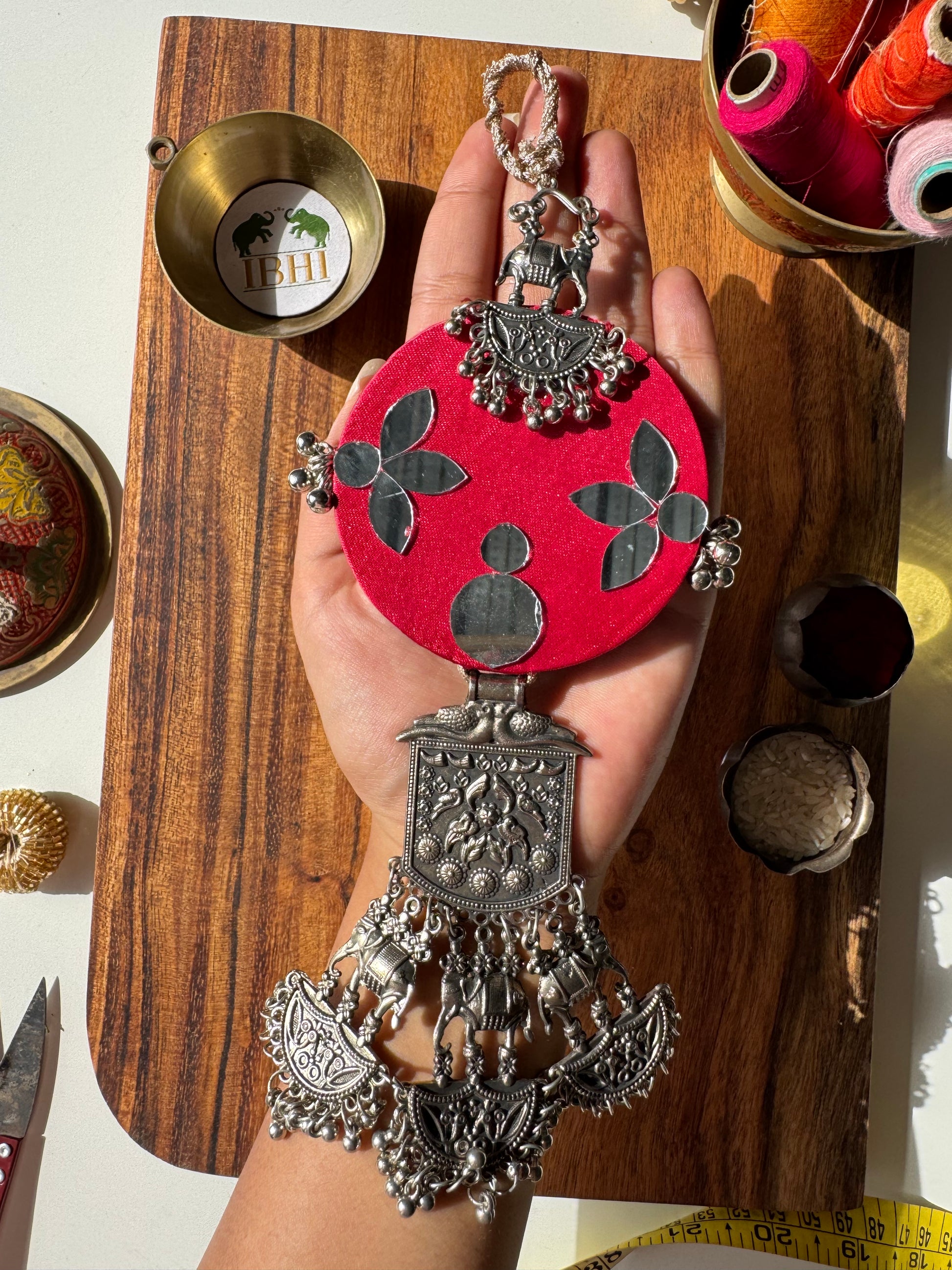All IBHI products are meticulously handmade, involving various stages of different craftsmanship. Our creations are a blend of layers of high-quality fabric, Medium Density Fibre (MDF) for structure, and intricate beads and embellishments. The beads are meticulously connected using rolls of threads and hand stitches, adding to the uniqueness and charm of our products.