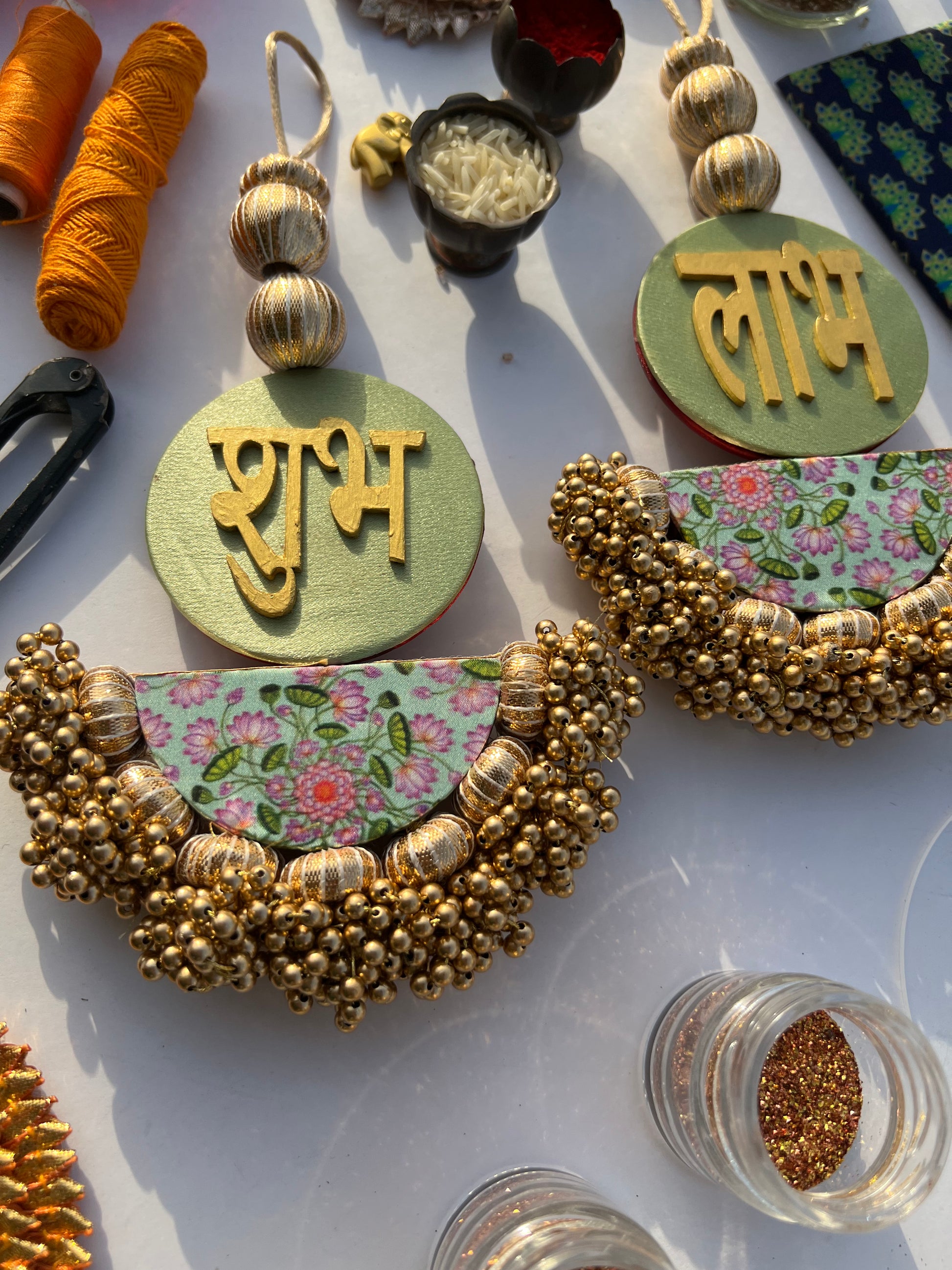 All IBHI products are meticulously handmade, involving various stages of different craftsmanship. Our creations are a blend of layers of high-quality fabric, Medium Density Fibre (MDF) for structure, and intricate beads and embellishments. The beads are meticulously connected using rolls of threads and hand stitches, adding to the uniqueness and charm of our products.