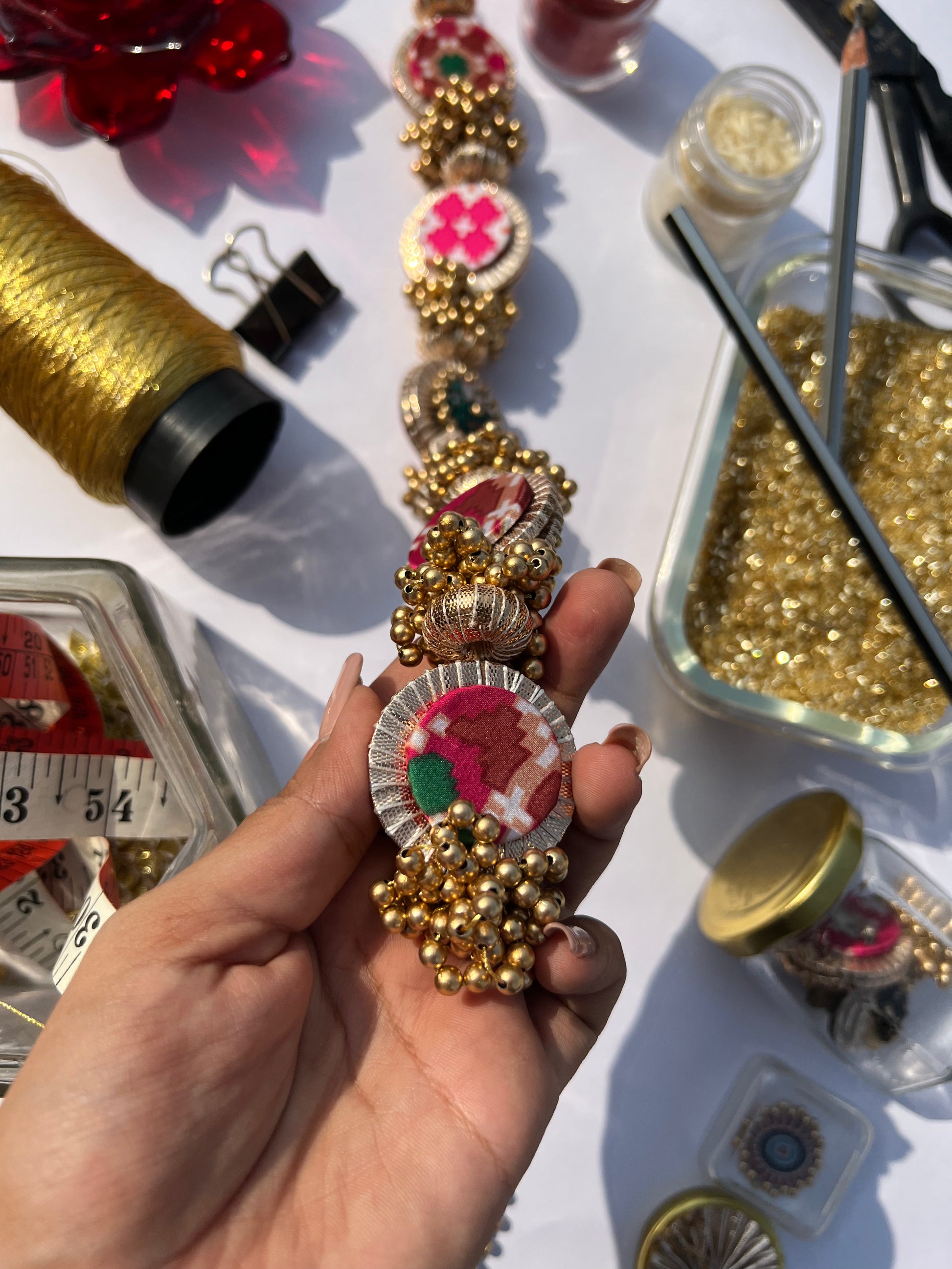 All IBHI products are meticulously handmade, involving various stages of different craftsmanship. Our creations are a blend of layers of high-quality fabric, Medium Density Fibre (MDF) for structure, and intricate beads and embellishments. The beads are meticulously connected using rolls of threads and hand stitches, adding to the uniqueness and charm of our products.