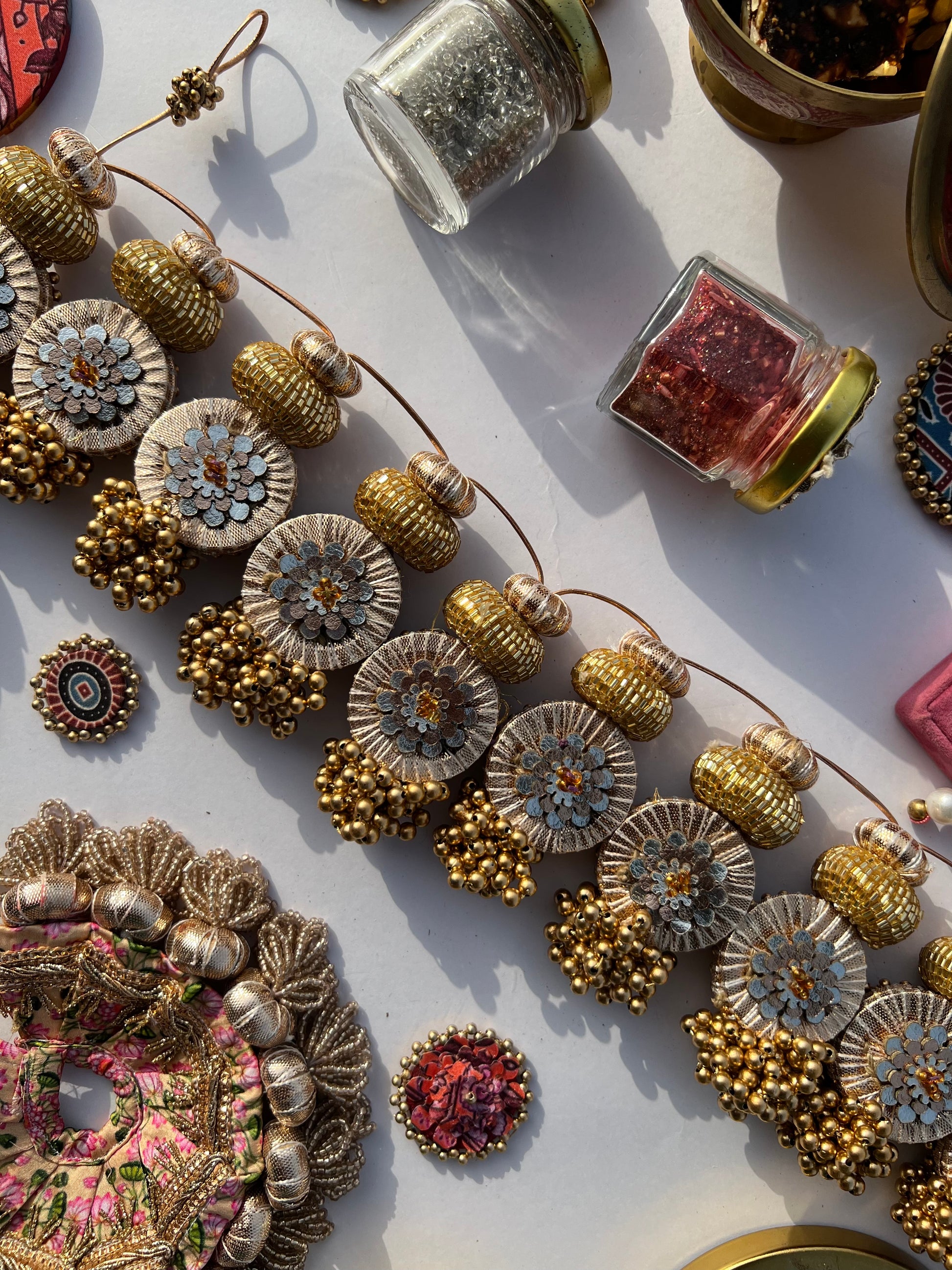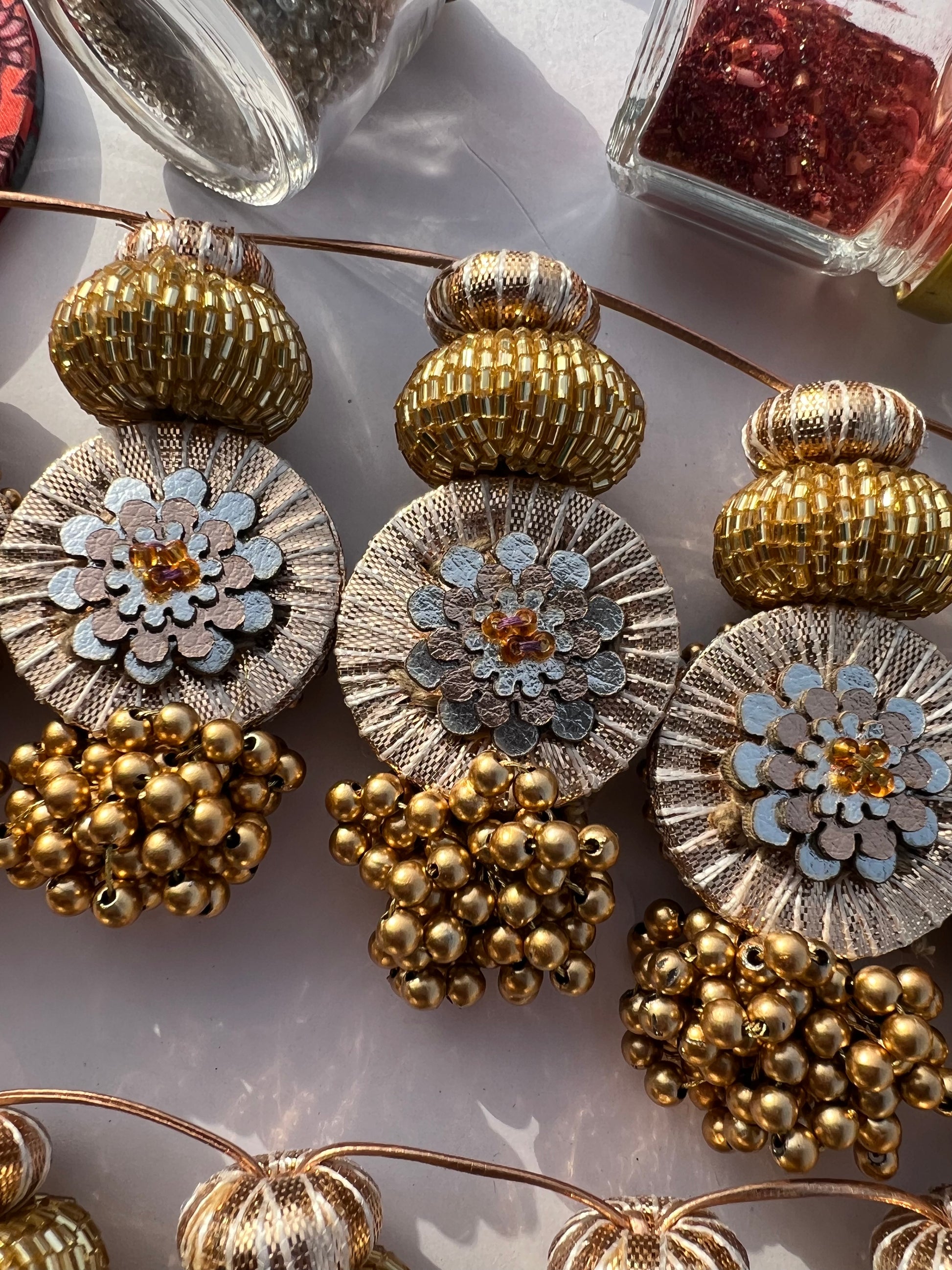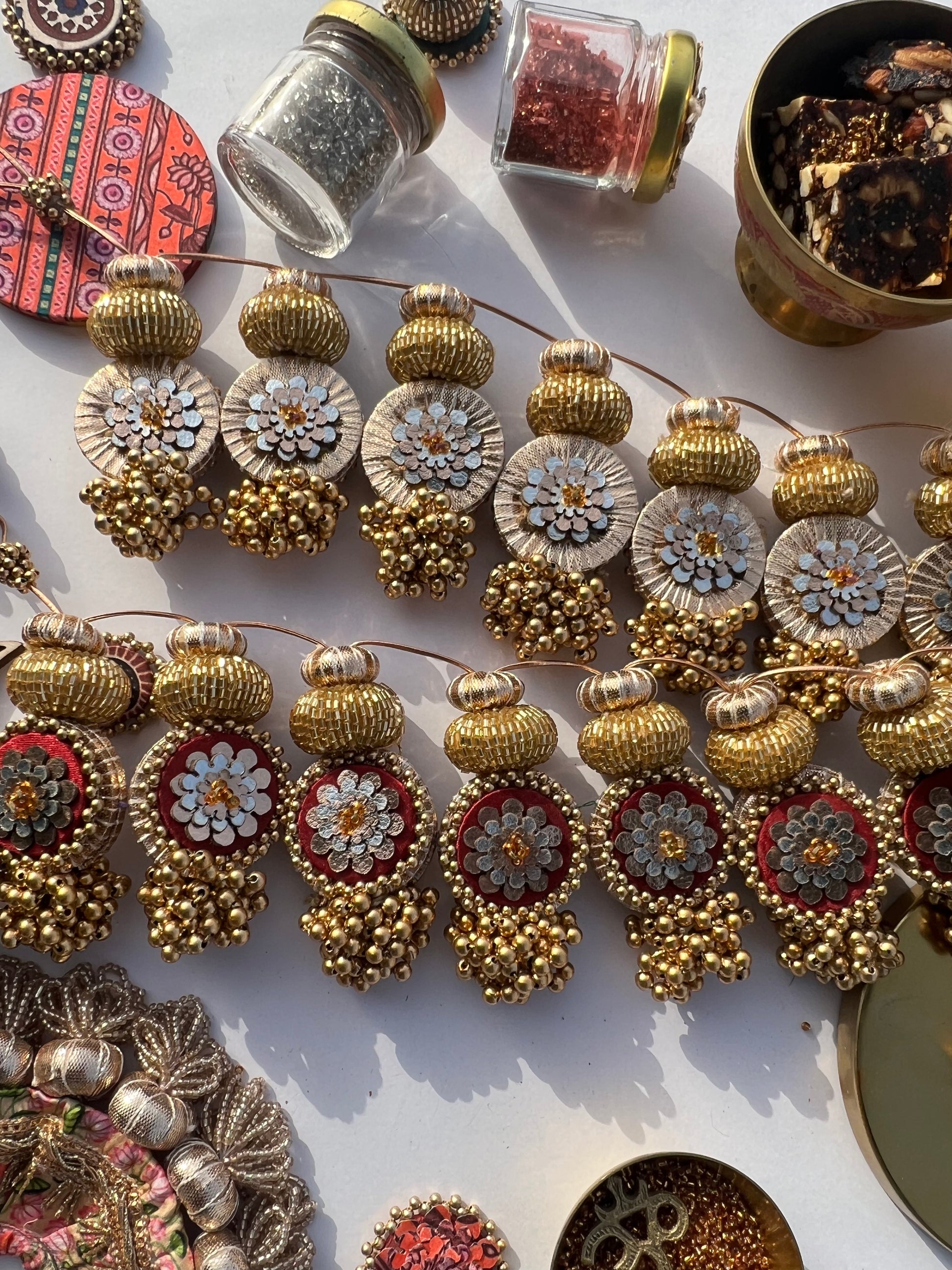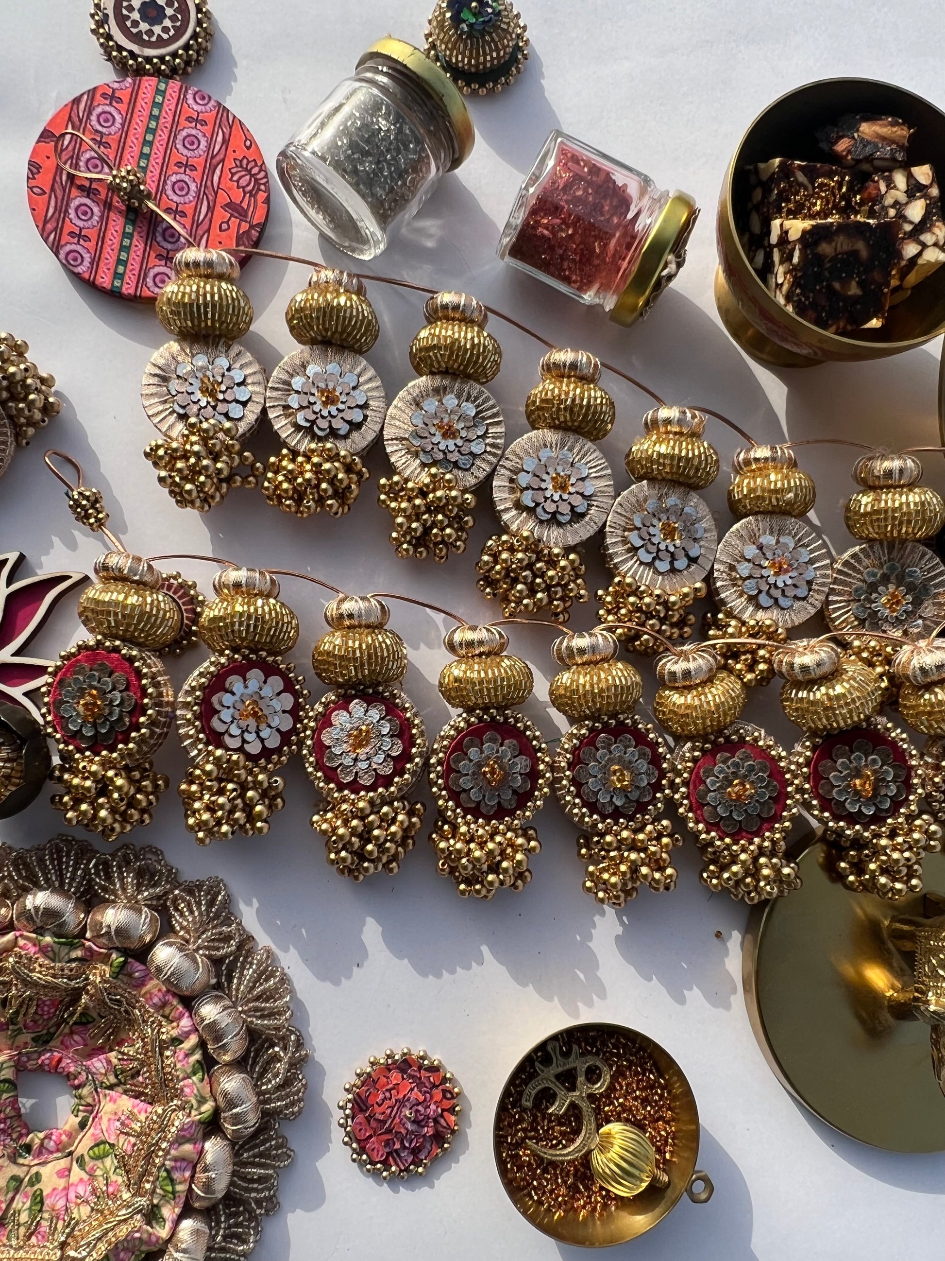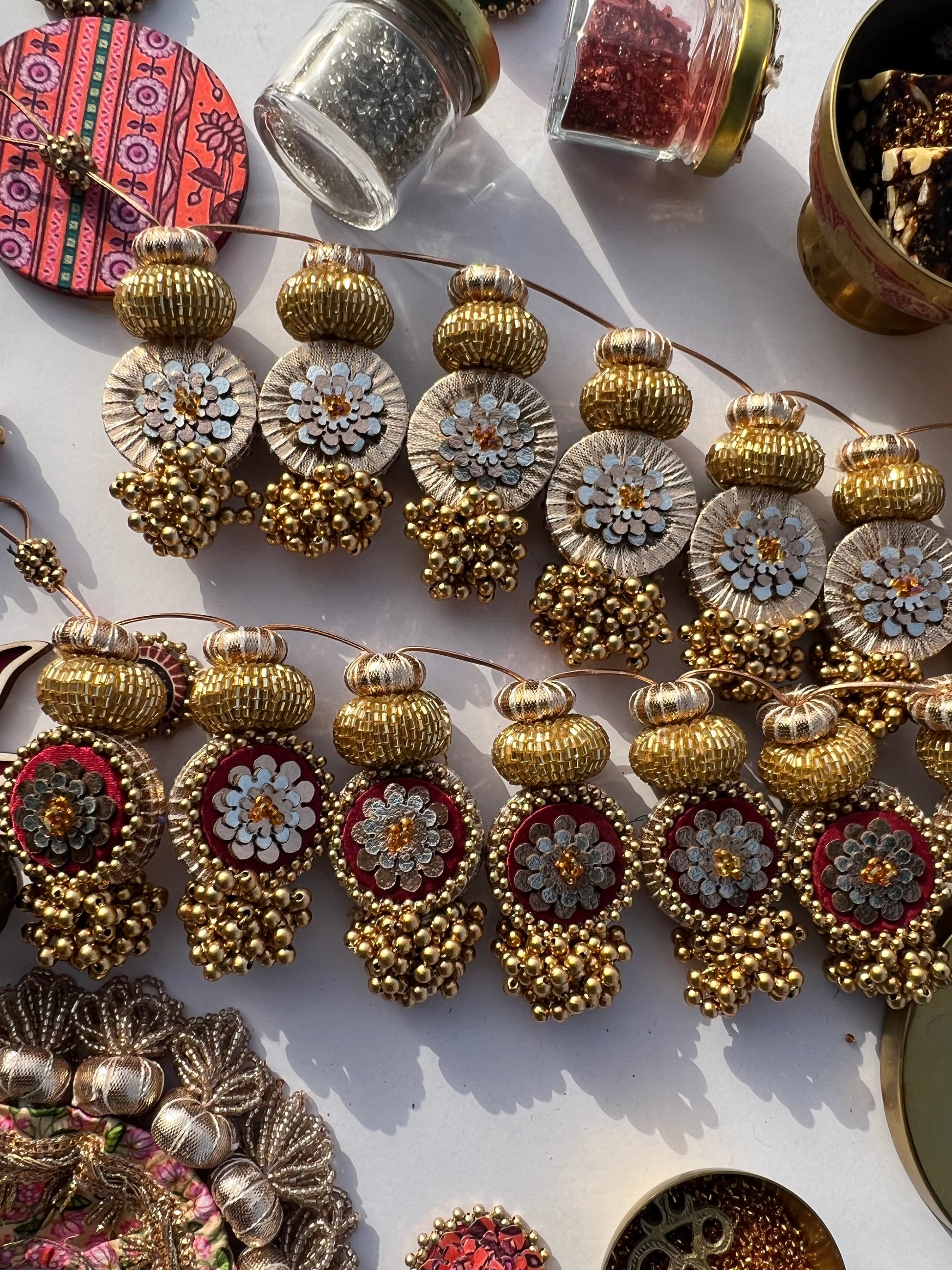 All IBHI products are meticulously handmade, involving various stages of different craftsmanship. Our creations are a blend of layers of high-quality fabric, Medium Density Fibre (MDF) for structure, and intricate beads and embellishments. The beads are meticulously connected using rolls of threads and hand stitches, adding to the uniqueness and charm of our products.