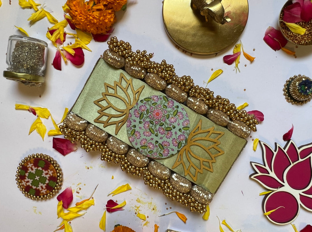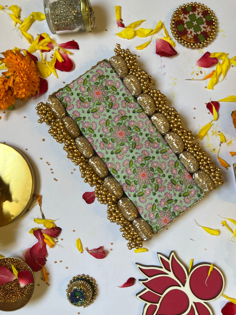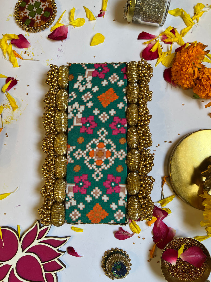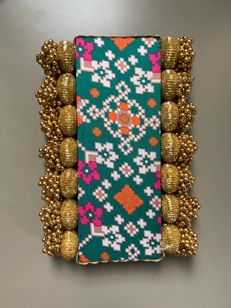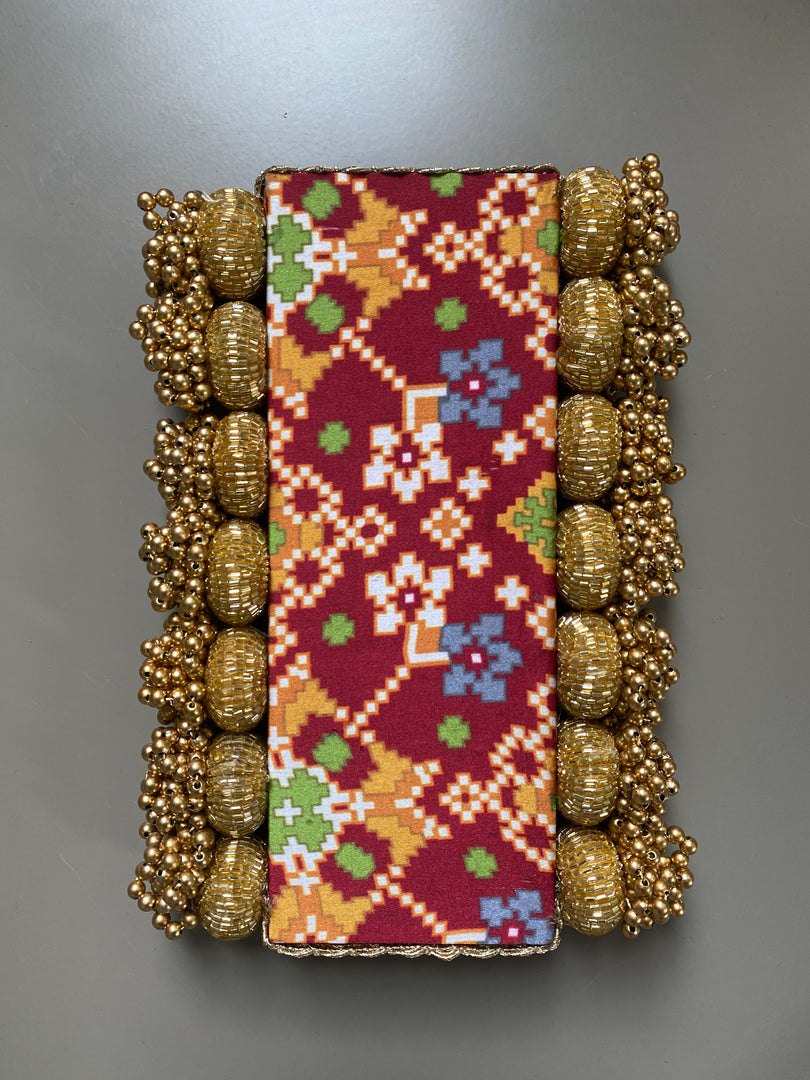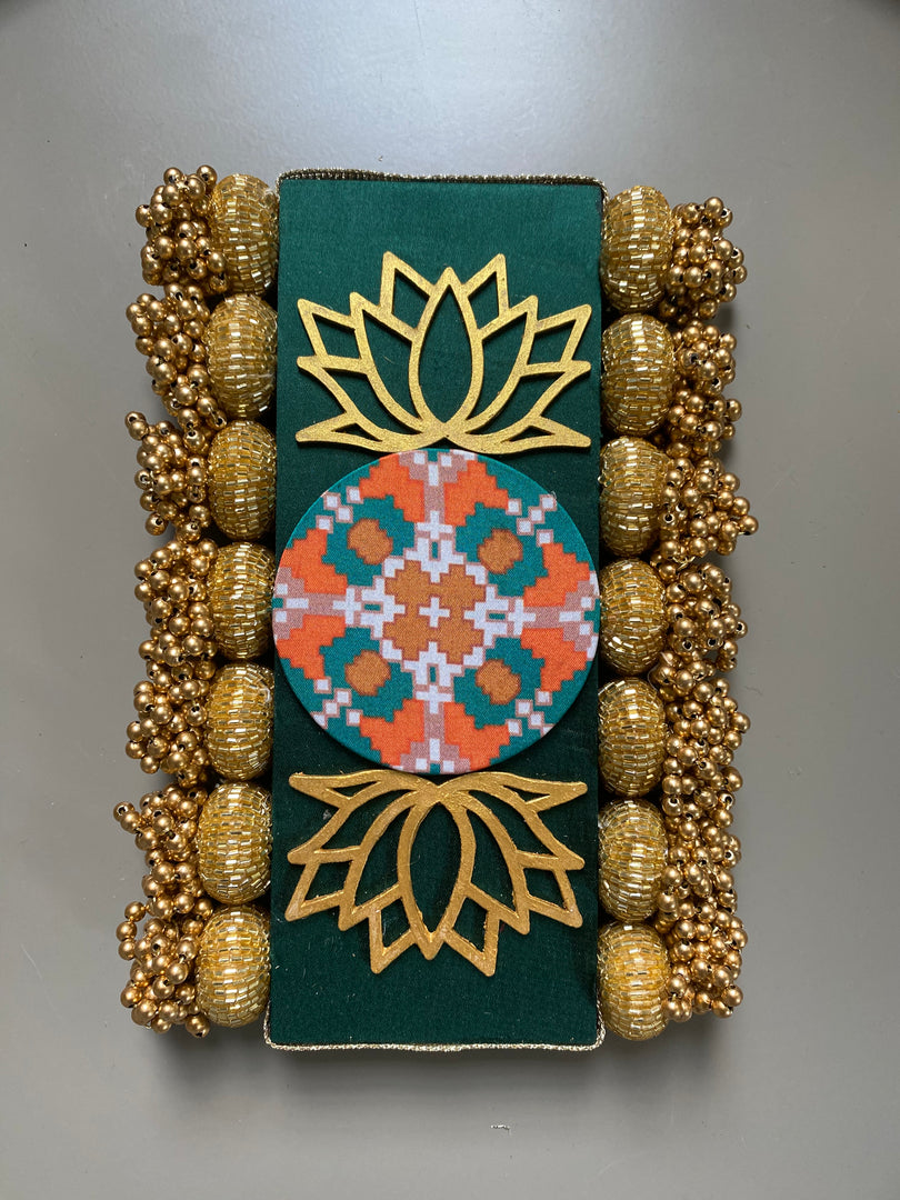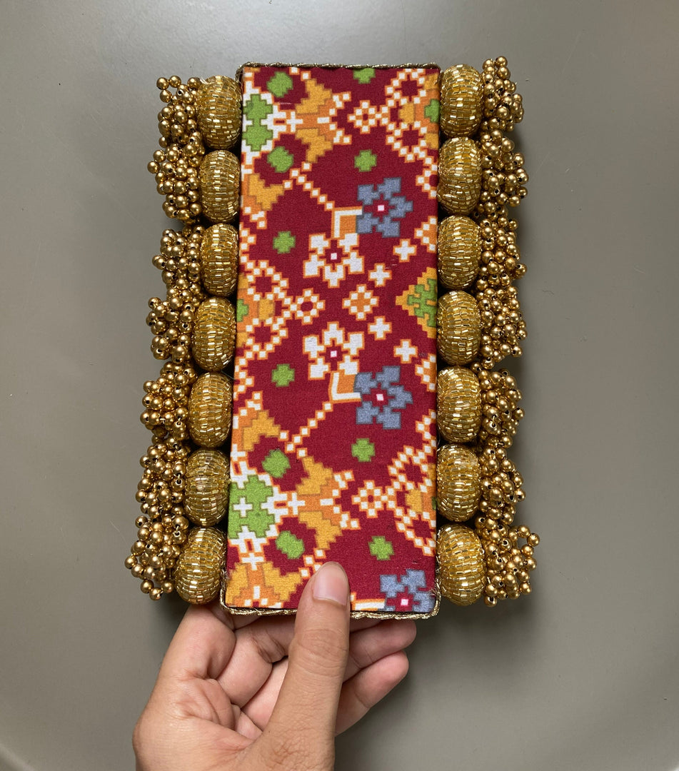 All IBHI products are meticulously handmade, involving various stages of different craftsmanship. Our creations are a blend of layers of high-quality fabric, Medium Density Fibre (MDF) for structure, and intricate beads and embellishments. The beads are meticulously connected using rolls of threads and hand stitches, adding to the uniqueness and charm of our products.