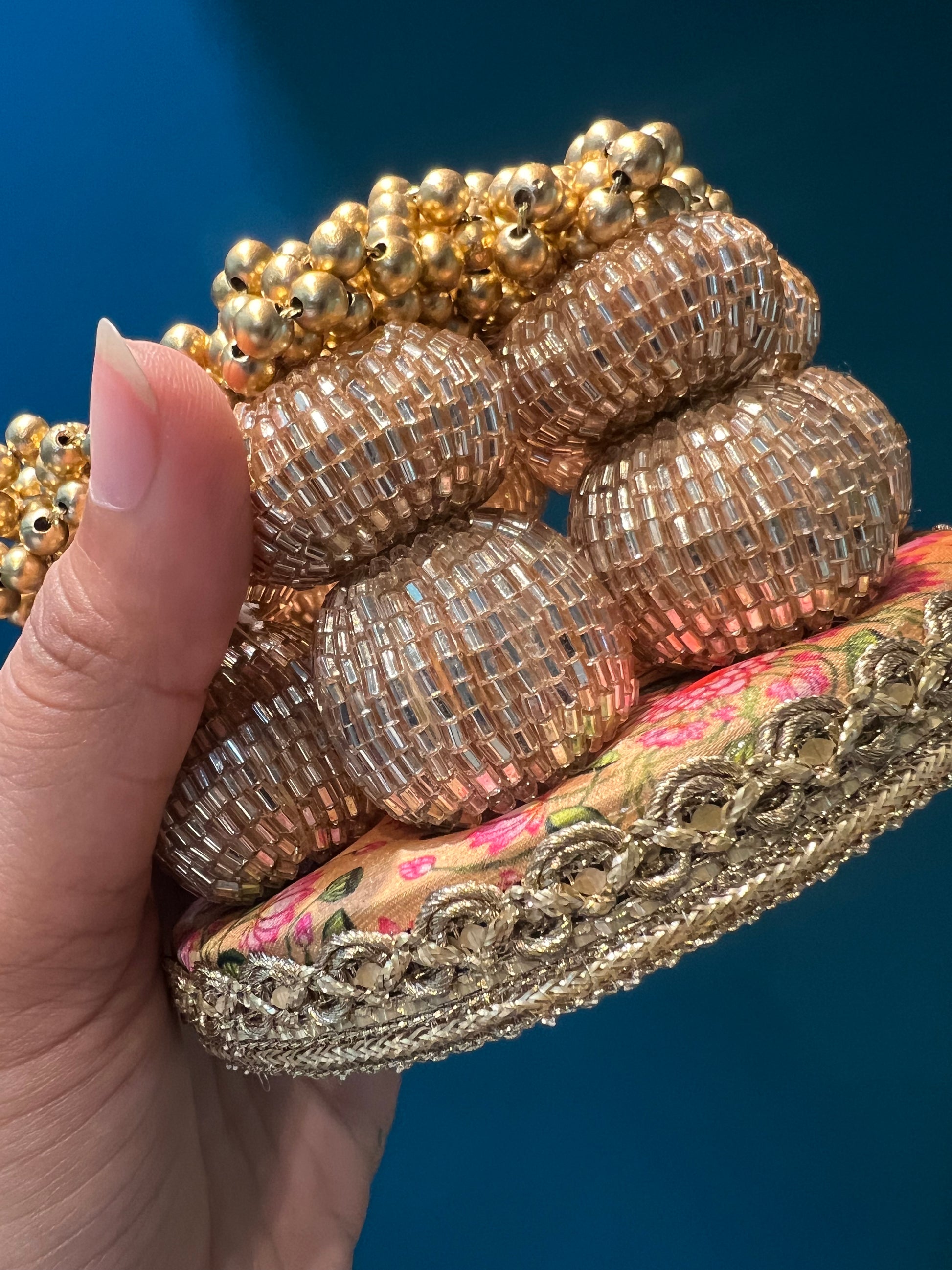 All IBHI products are meticulously handmade, involving various stages of different craftsmanship. Our creations are a blend of layers of high-quality fabric, Medium Density Fibre (MDF) for structure, and intricate beads and embellishments. The beads are meticulously connected using rolls of threads and hand stitches, adding to the uniqueness and charm of our products.