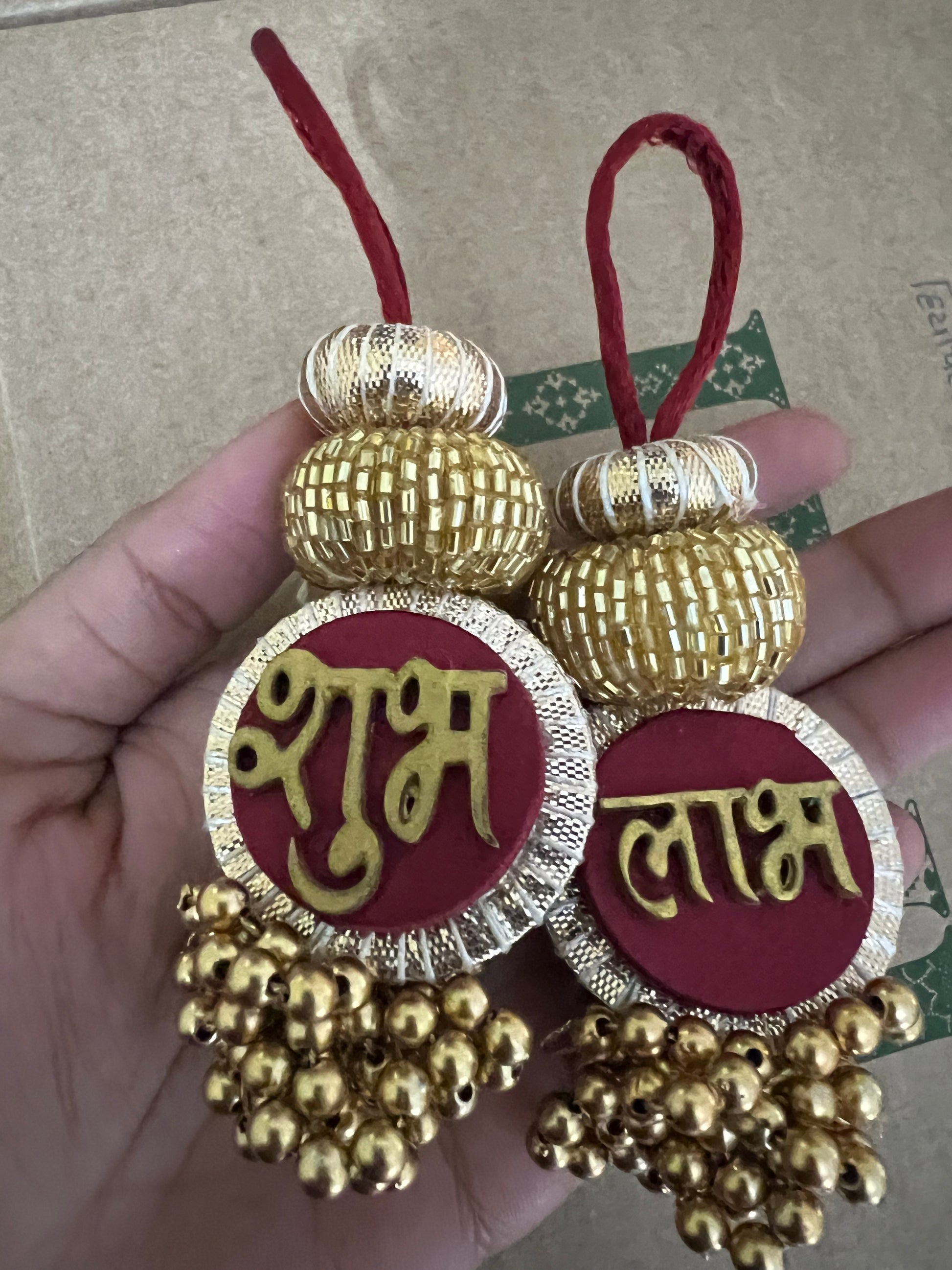 🌼 Aesthetic Elegance: Our Mini Shubh Labh Hangings have undergone a meticulous design process to ensure their visual appeal. With each tassel measuring 3.5 inches in length and a maximum width of 1.5 inches, these hangings perfectly capture the essence of the "Shubh Labh" symbol in a compact and tasteful form.