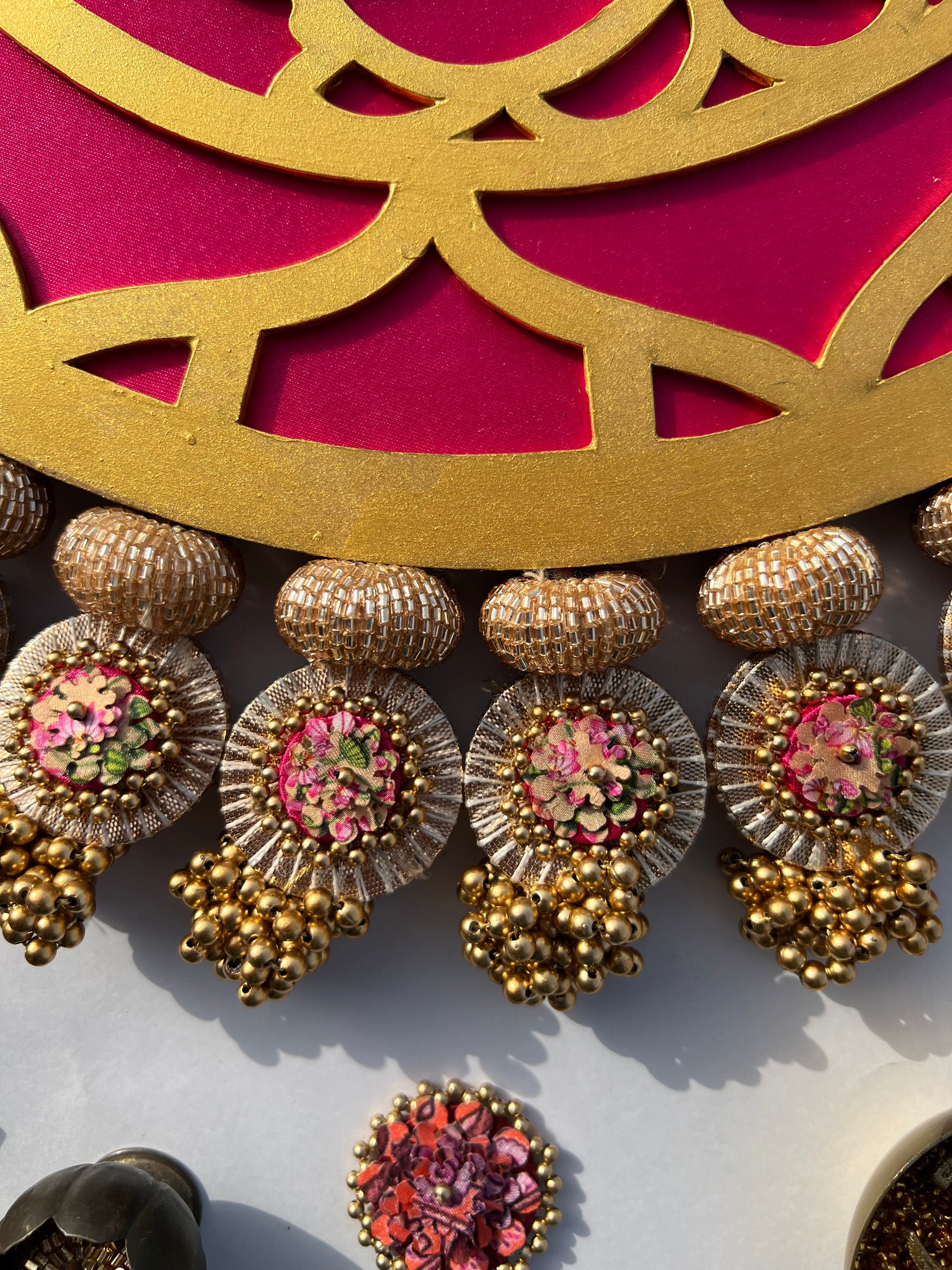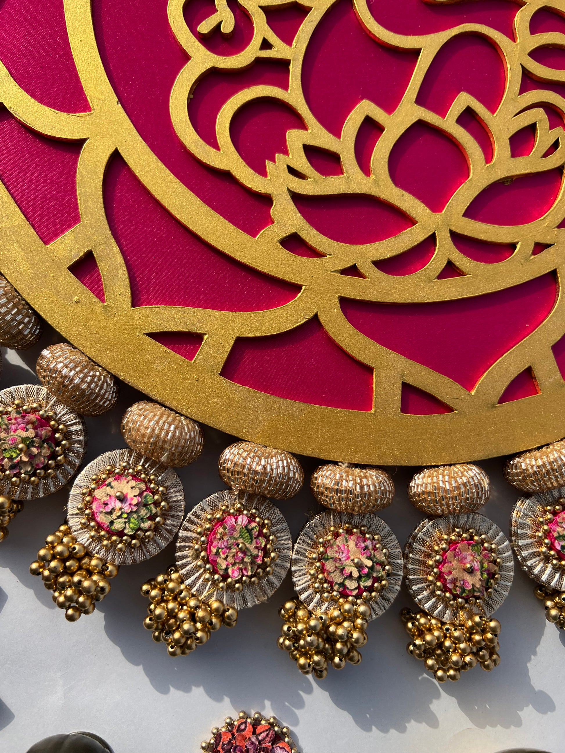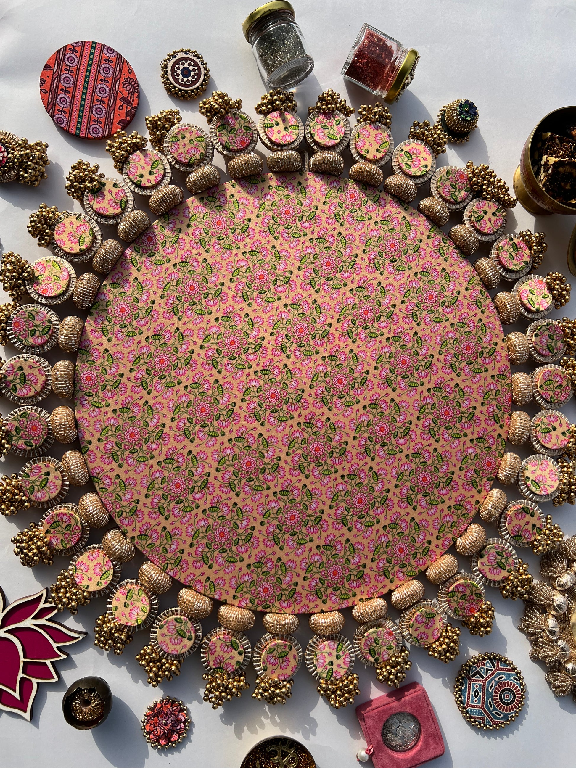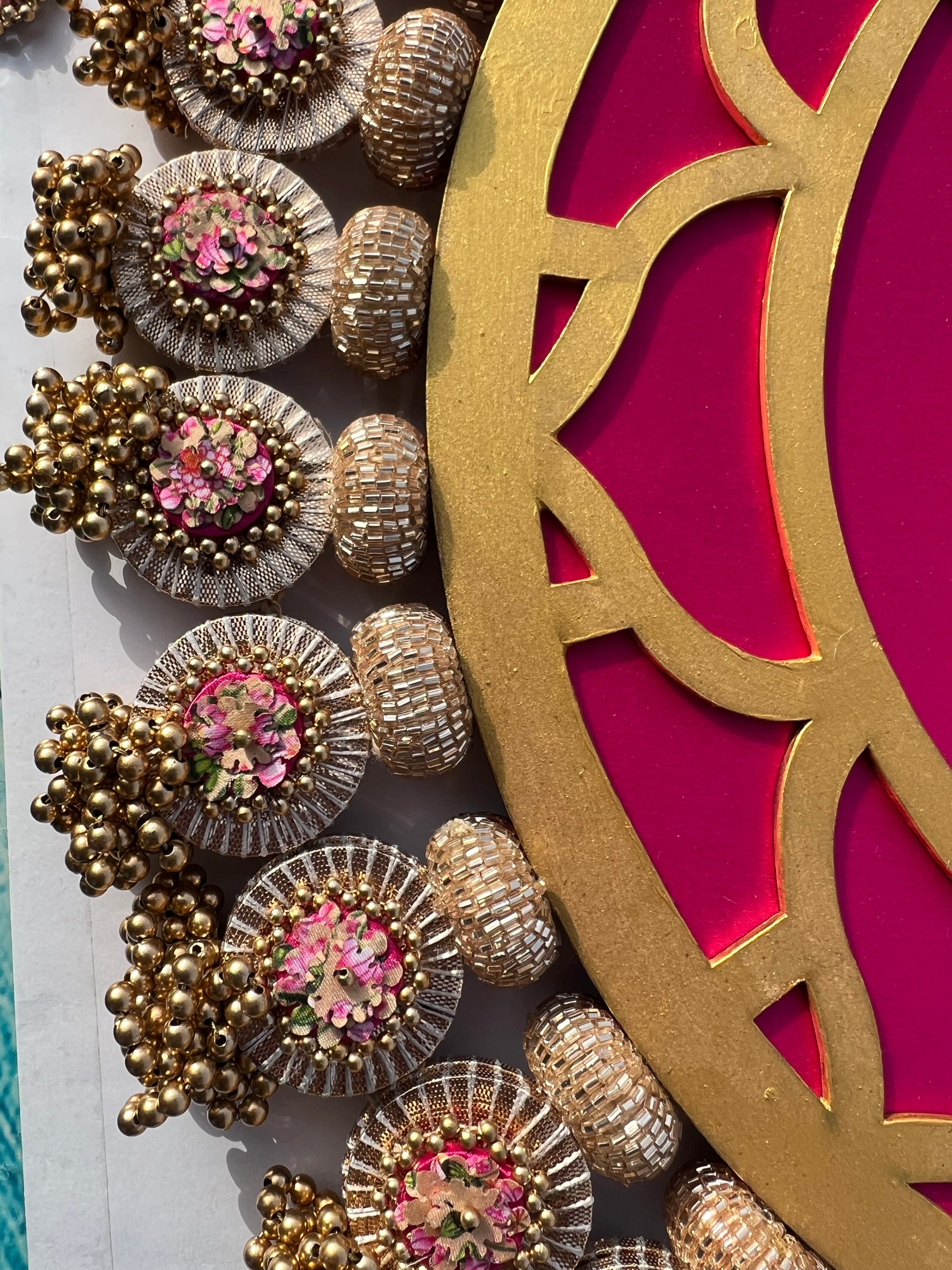 IBHI has crafted a masterpiece – an intricately cut Ganesh motif rangoli adorned with our signature lumba tassels. The rangoli boasts a basal diameter of 12 inches, and with the elegant tassels, it extends to a graceful 15 inches.