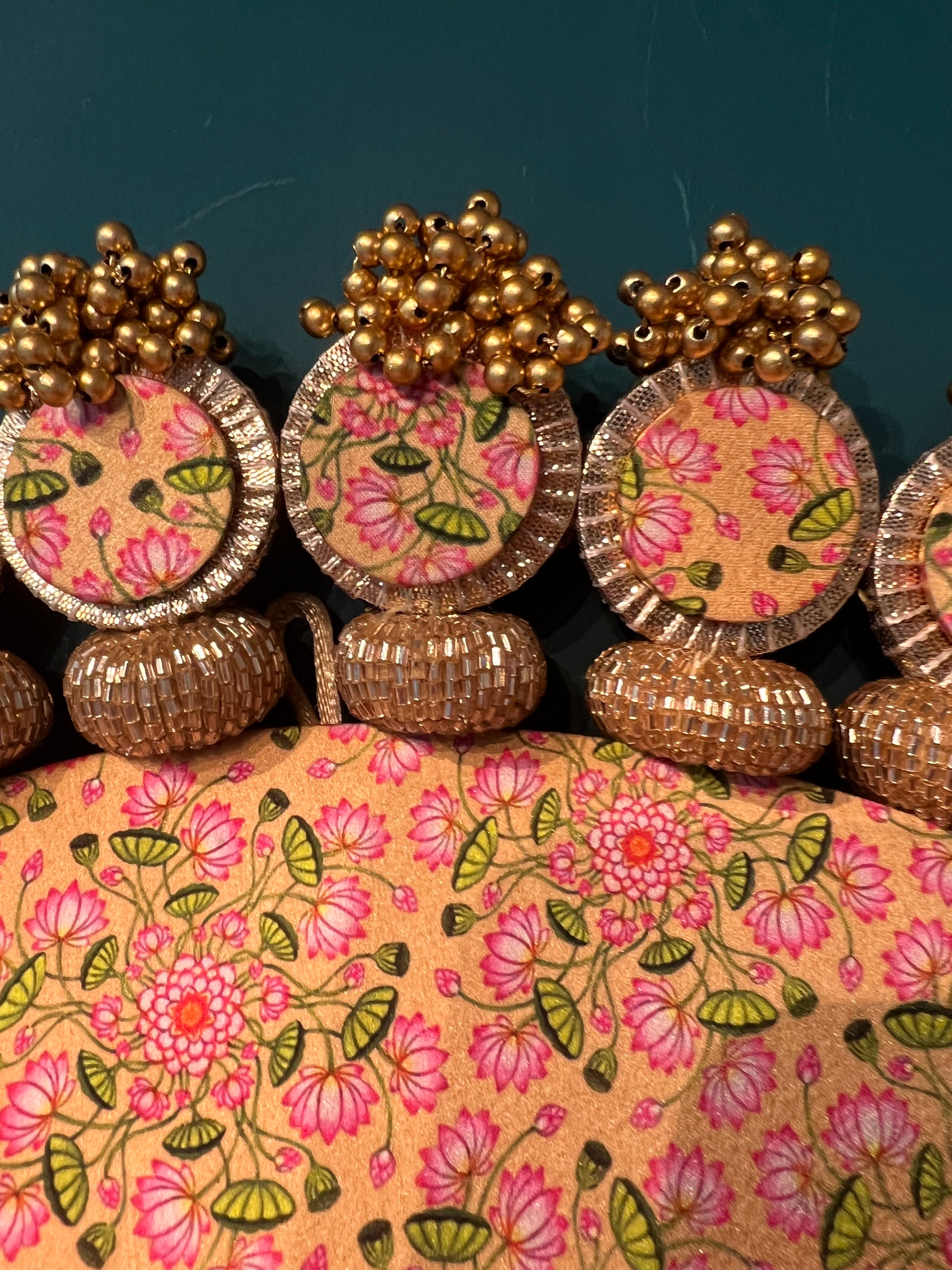 Handle your IBHI products delicately to preserve their beauty and longevity. Display them in a safe place where they can be admired. No amount of sunlight will affect the quality and finish of the product. The fabrics used are digitally printed using high-grade inks and pigments, making it sunshine friendly. Store them in a dry place to avoid moisture damage. To clean, gently dust with a soft cloth or a soft-bristle brush, and avoid using harsh chemicals or water directly on the fabric and embellishments.