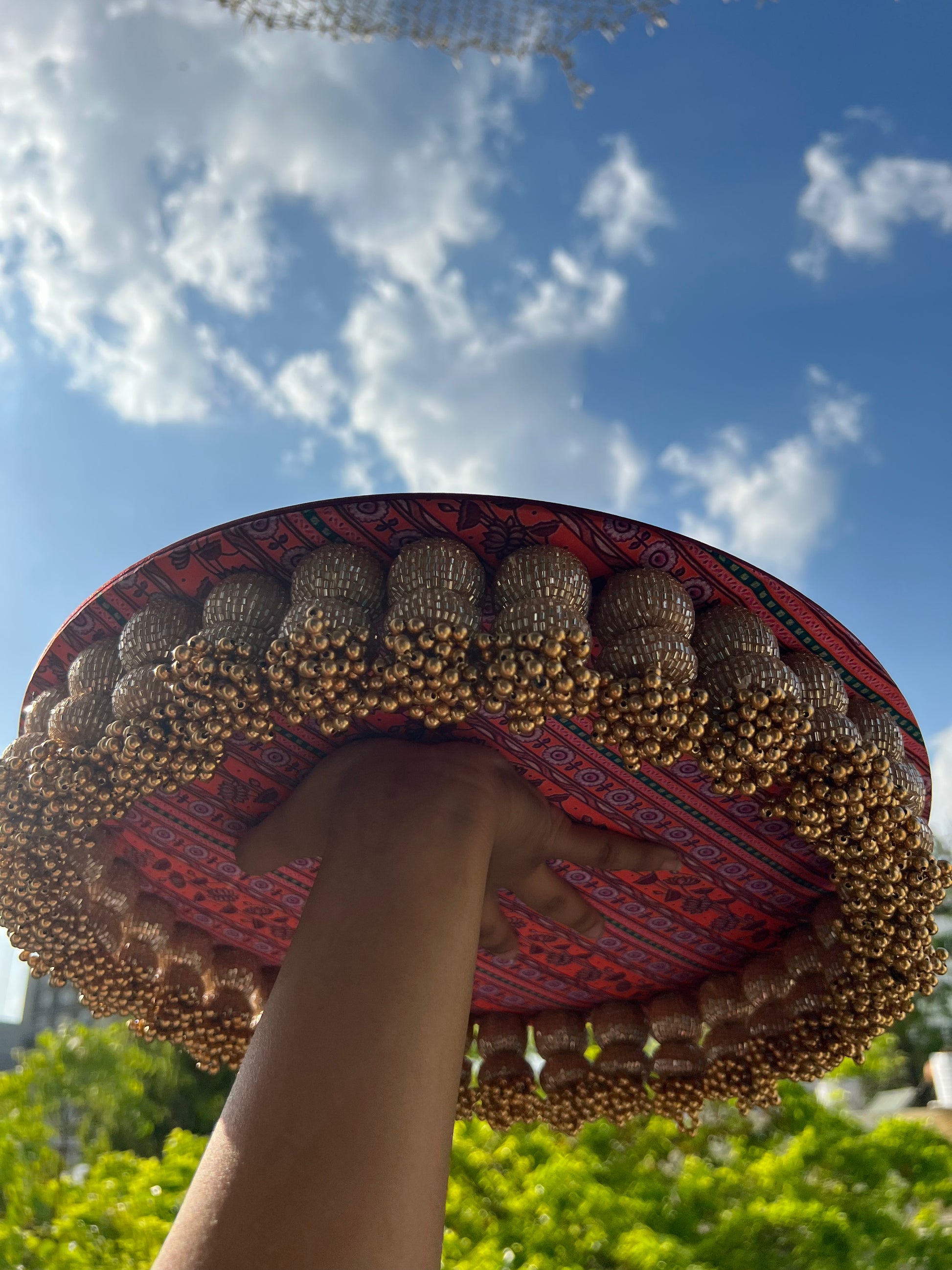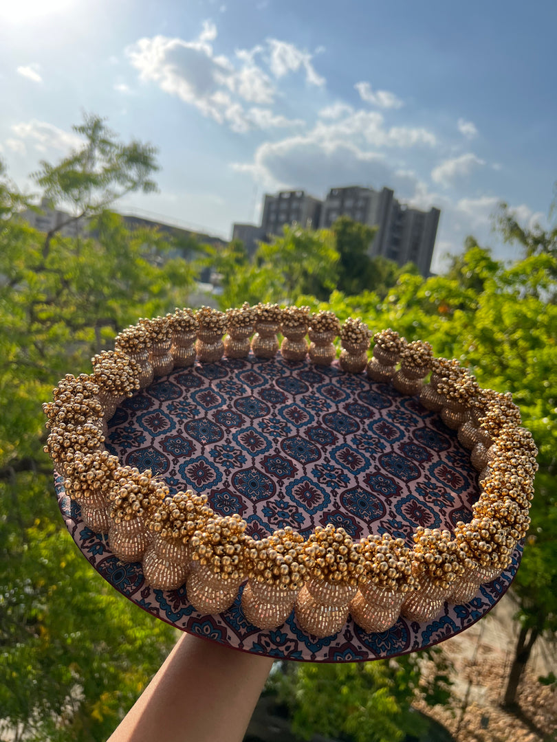 IBHI's design ideology starts with versatility and ends with matching all aesthetics. The tasseled danglers of this platter add the correct amount of bling, it is versatile and matches vibes of all occasions. The Dangler Platter can be used for placing invitation cards, as ring ceremony platters, for serving sweets, placing idols of gods & goddesses and much more!